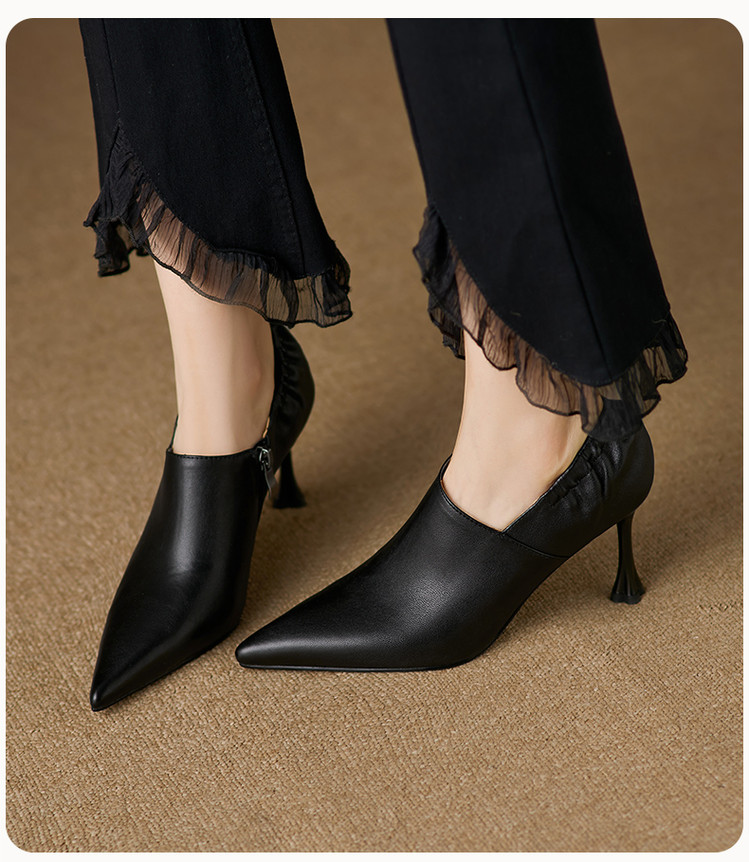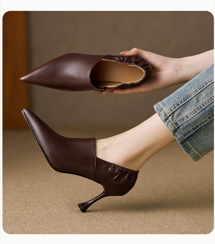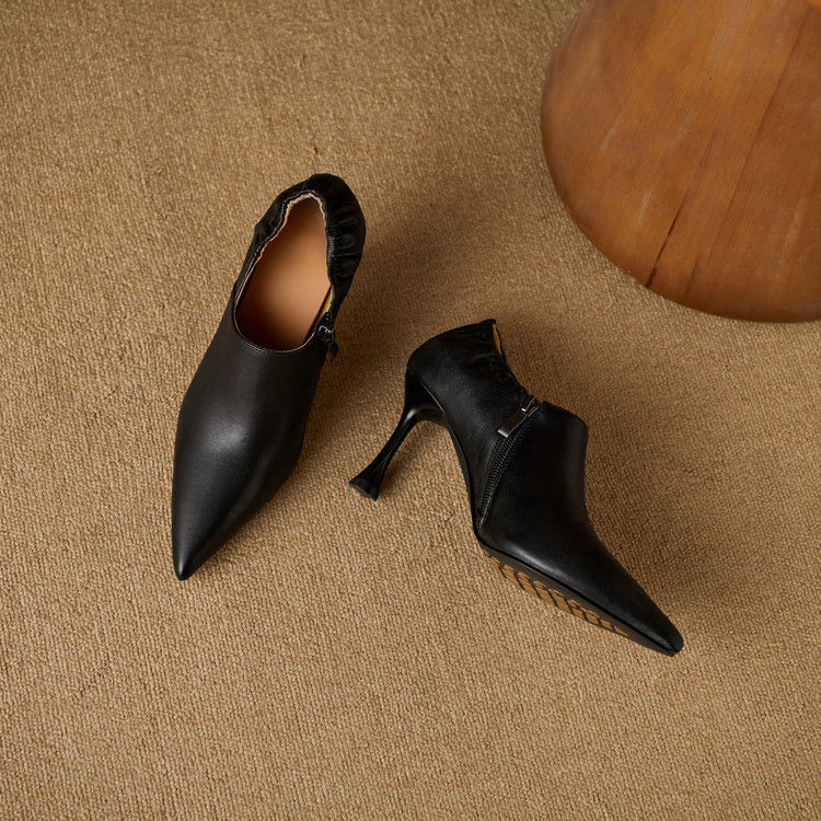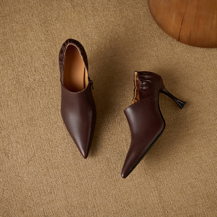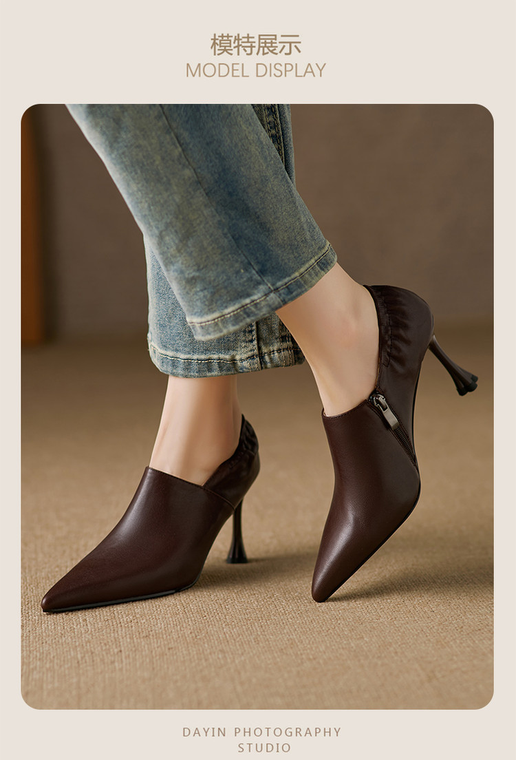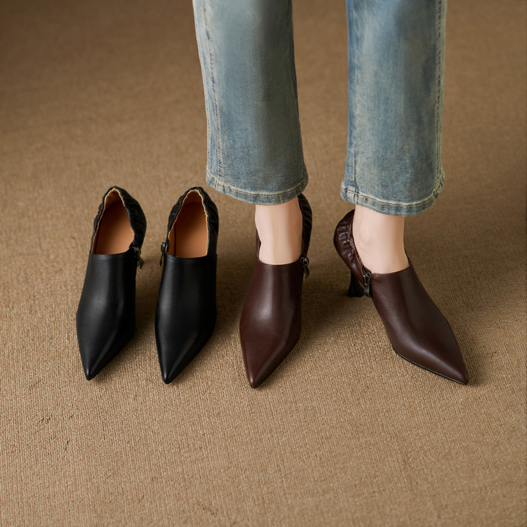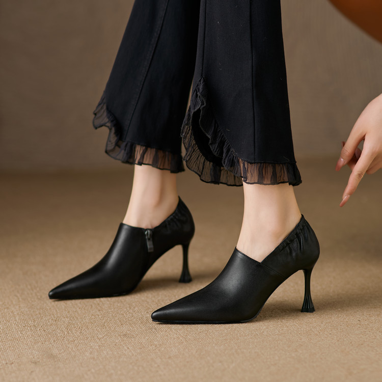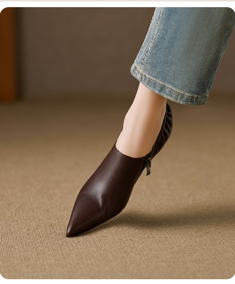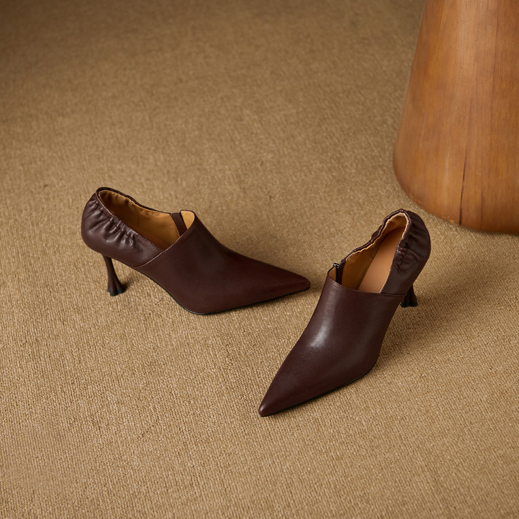 【鞋面材质】羊皮【鞋垫材质】猪皮【内里材质】羊皮【鞋底材质】牛筋底【跟 高】8.0cm【颜 色】黑色 深棕色【尺 码】34 35 36 37 38 39