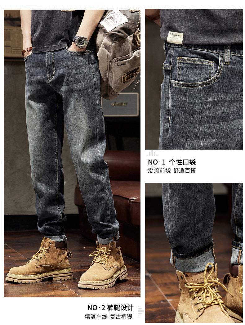 【Q】【新款DQ】大依优型大码直筒牛仔裤长裤男舒适弹力休闲简约百搭加肥加大男装潮款