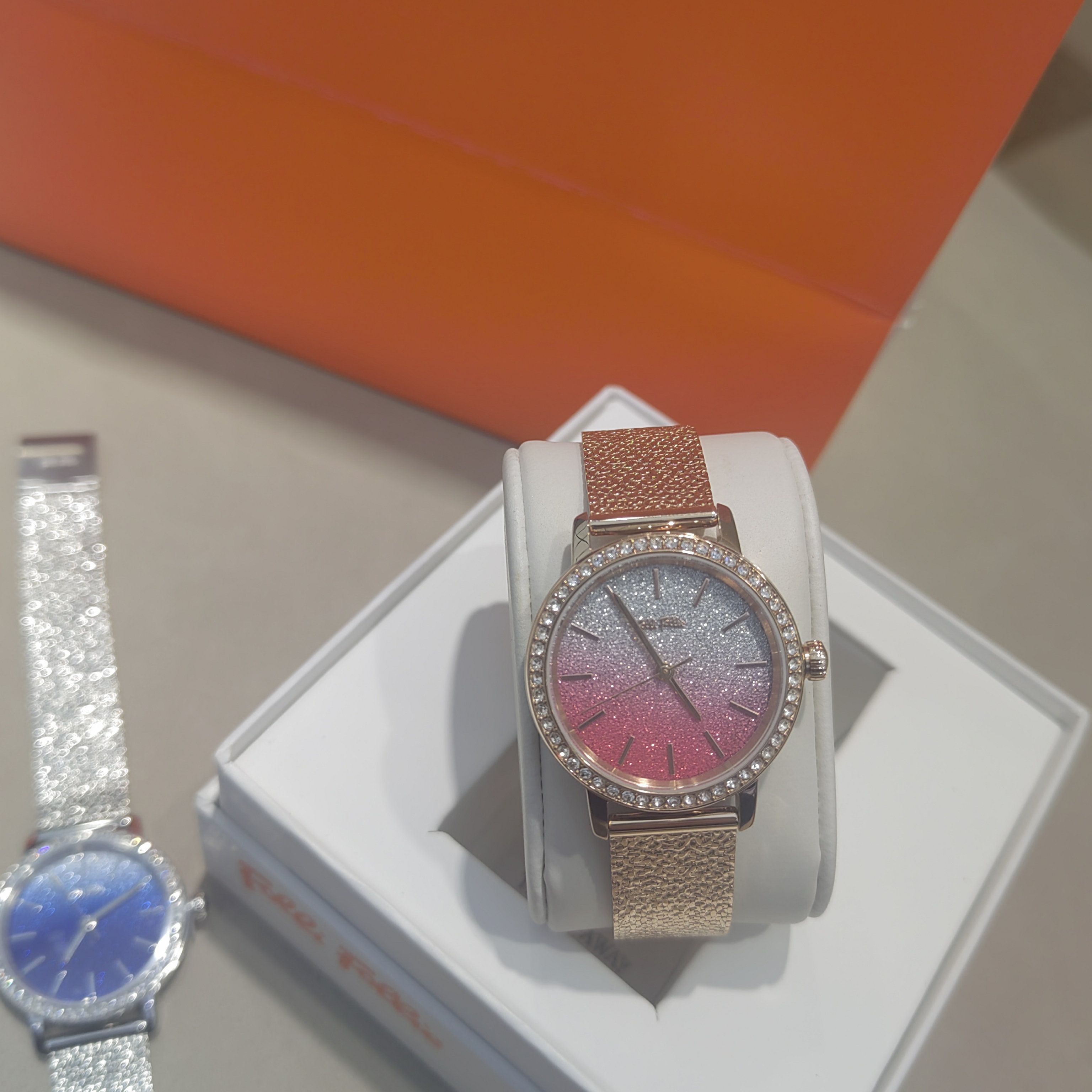 follifollie blingbling表盘镶钻女士米兰表带高级感时尚腕表表盘尺寸26mm