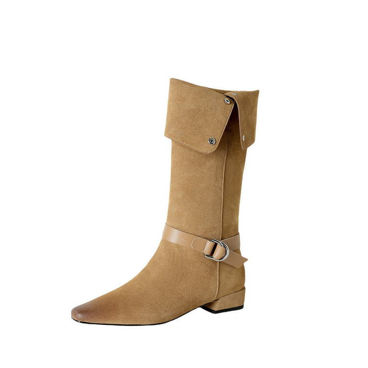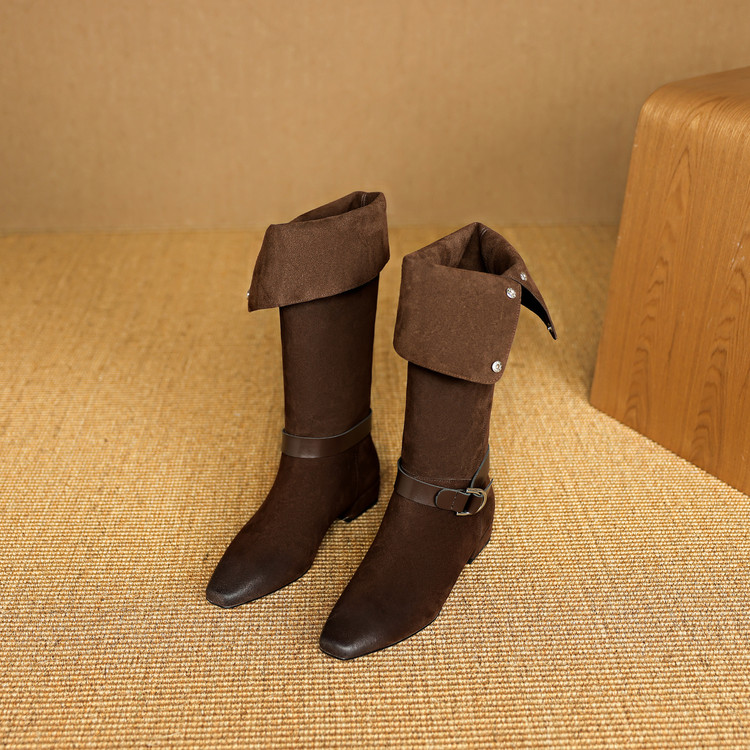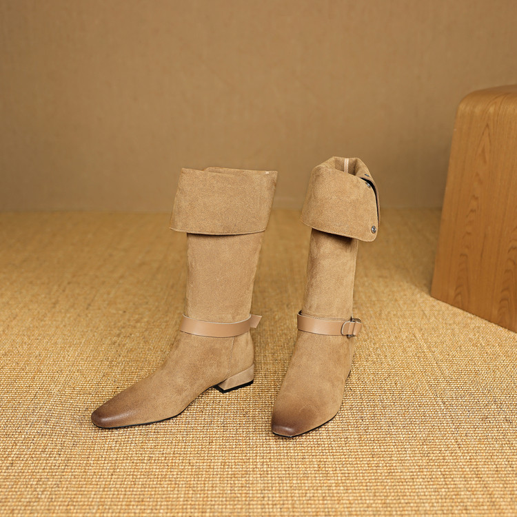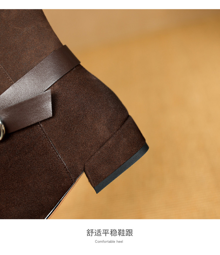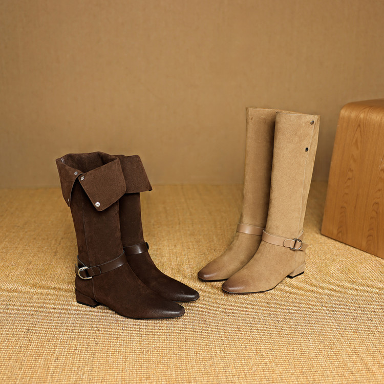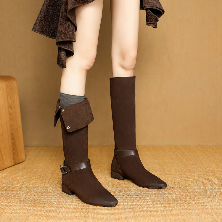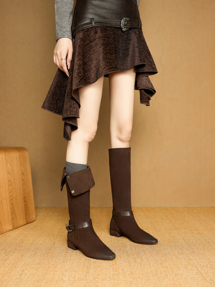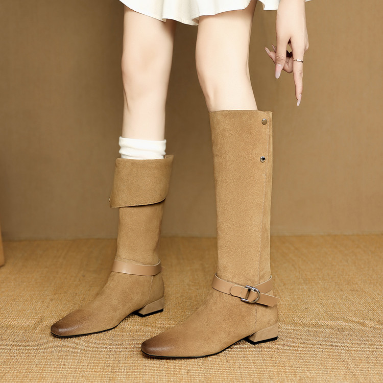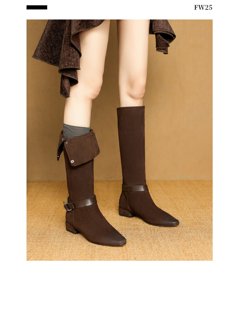 【预售7天】新款美拉德中跟堆堆靴真皮磨砂西部靴秋冬粗跟复古长筒高靴NJMK&K1759