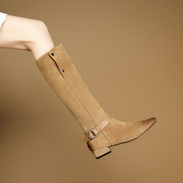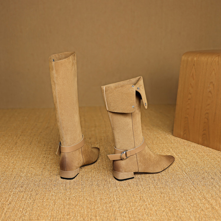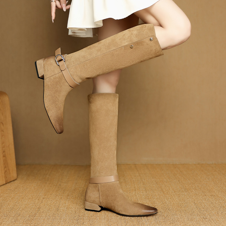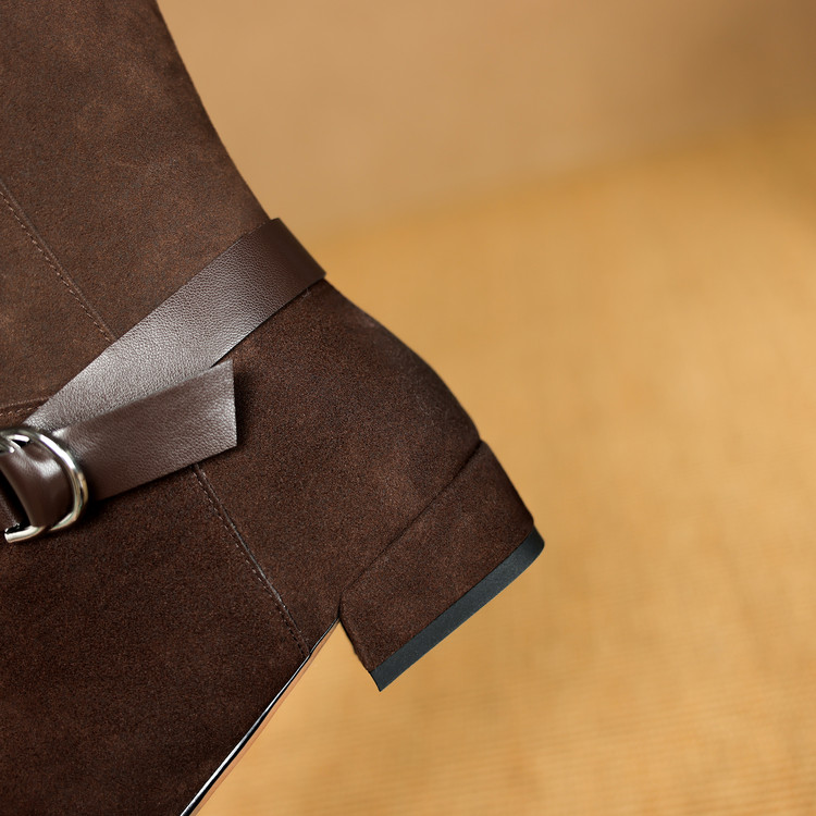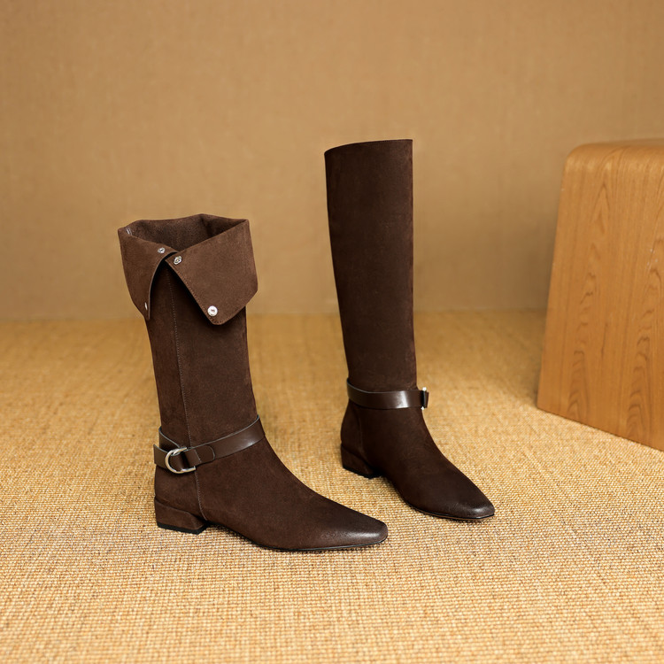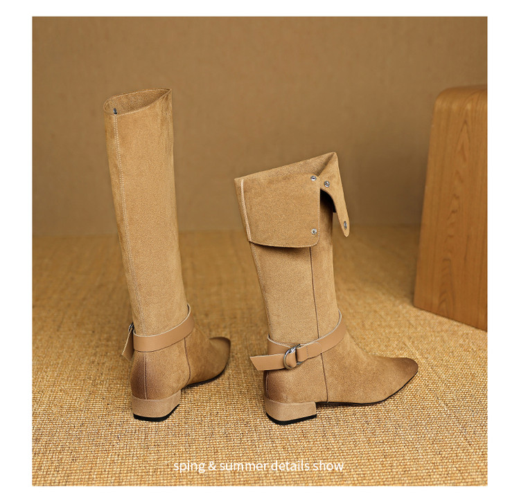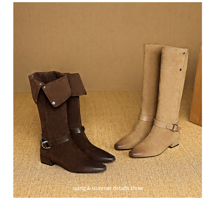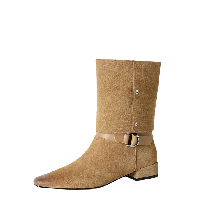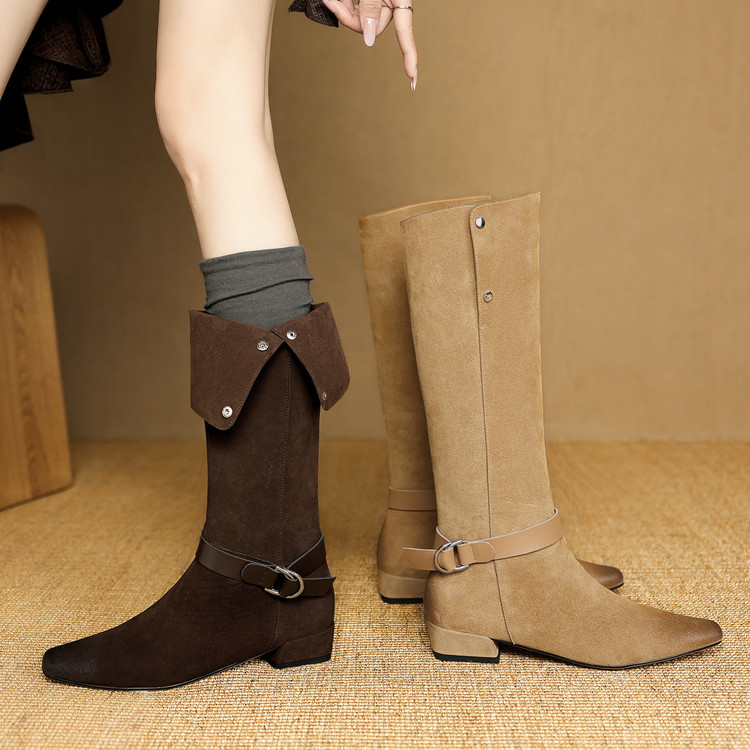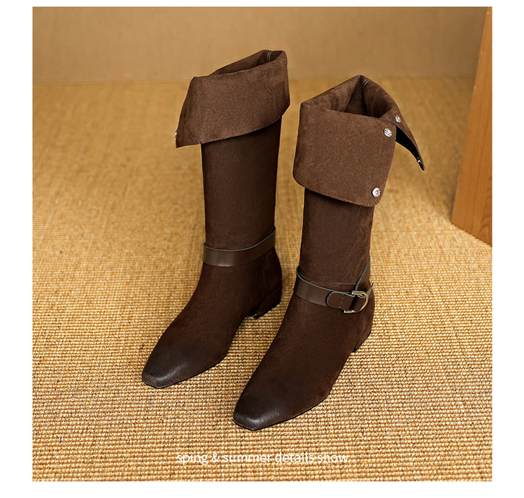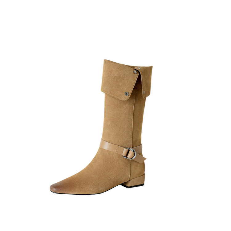 【预售7天】新款美拉德中跟堆堆靴真皮磨砂西部靴秋冬粗跟复古长筒高靴NJMK&K1759