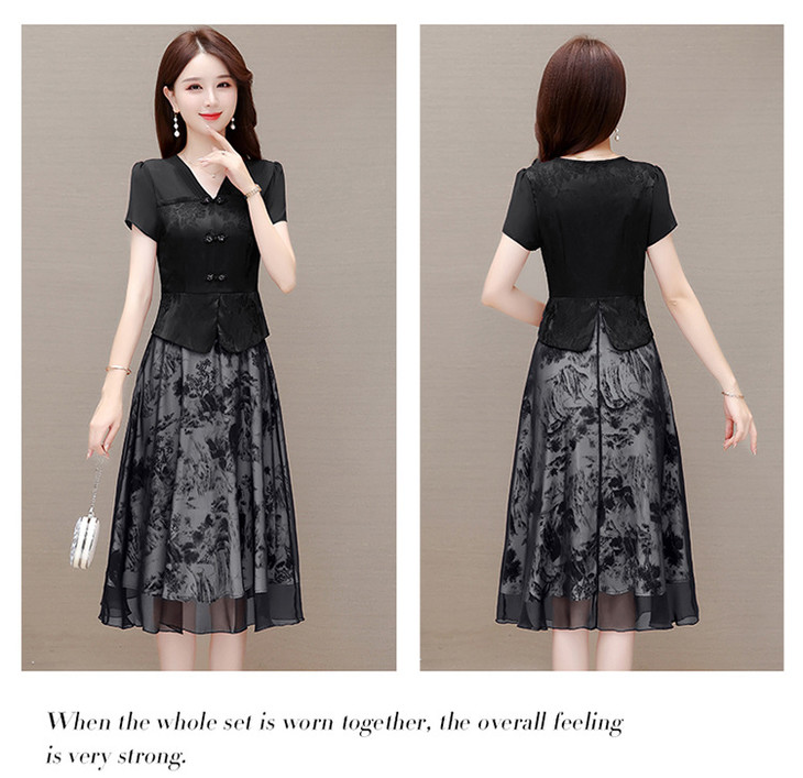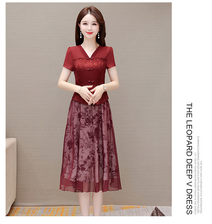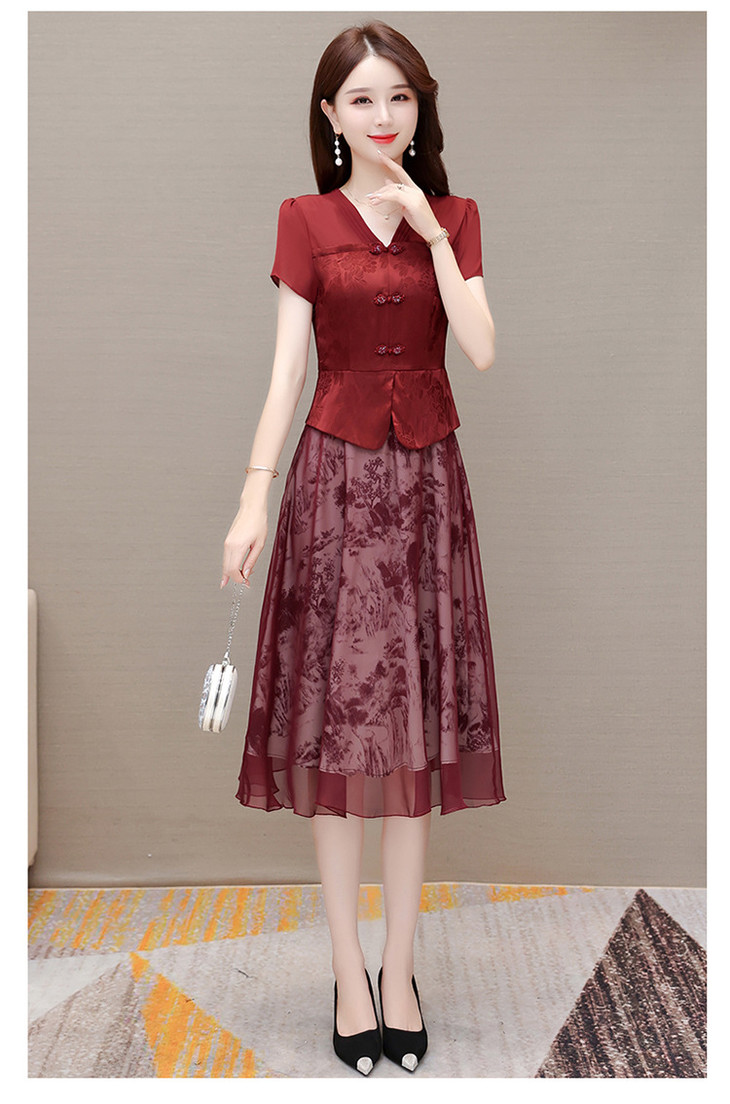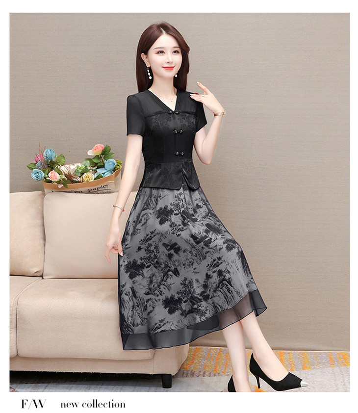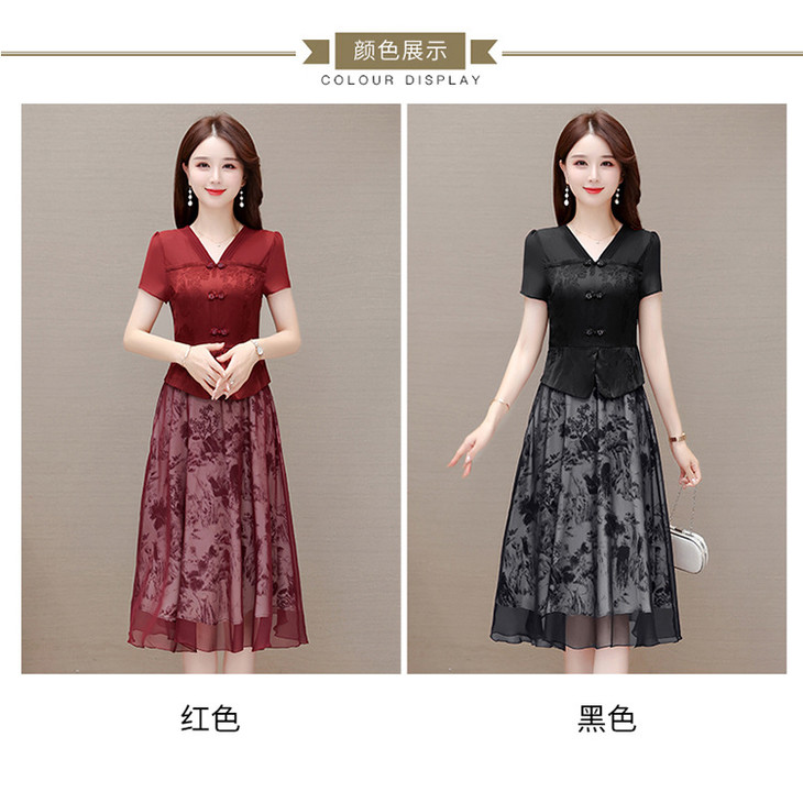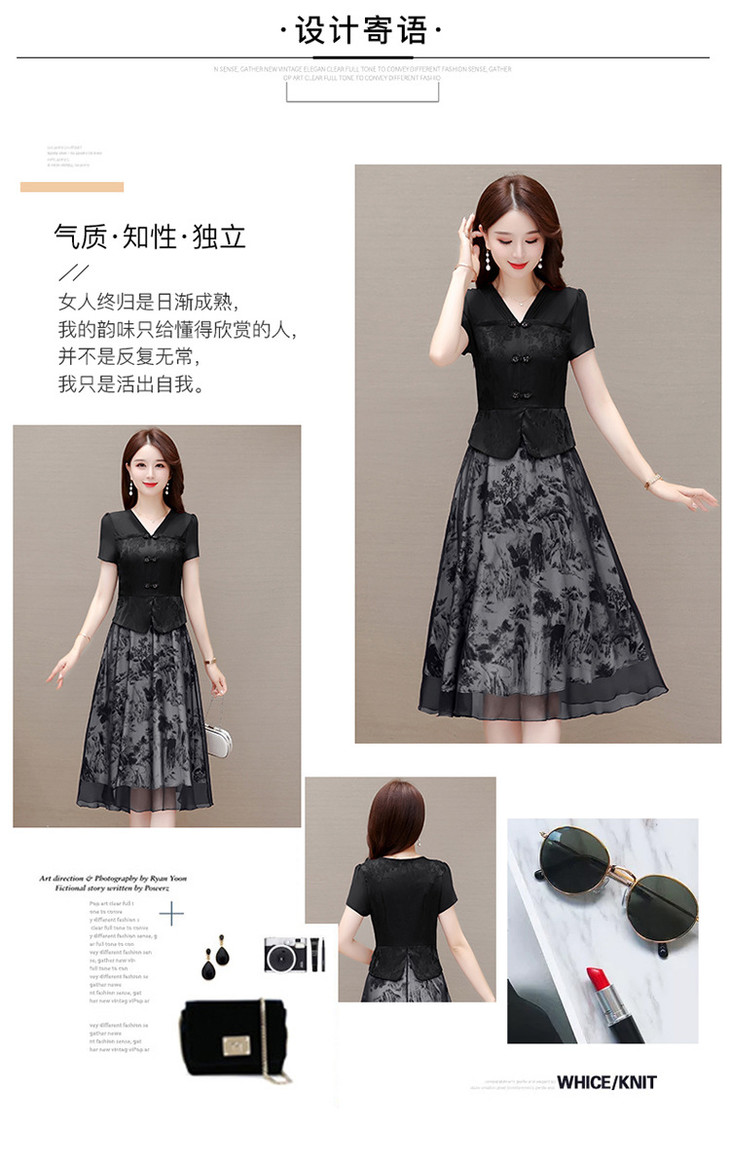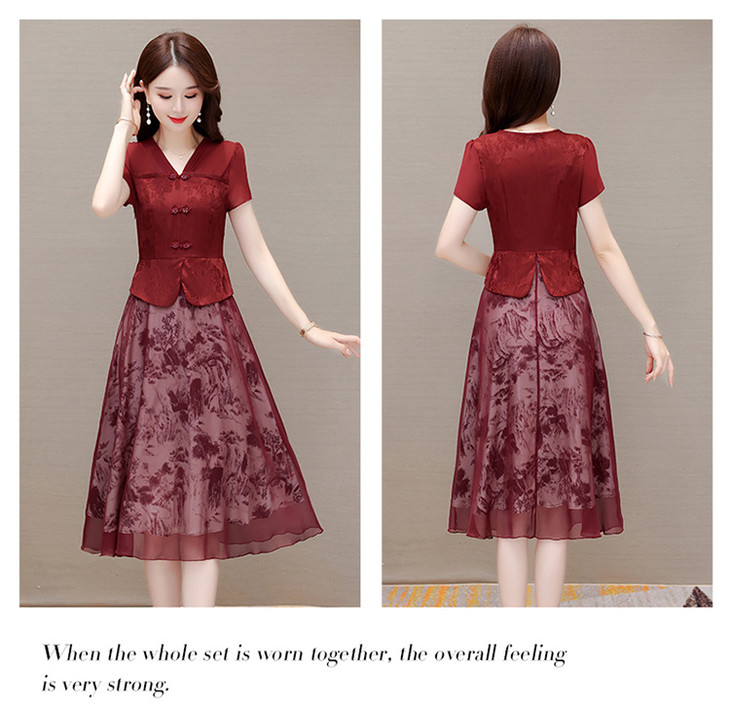 中式复古时尚连衣裙,V领短袖国风优雅假两件裙QYM-CR-YZY23A03-L