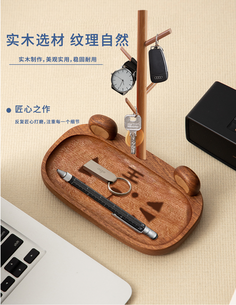创意摆件进门玄关门口钥匙收纳盒办公桌面置物架杂物整理神器实木