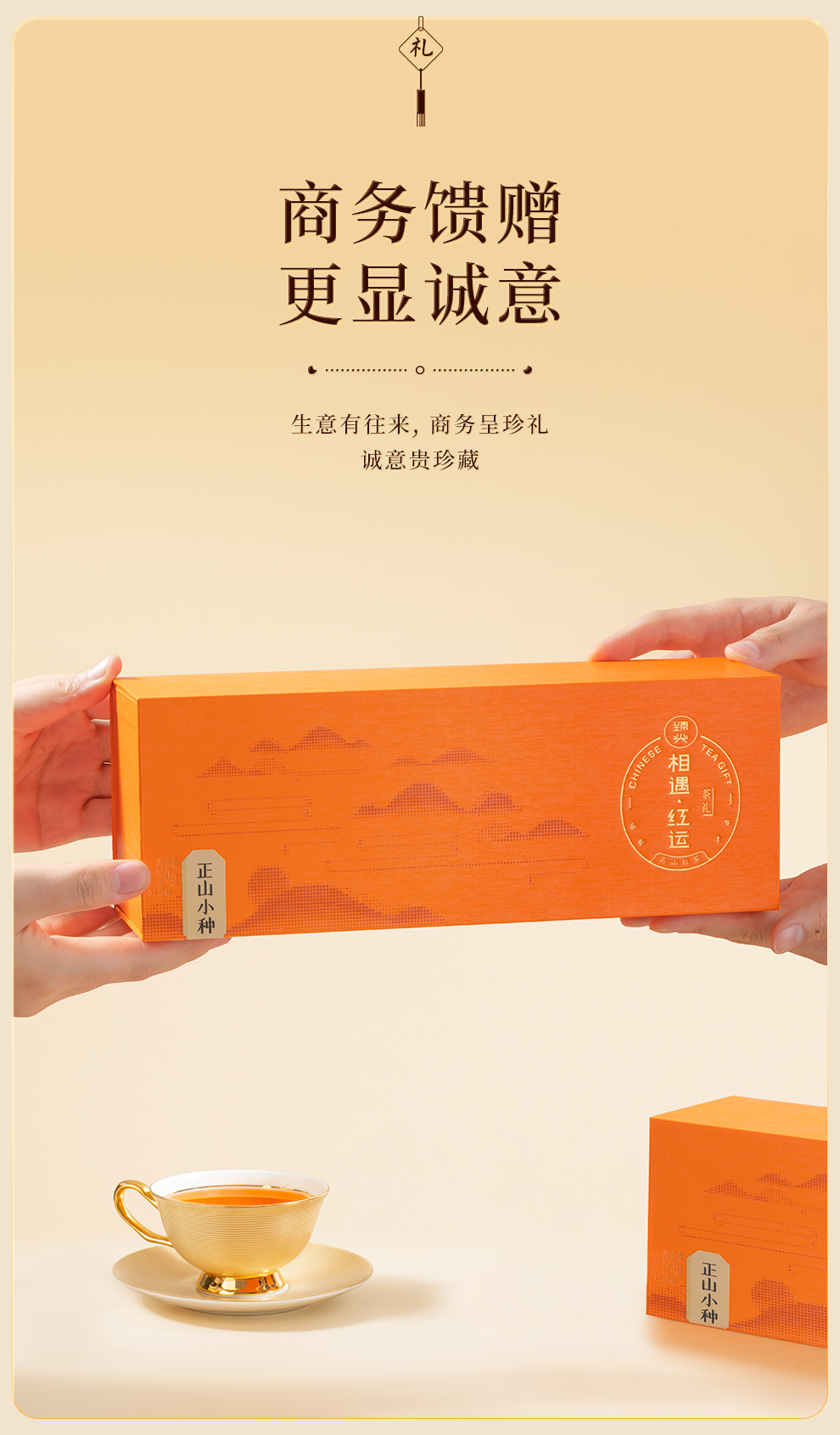 【臻尖-正山小种相遇红运橙色礼盒】茶叶礼盒装特级正山小种红茶送礼长辈年货伴手礼新年礼盒官方正品