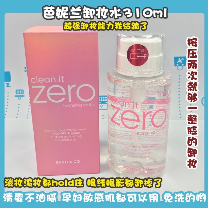 芭妮兰卸妆水310ml👍吹爆这瓶芭妮兰卸妆水🌬,超强卸妆能力我给跪了😱!使用方便👏,不用倾斜倒转➰,按压两次就够一整脸的卸妆,节省时间🕓简直就是懒人的福音😇~卸的炒鸡干净✨,淡妆浓妆都hold住,眼线眼影都卸掉了👀。清爽不油腻🍃,孕妇敏感肌都可以用,免洗的哟,所以卸完也有满满的安全感✅,但建议还是清洗下啦💦~性价比之王,炒鸡便宜好用,平价大碗不心疼,囤❗❗