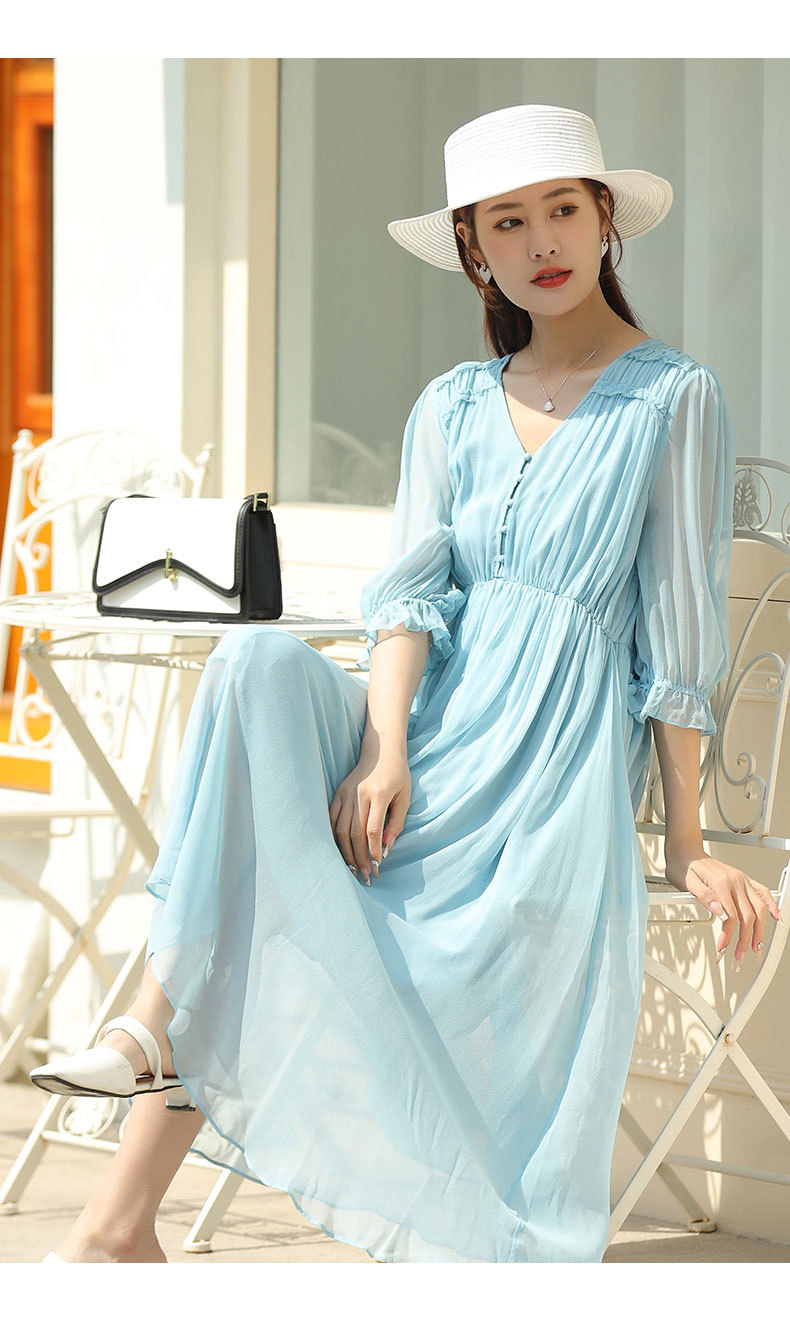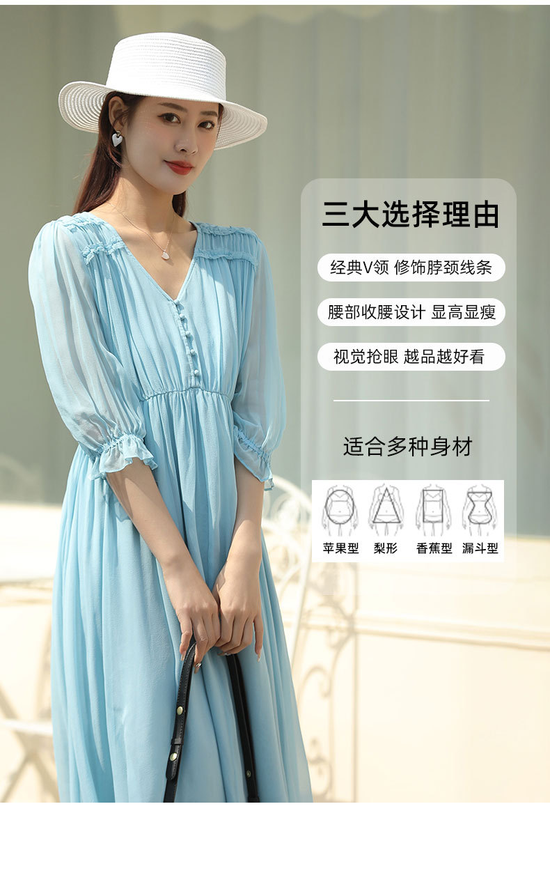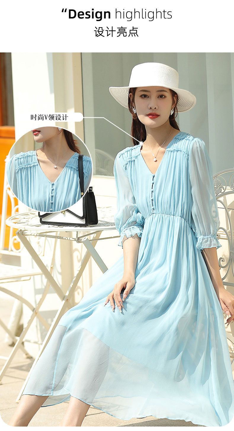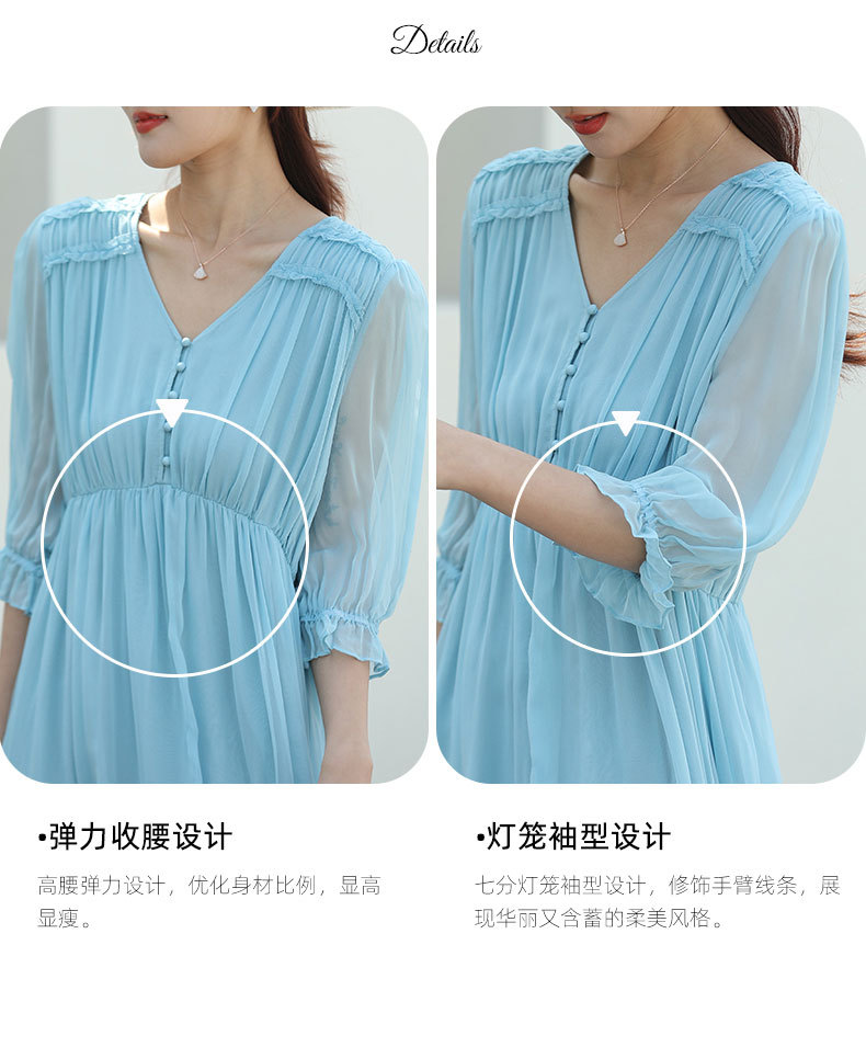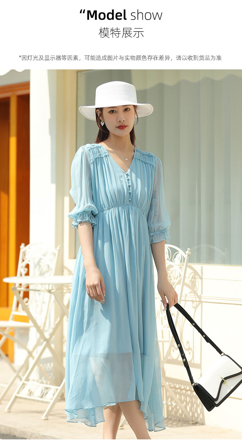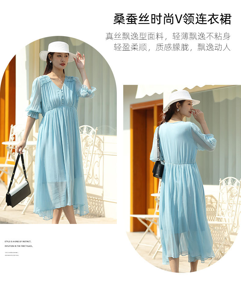 「高货oyg」全新升级【铂金会员487/天猫659/差价172】(03913)洛诗琳法式茶歇桑蚕丝长裙2025夏季新款V领真丝连衣裙女