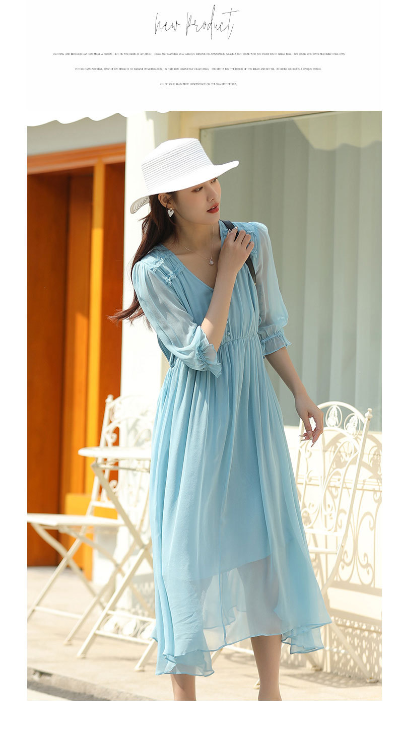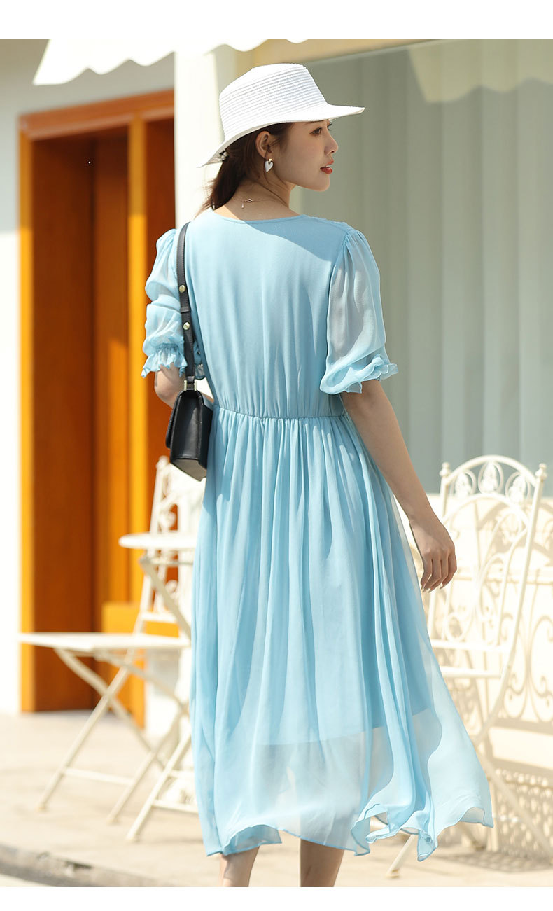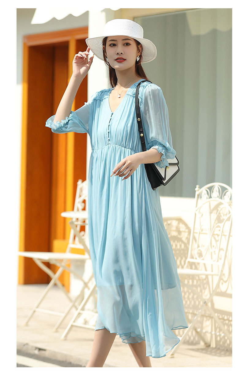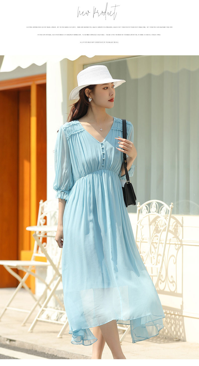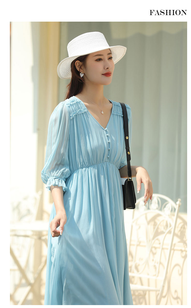 「高货oyg」全新升级【铂金会员487/天猫659/差价172】(03913)洛诗琳法式茶歇桑蚕丝长裙2025夏季新款V领真丝连衣裙女