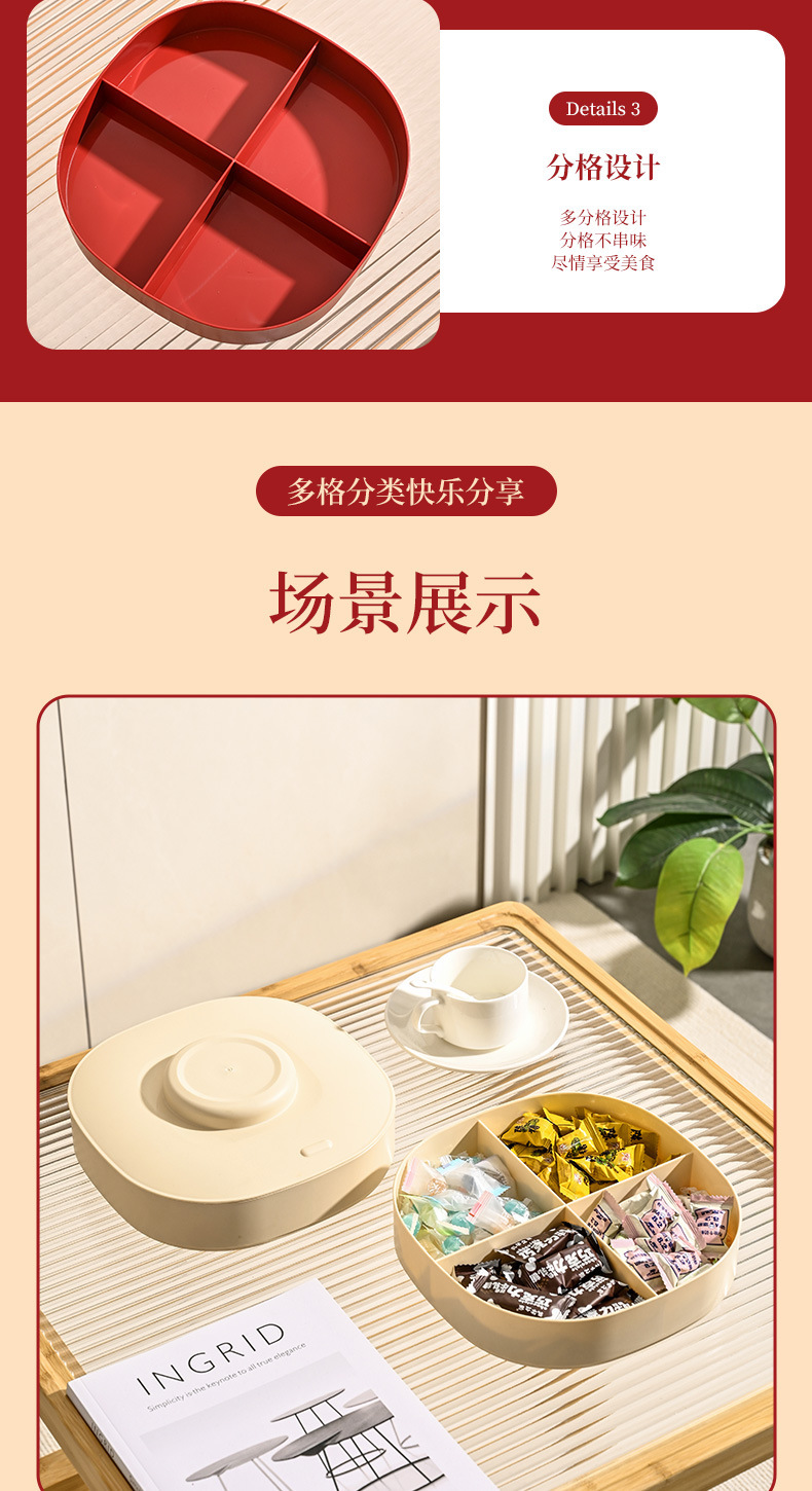 【喜庆佳品 『褔」,分格糖果盒】零食干果盘客厅 家用2025过年新款水果收纳盒 茶几糖果盒 果篮瓜子盒-QQ