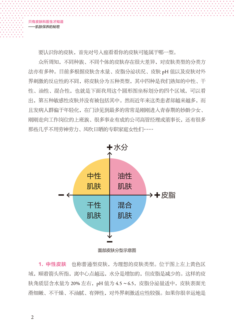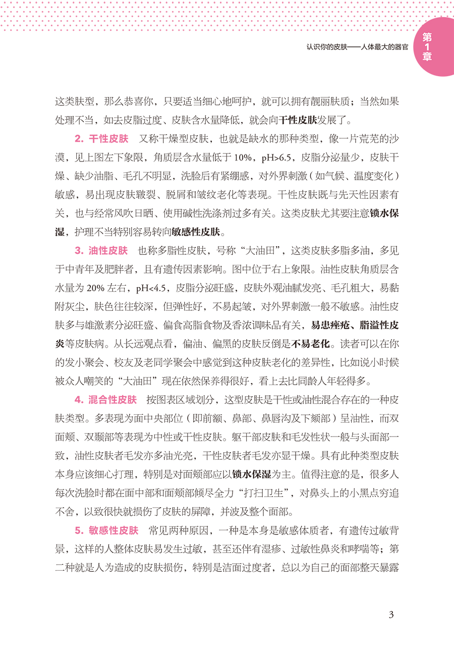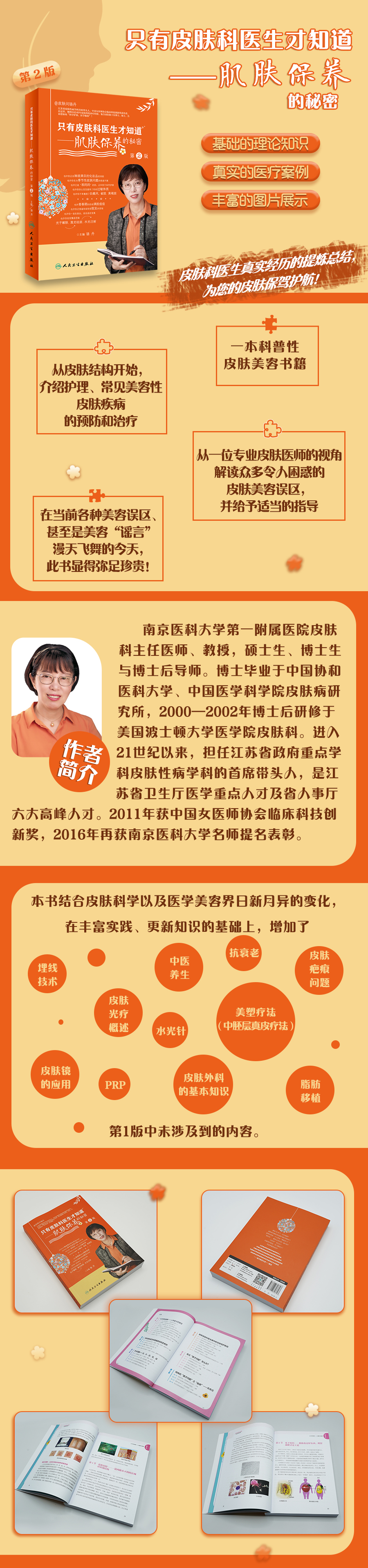 也许你正在琳琅满目的洗面奶、面膜等化妆品前徘徊;也许你在为春季的花粉过敏、夏季的美白防晒、秋冬季的皮肤干燥瘙痒而愁眉不展;也许已是“准妈妈”的你在为怎么护肤纠结不已;也许你担心宝宝遗传了你的过敏体质;也许你不幸遭遇到了白癜风、雀斑、黄褐斑的扰人苦恼;也许,正值青春期的你却满脸痘痘,皮肤还越洗越油;也许你正值盛年却饱受脱发的苦恼;也许你一直在美白,却总是在变黑;也许你正在犹豫要不要做光子嫩肤、激光祛斑、水光注射、肉毒素去皱及其他微整……这些,我在本书的相应章节中都做了阐述和分析,希望对您有所帮助。