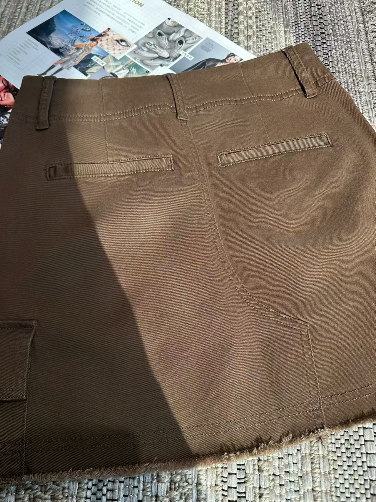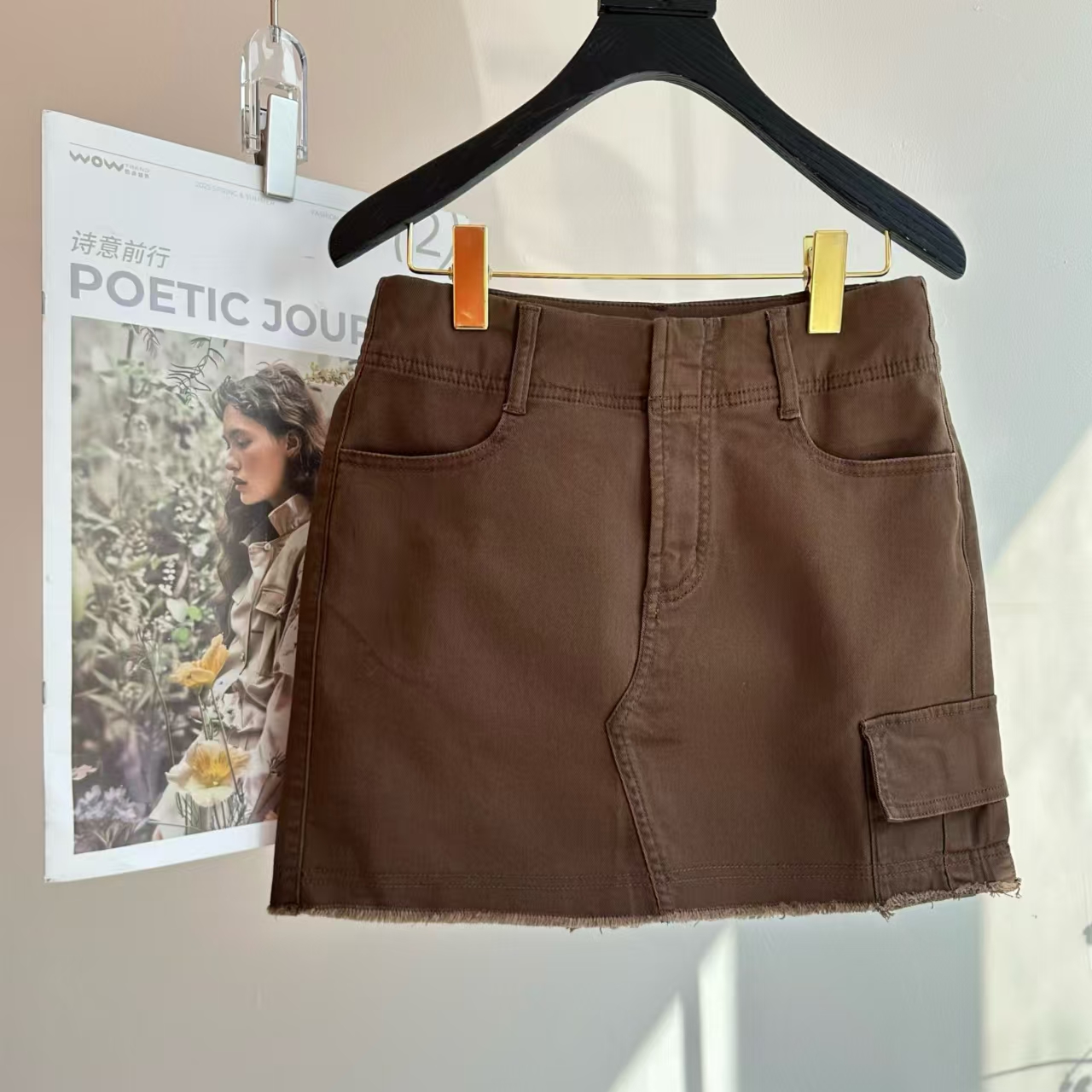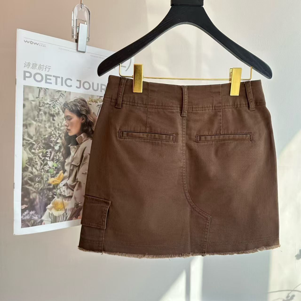 顺丰包邮52434洛诗琳新款复古美式重工洗褪毛边工装短裙865