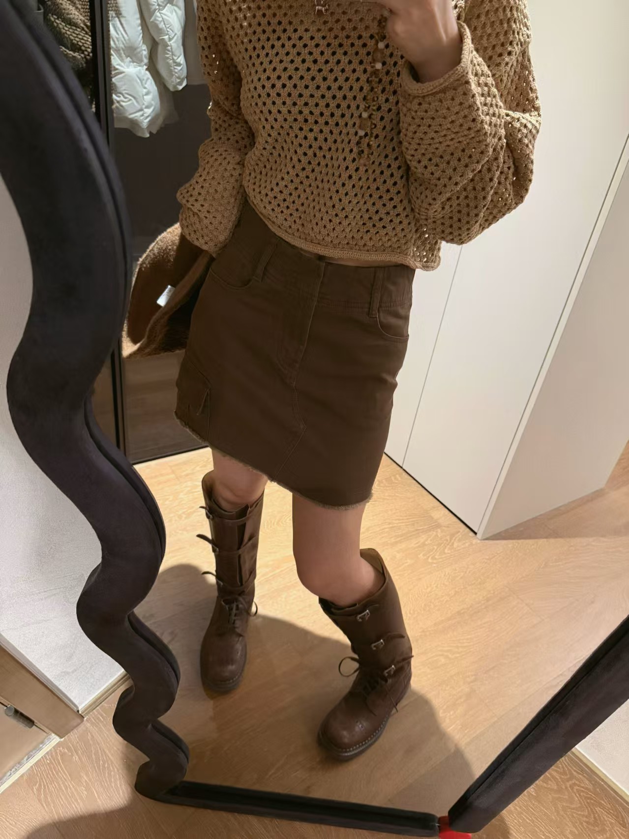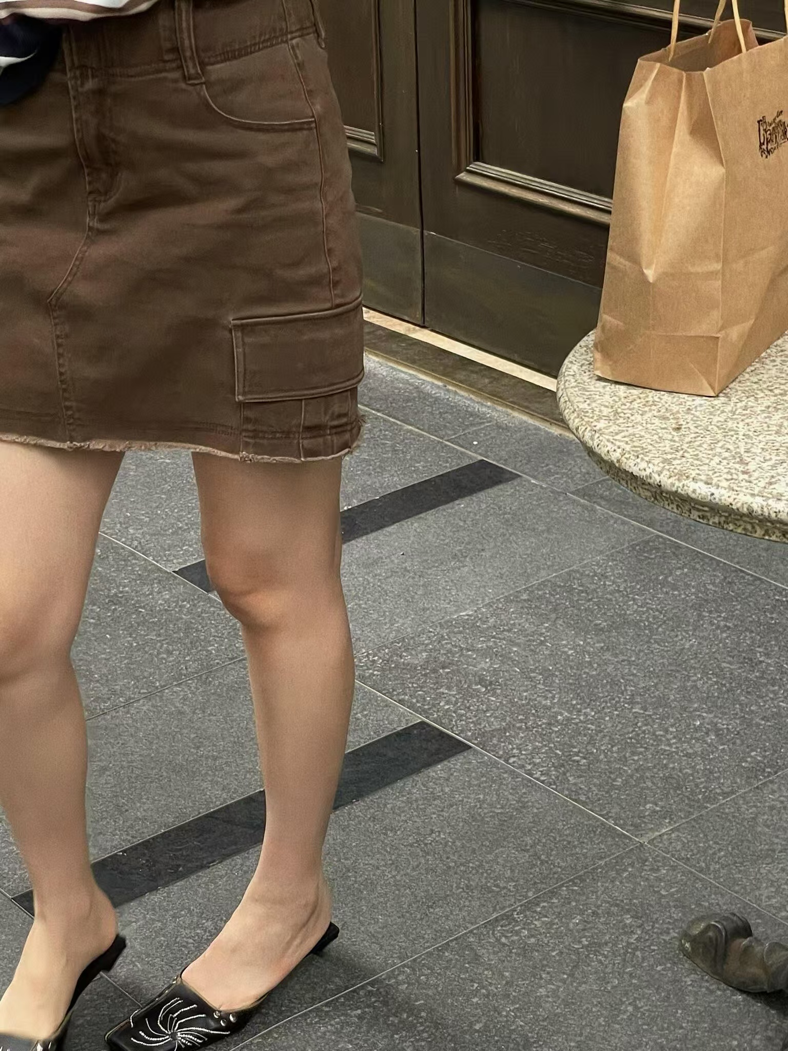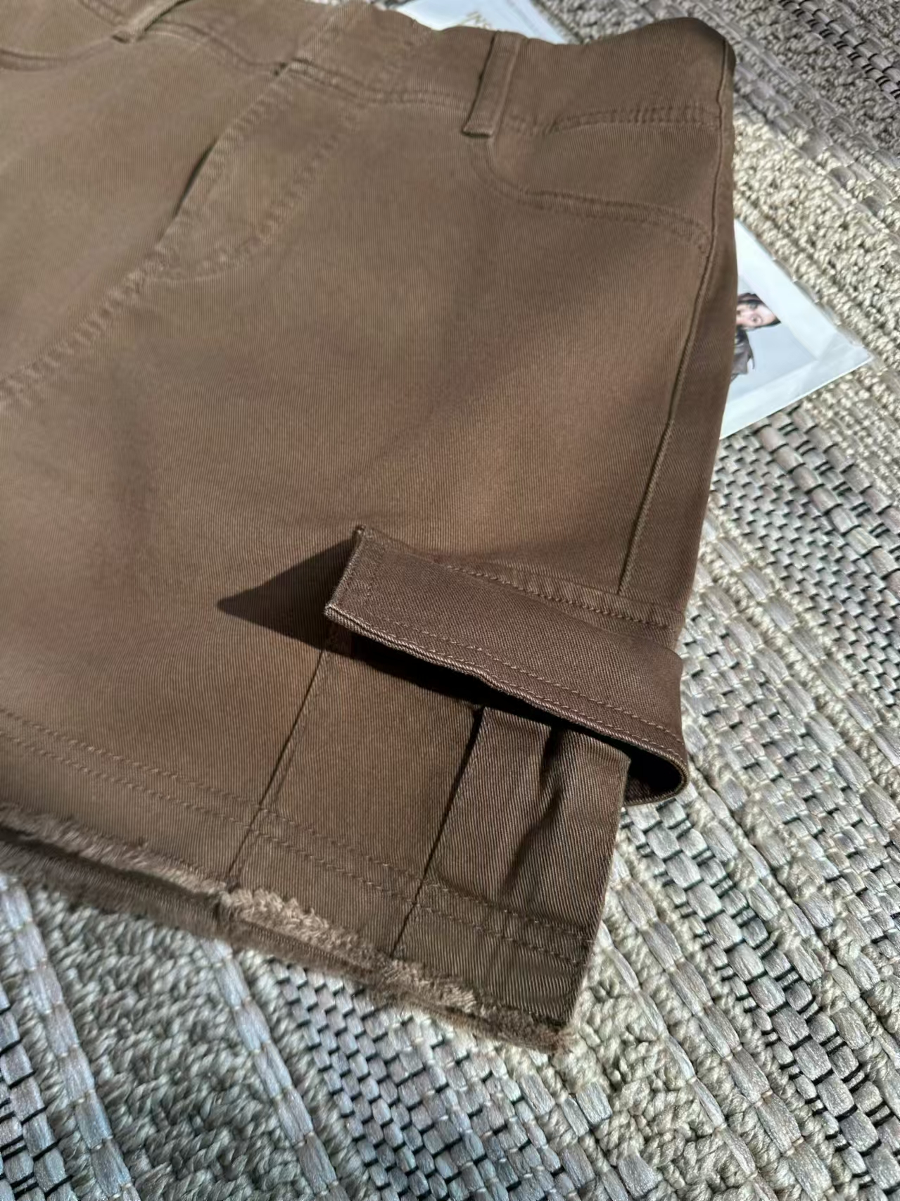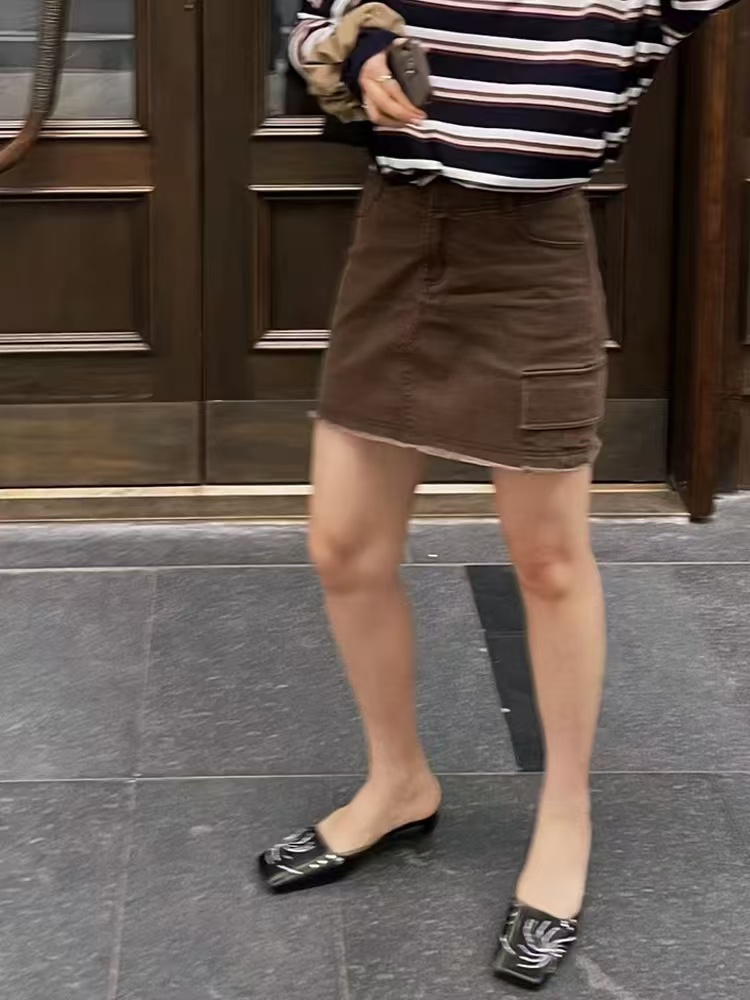 顺丰包邮52434洛诗琳新款复古美式重工洗褪毛边工装短裙865