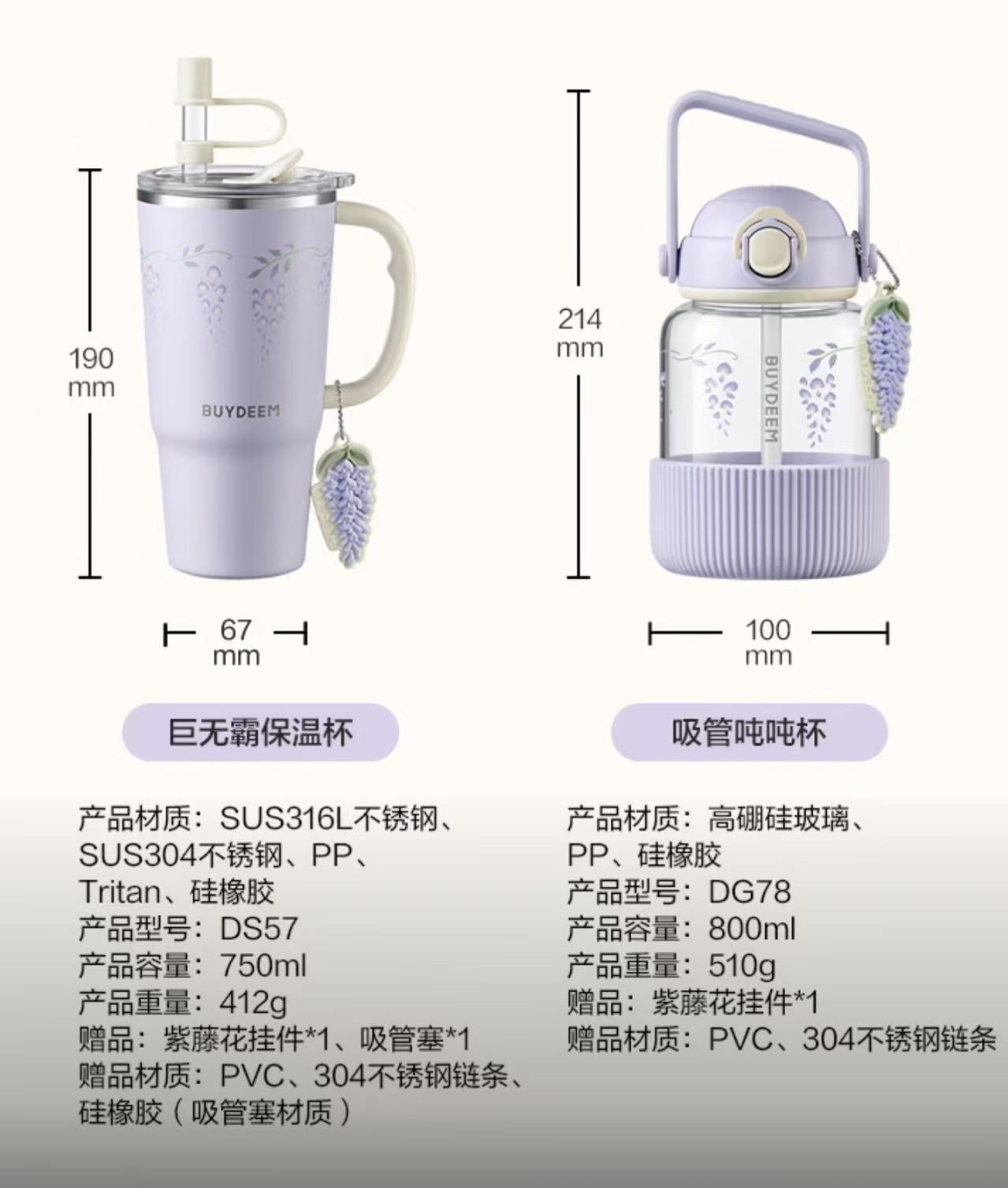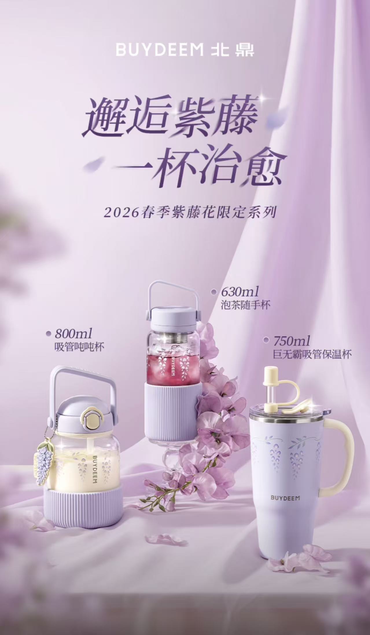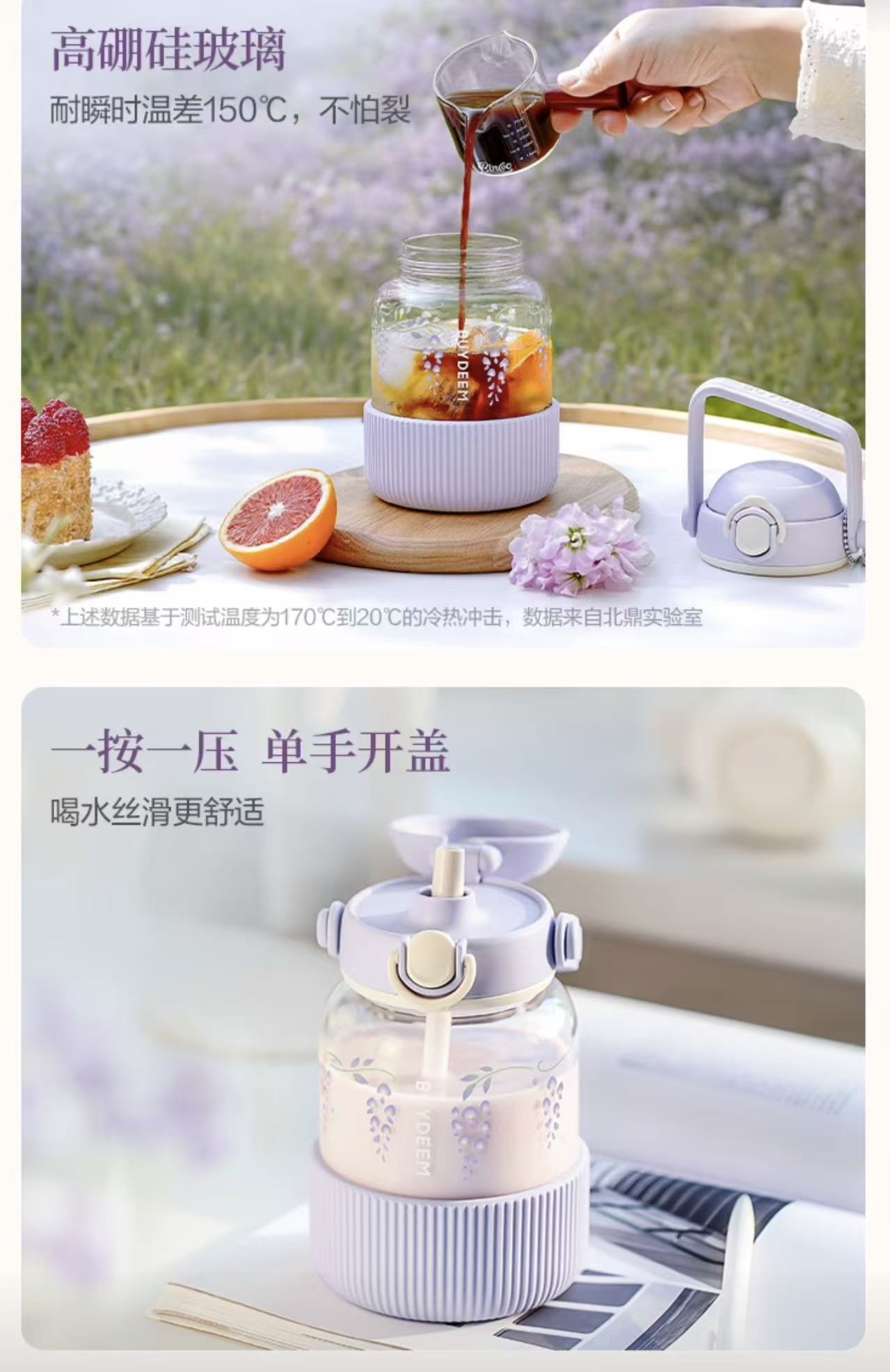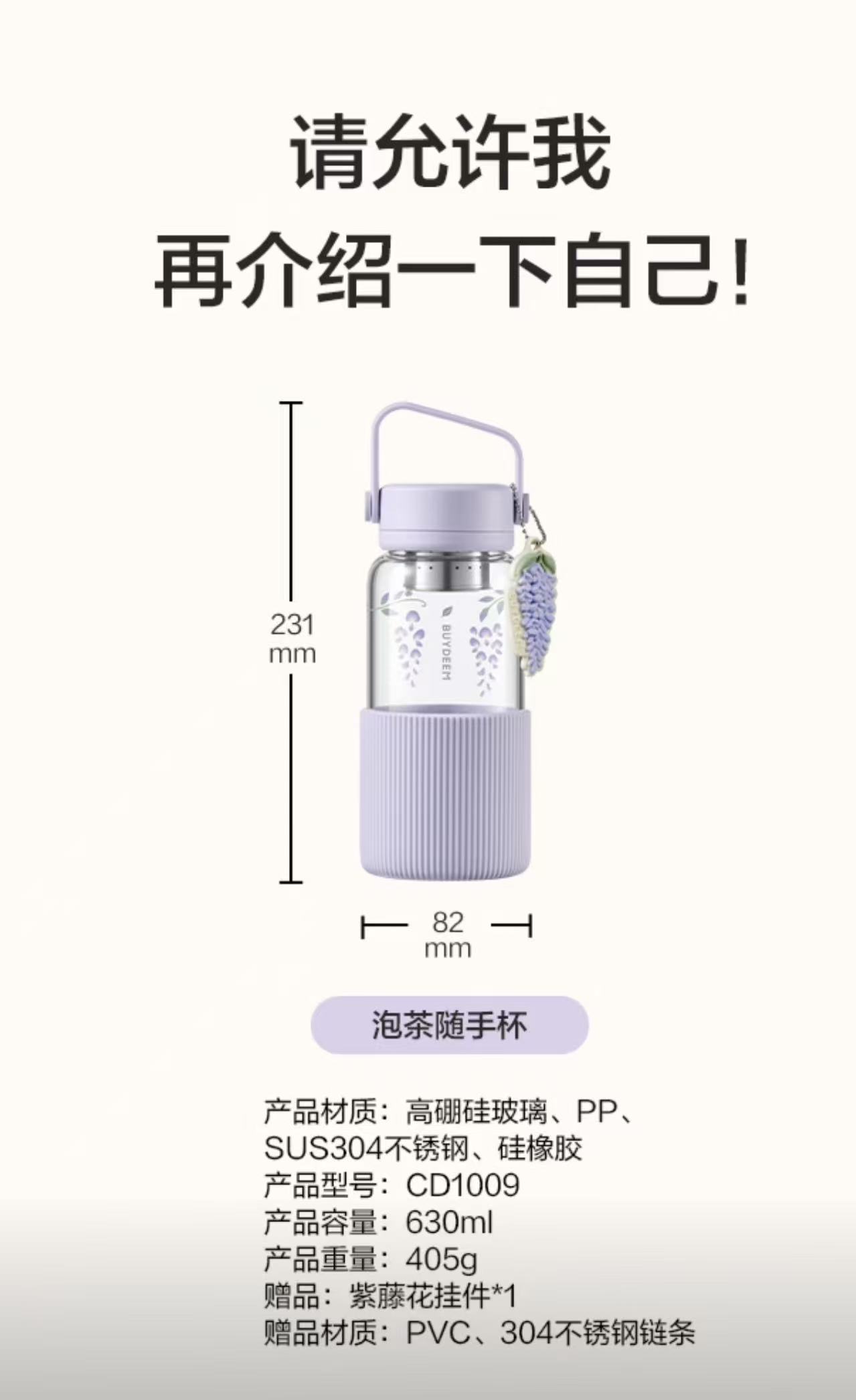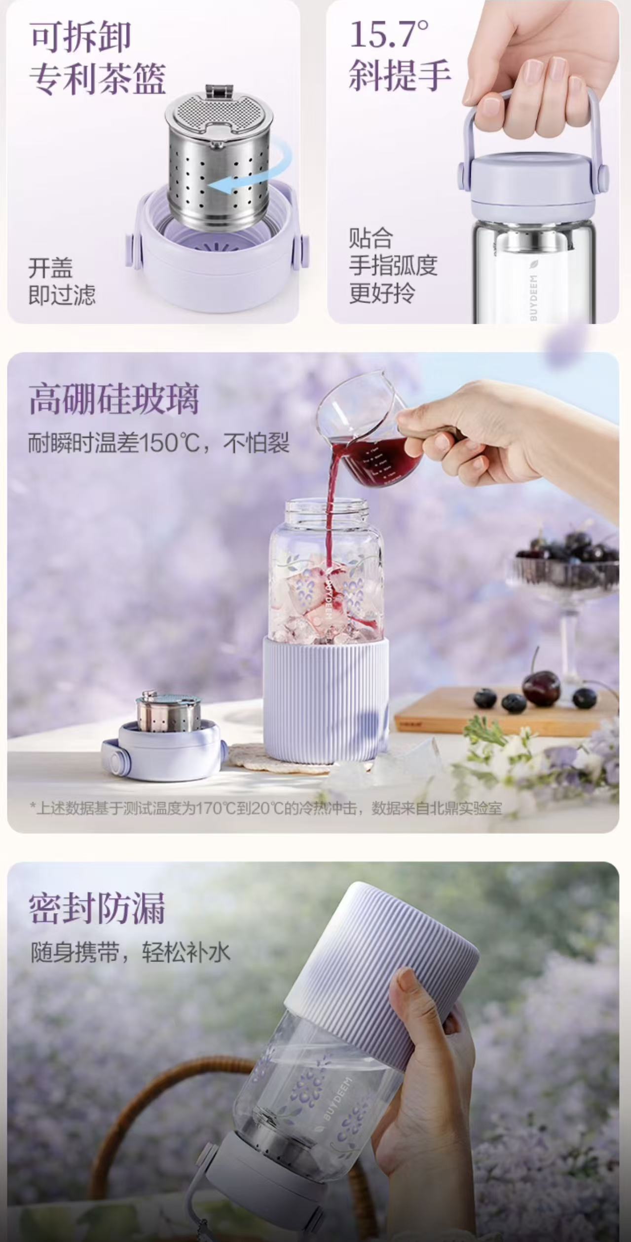 北鼎 玻璃杯壶 紫藤花系列