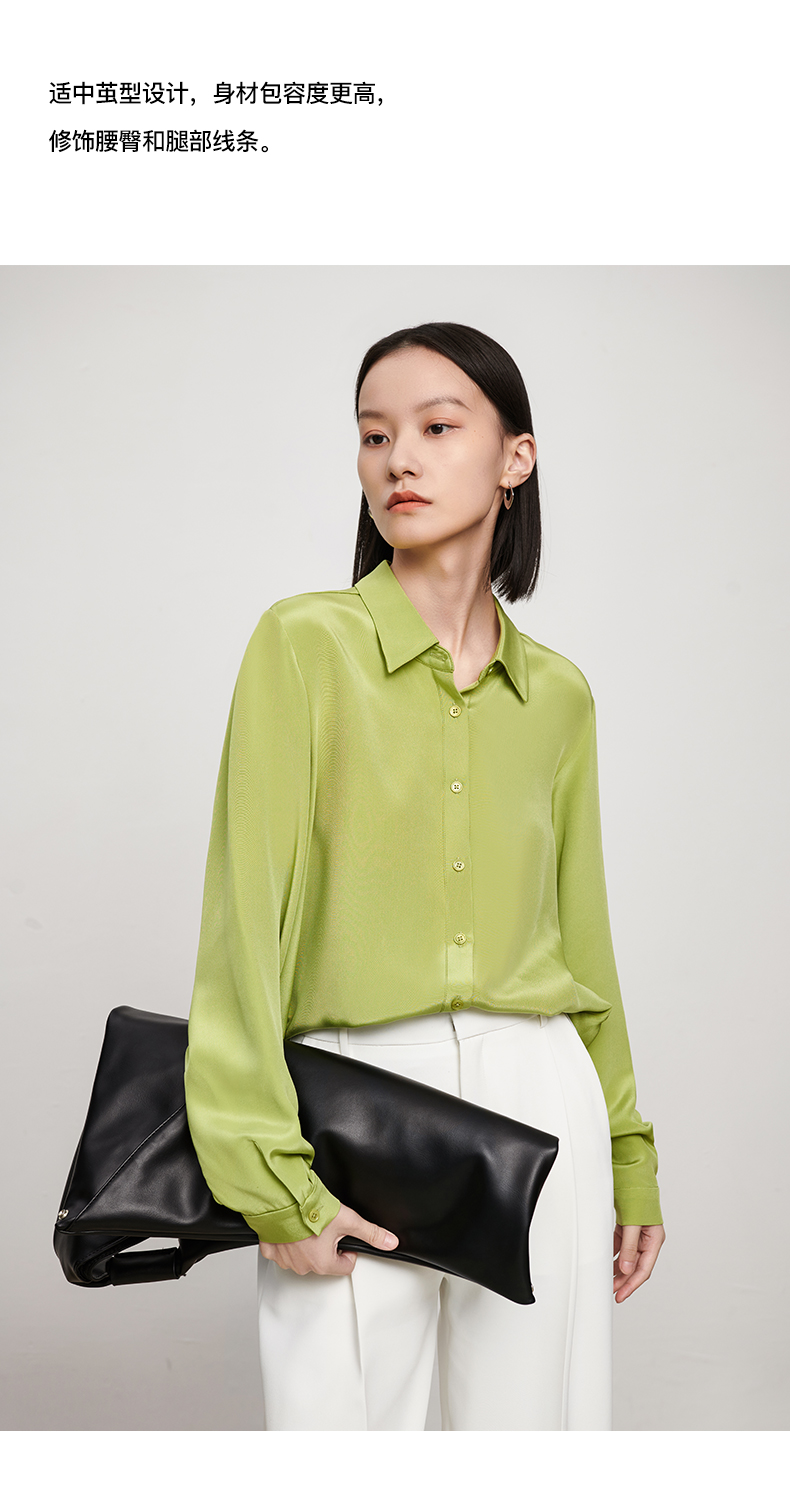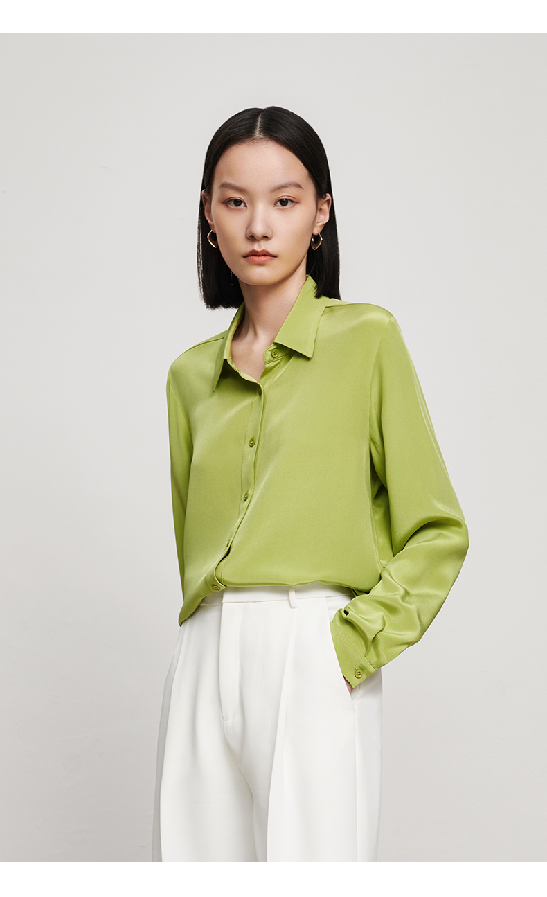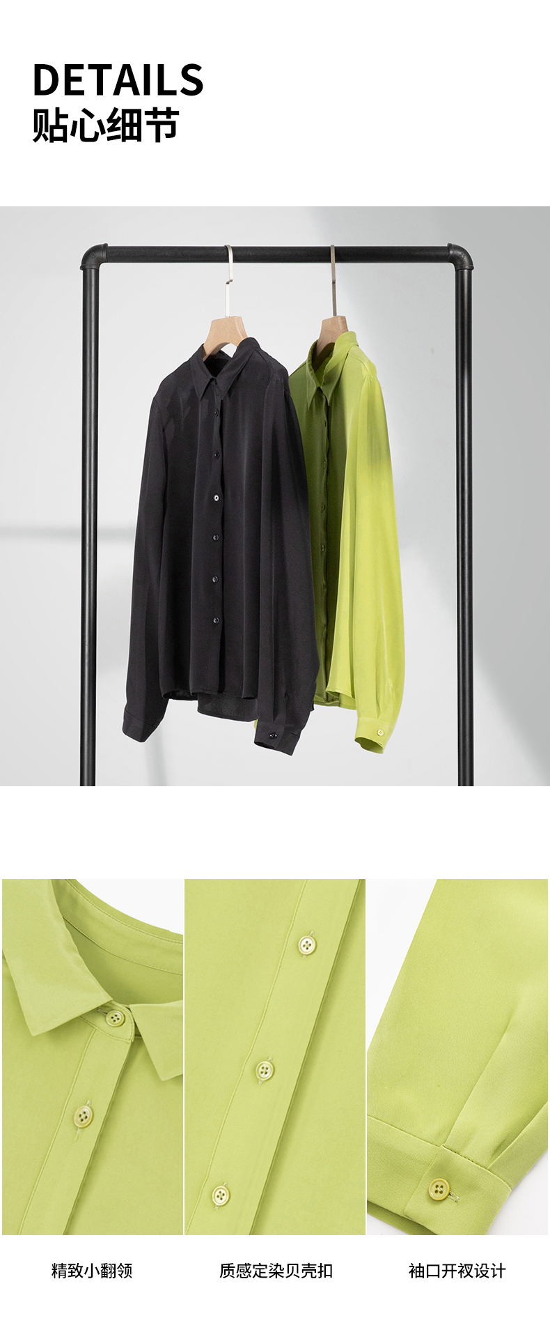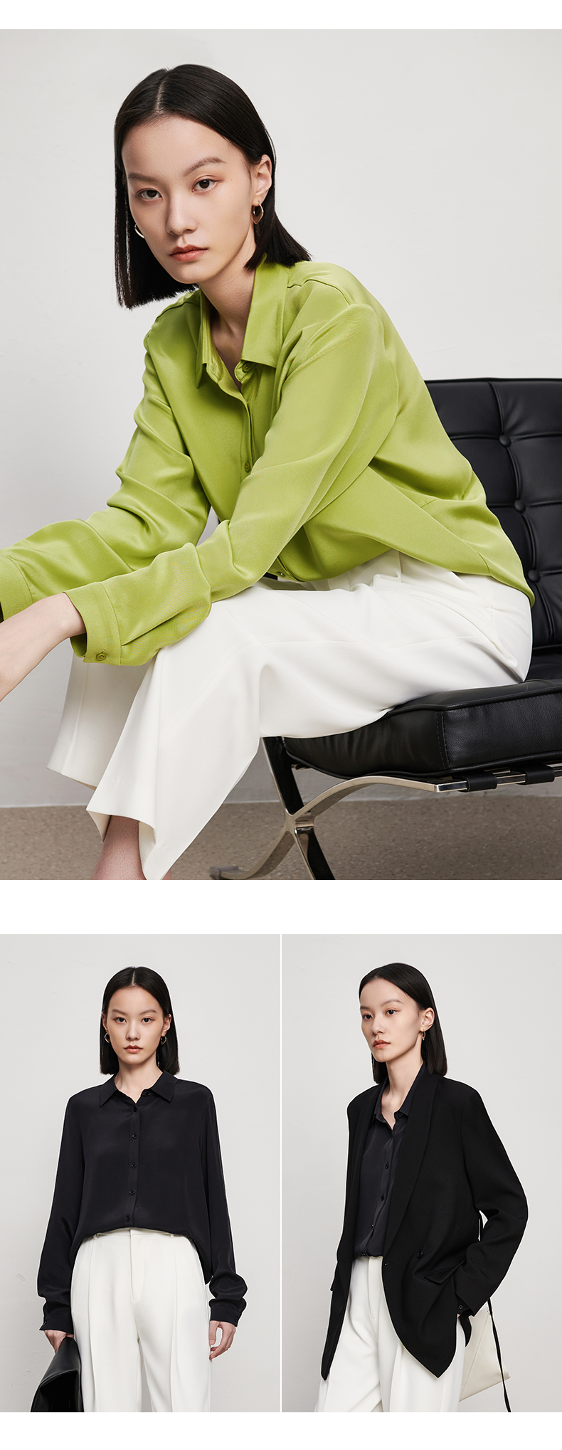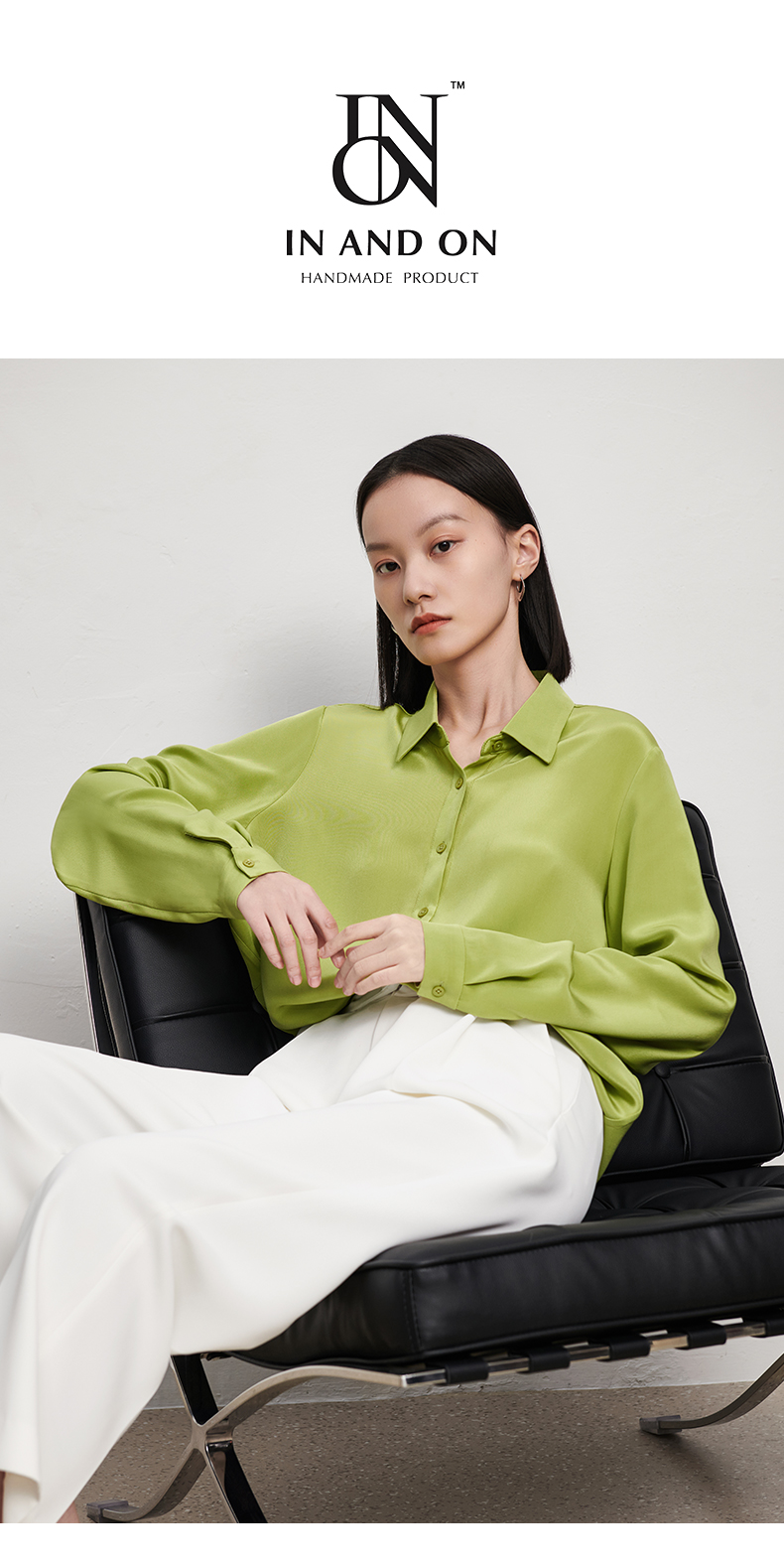 IN AND ON53156【6A级30MM双面重绉桑蚕丝】真丝衬衫女翻领纯色时尚气质通勤上衣