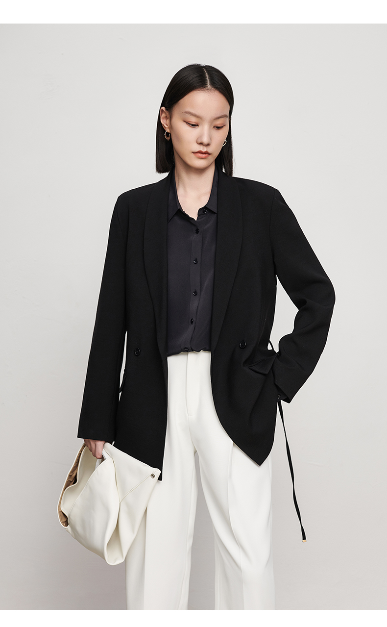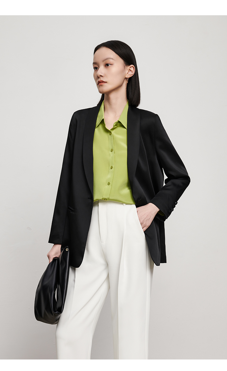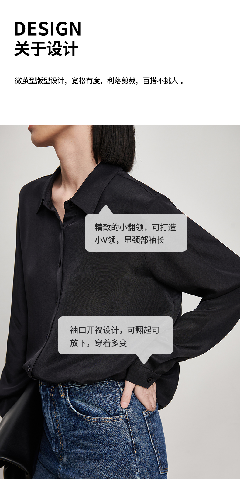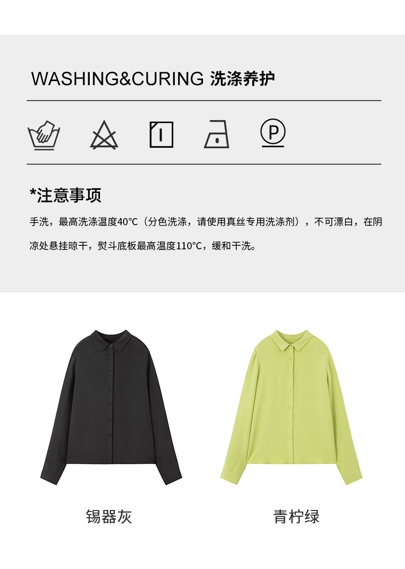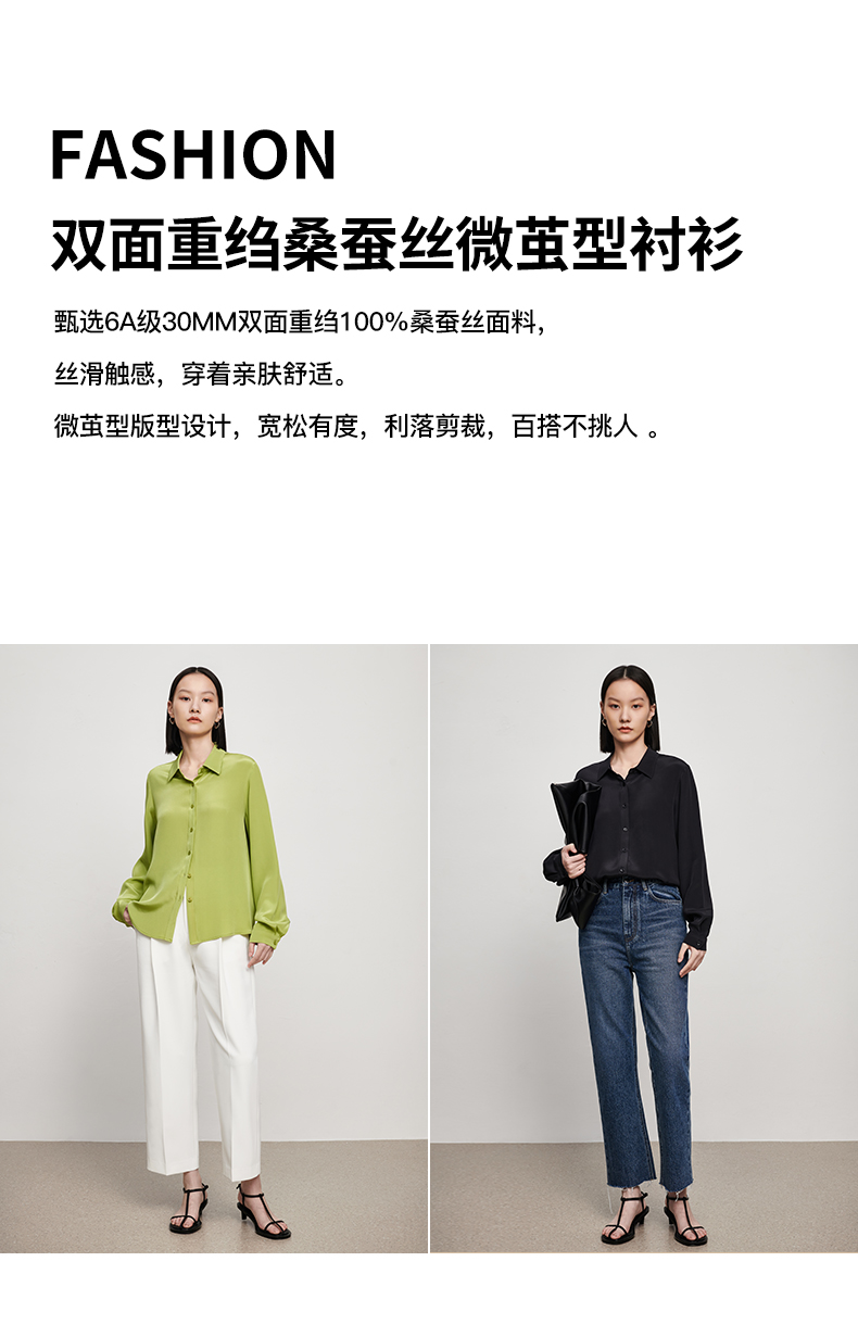 IN AND ON53156【6A级30MM双面重绉桑蚕丝】真丝衬衫女翻领纯色时尚气质通勤上衣