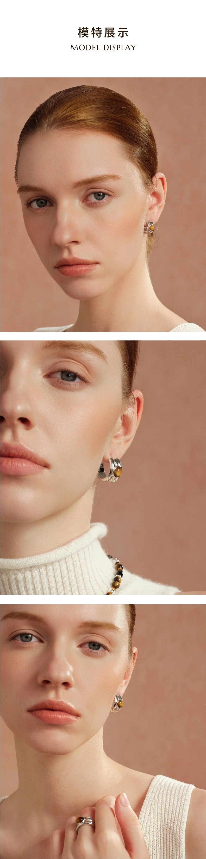 Neverfar Essential·秋冬系列 虎眼石岩纹耳环