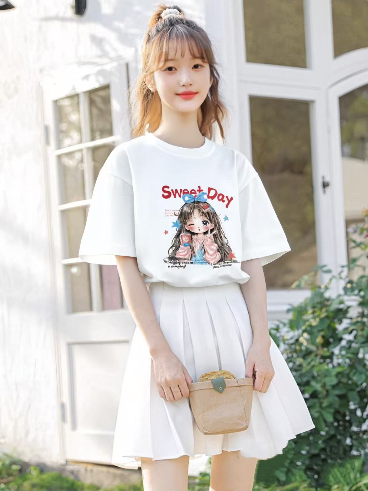 工厂直促价【100%棉】情侣(粉色甜美女孩-大标)柯式印花短袖T恤-喜出
