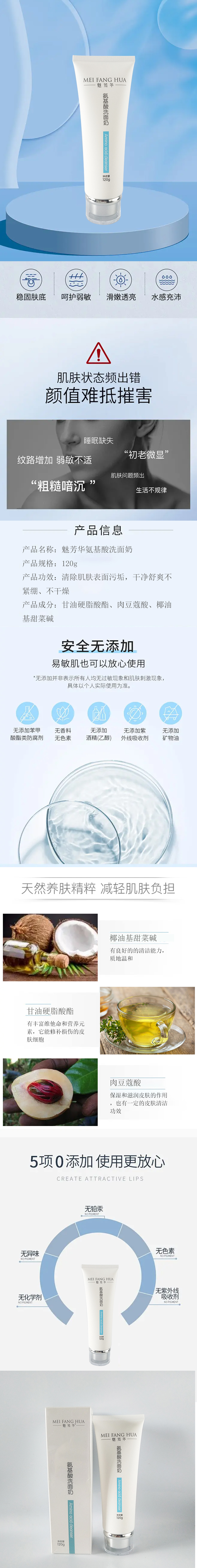 魅芳华氨基酸洗面奶120g清除污垢干净舒适