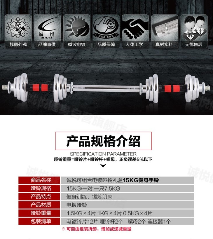 诚悦运动健身组合电镀哑铃15公斤kg礼盒CY-024赠手套护腕连接器
