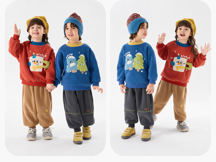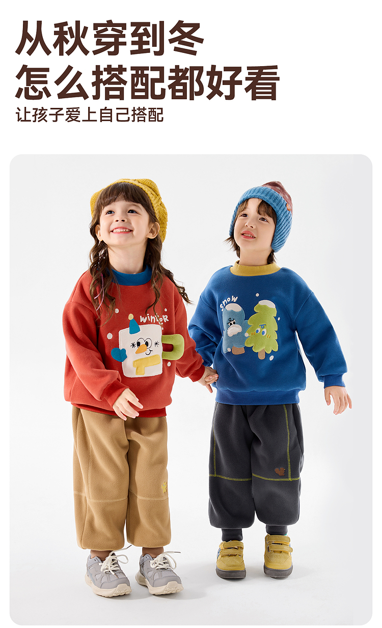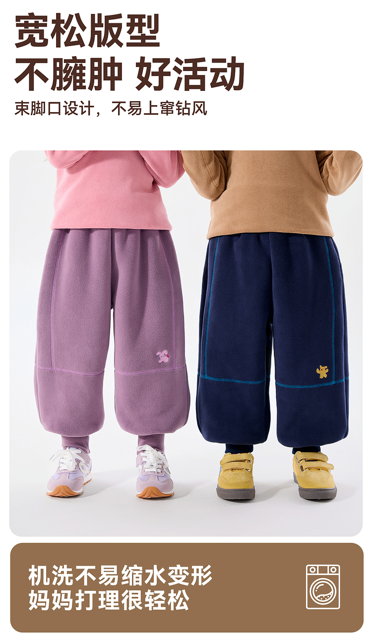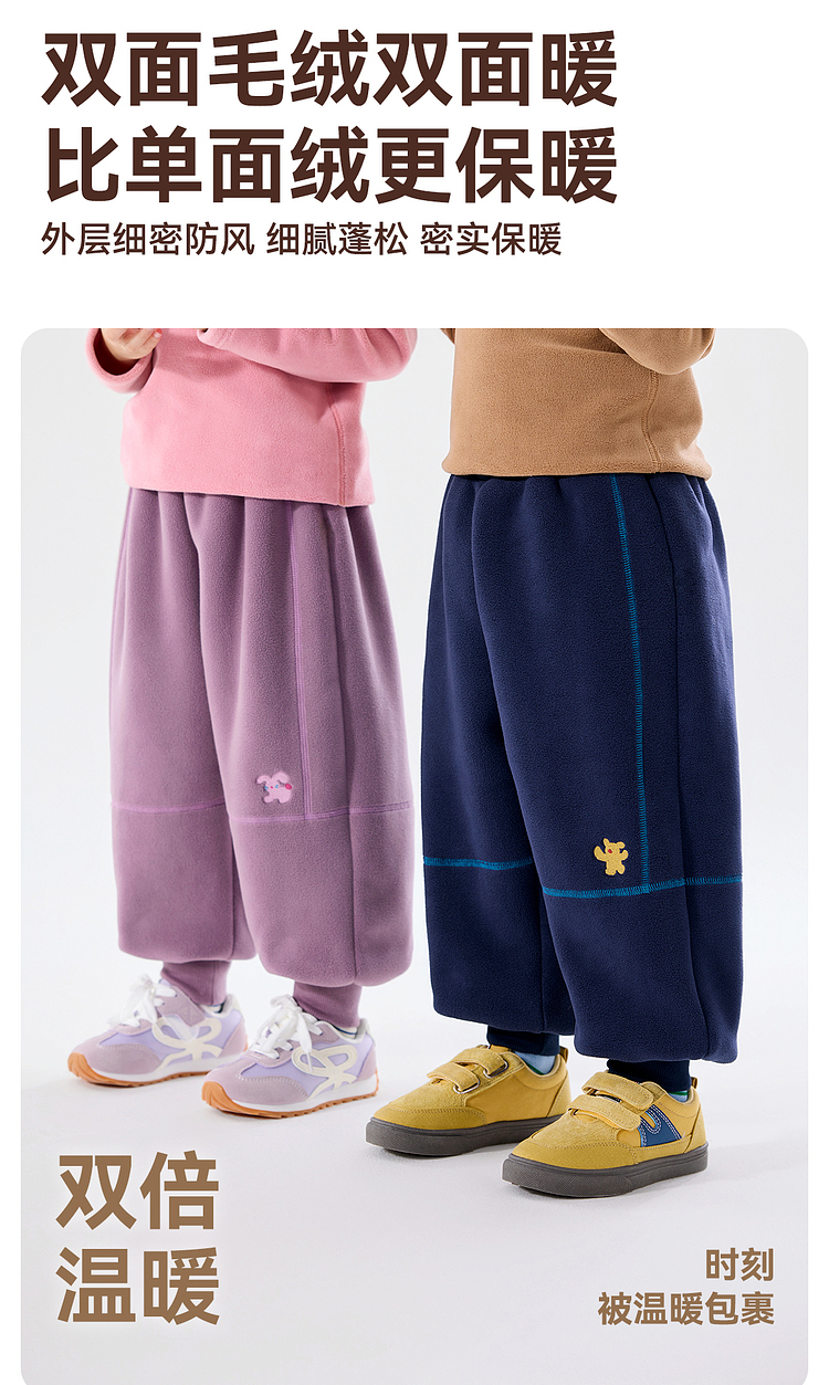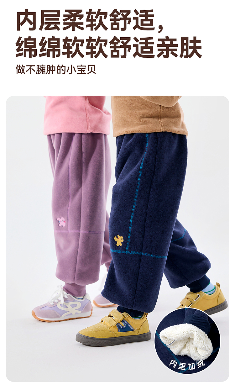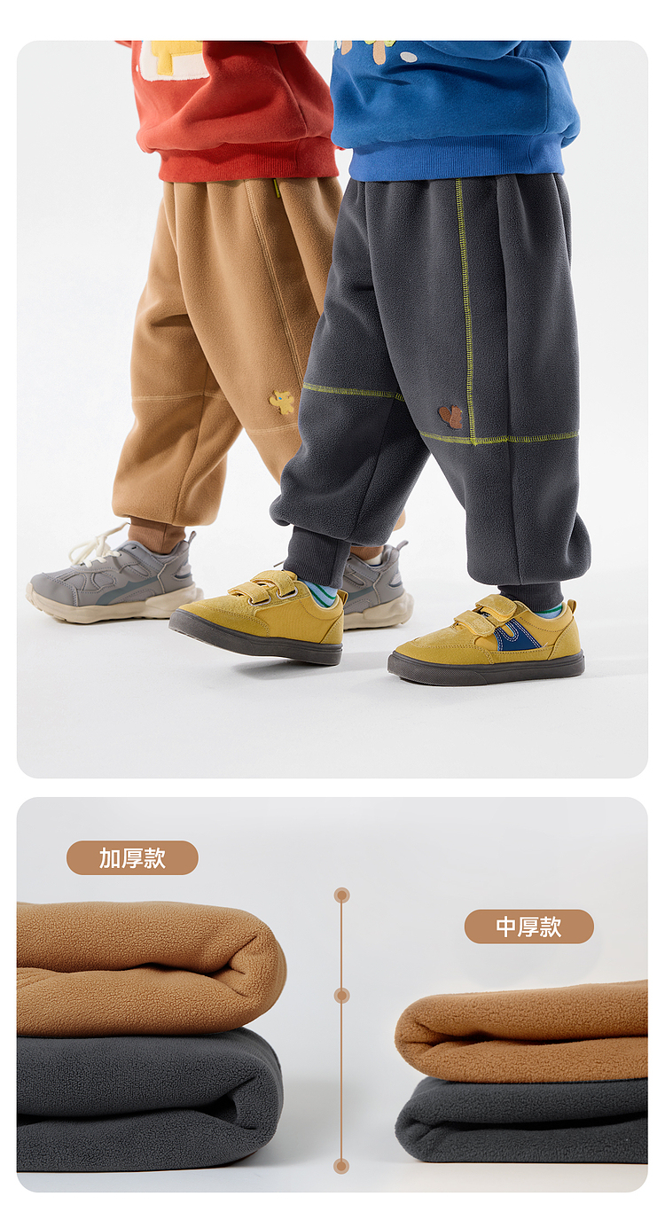 【加厚加绒】嘟嘟家男童裤子冬款儿童双面绒长裤女宝抗静电运动裤