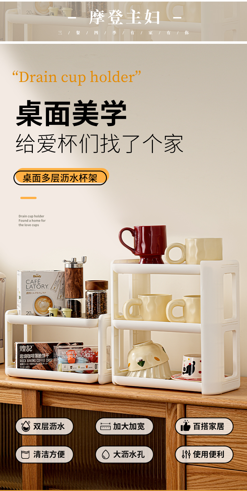 摩登主妇杯架杯子收纳置物架家用桌面水杯茶杯沥水架餐桌整理架子