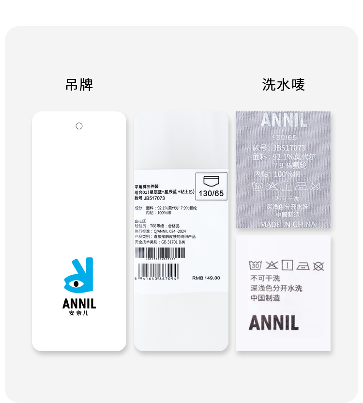 男童平角裤三件装春季新款安奈儿童装JB517073