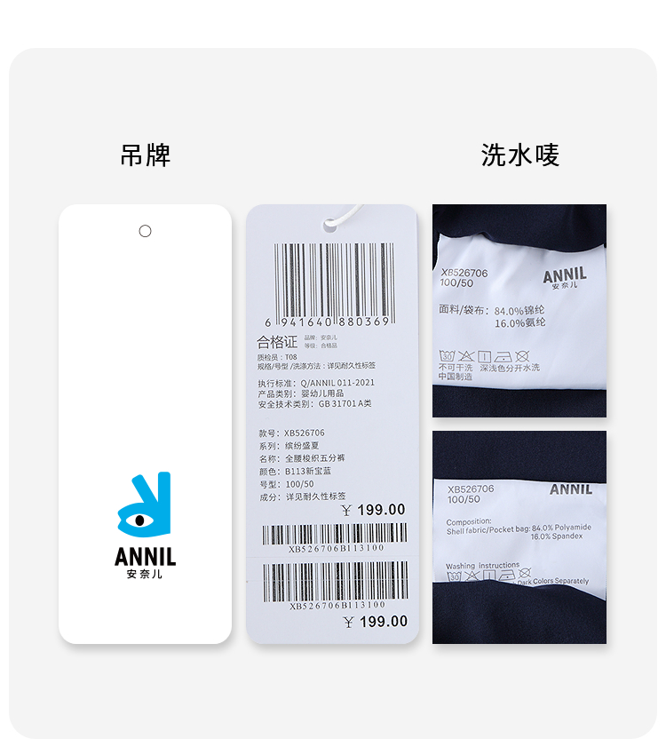 【实体店同款】男童全腰梭织五分裤夏季新款安奈儿童装XB526706