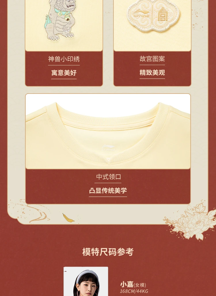 李宁中国文化系列故宫联名女子冰感舒适短袖文化衫AHSVB94