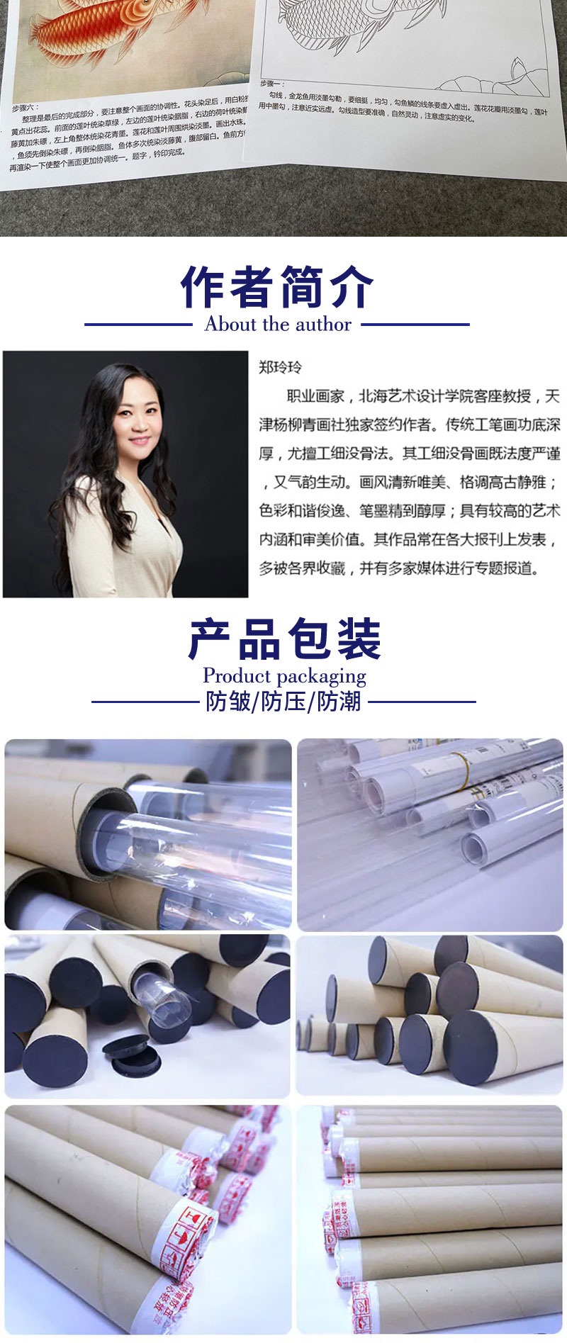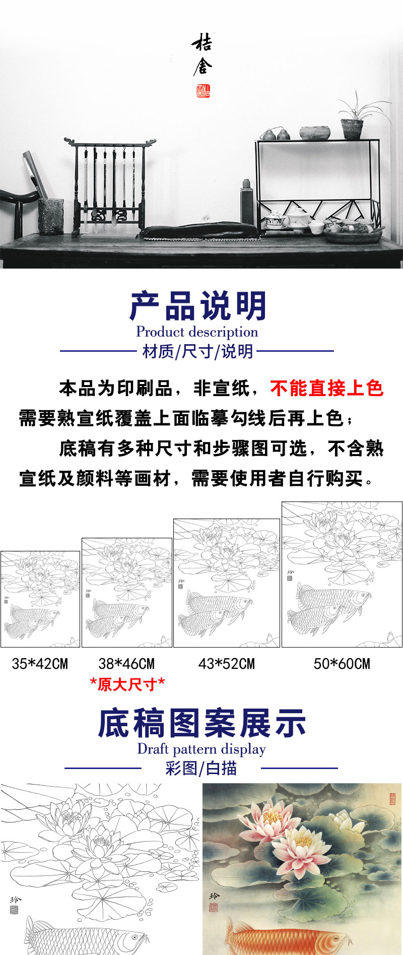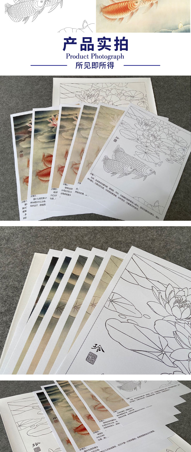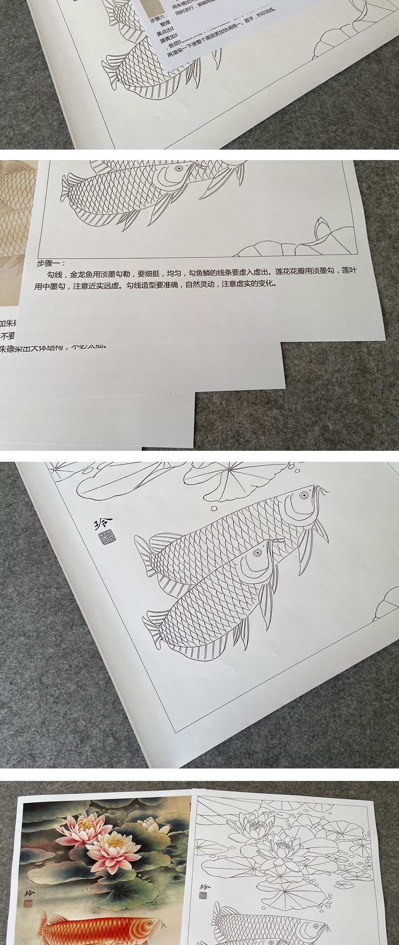 【有步骤、大彩图】郑玲玲工笔画白描底稿《双龙图》荷花鲤鱼初学者临摹花鸟线稿ZL45