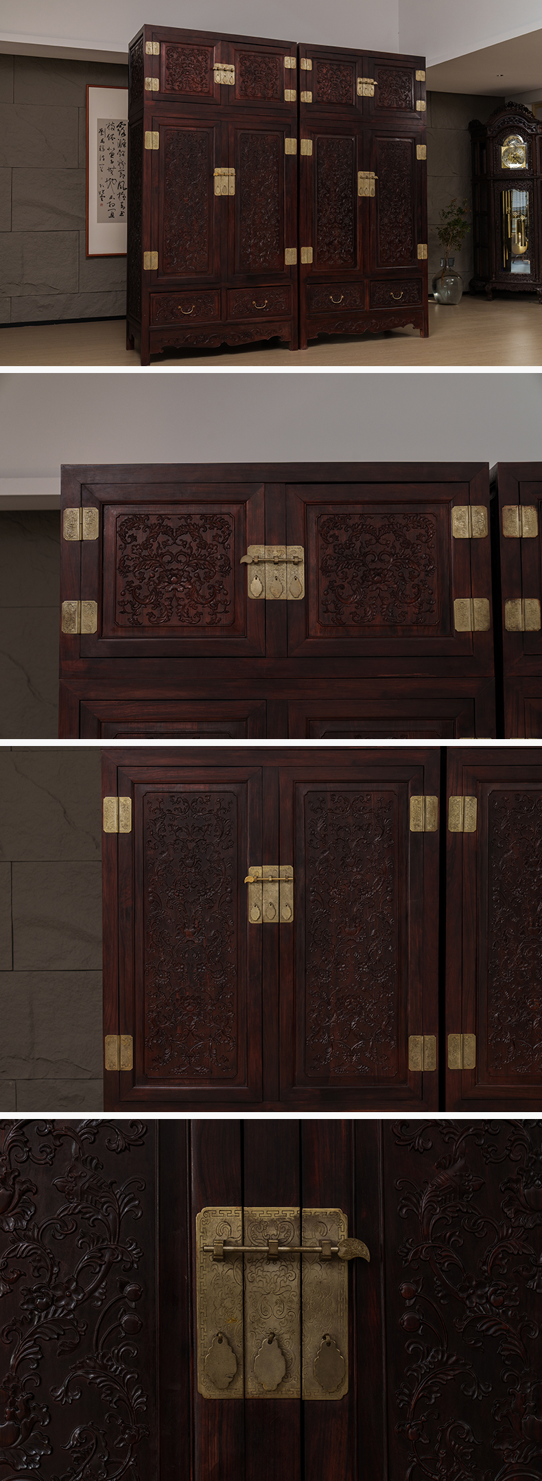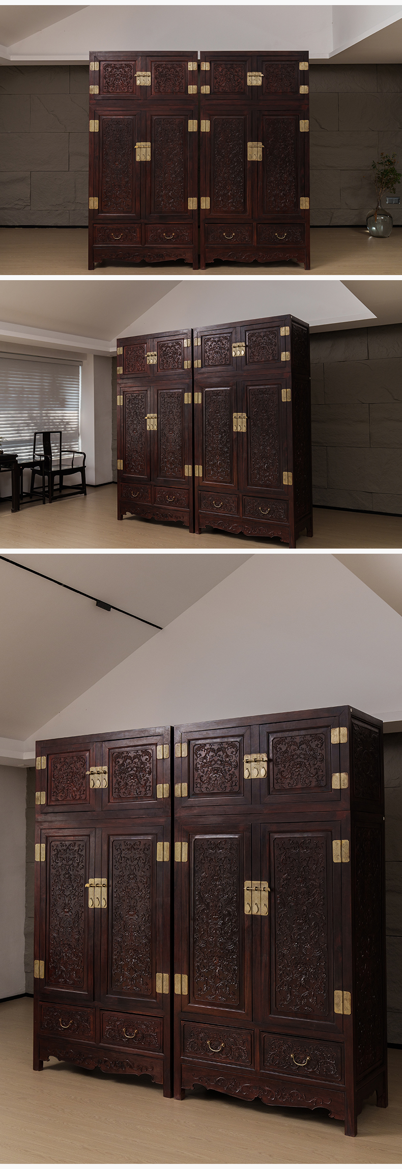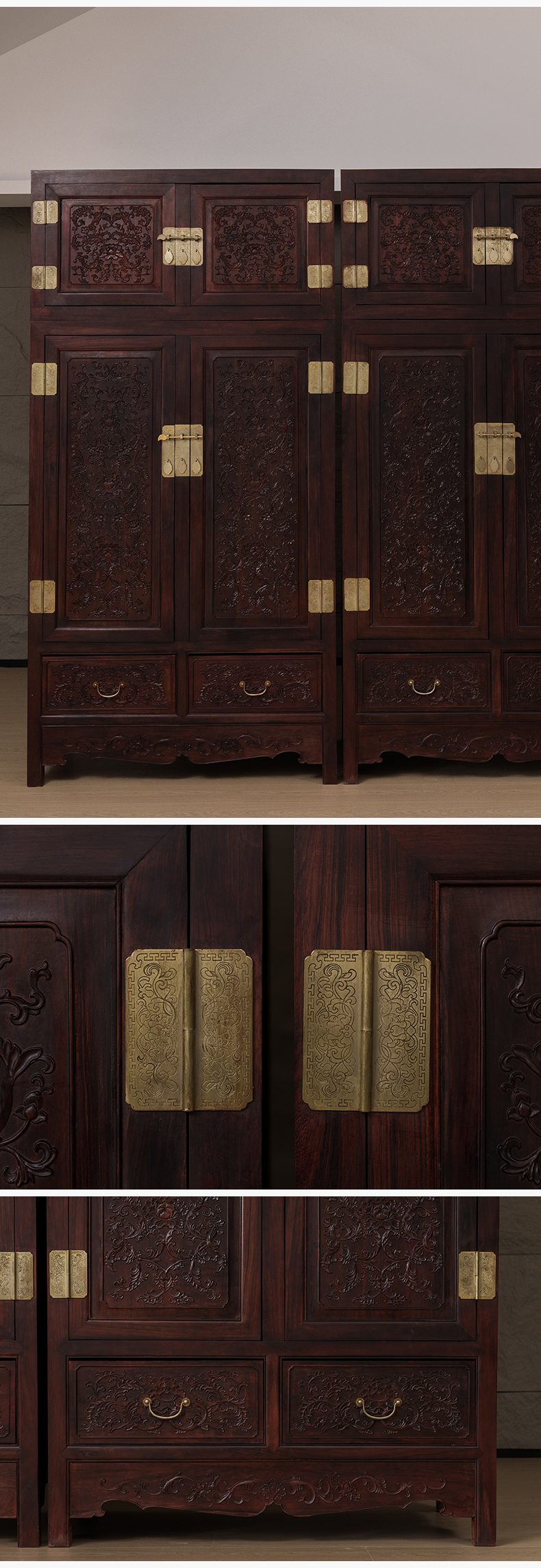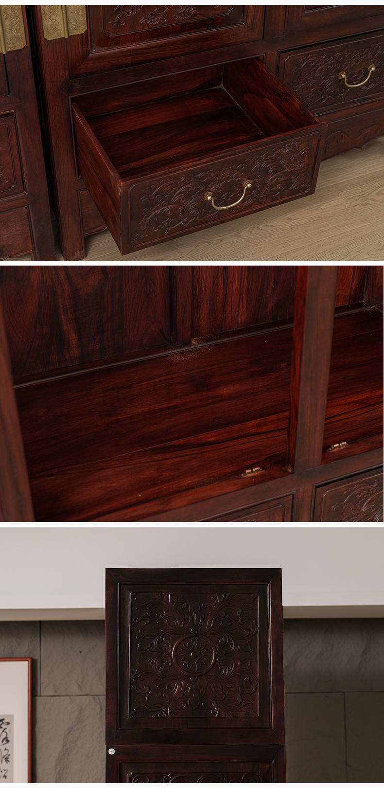 二十世纪 红木螭龙纹带围栏三层架格(一对)