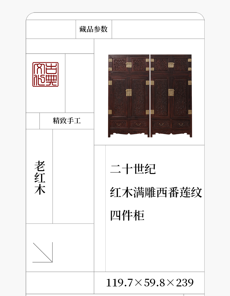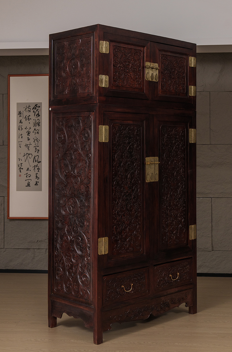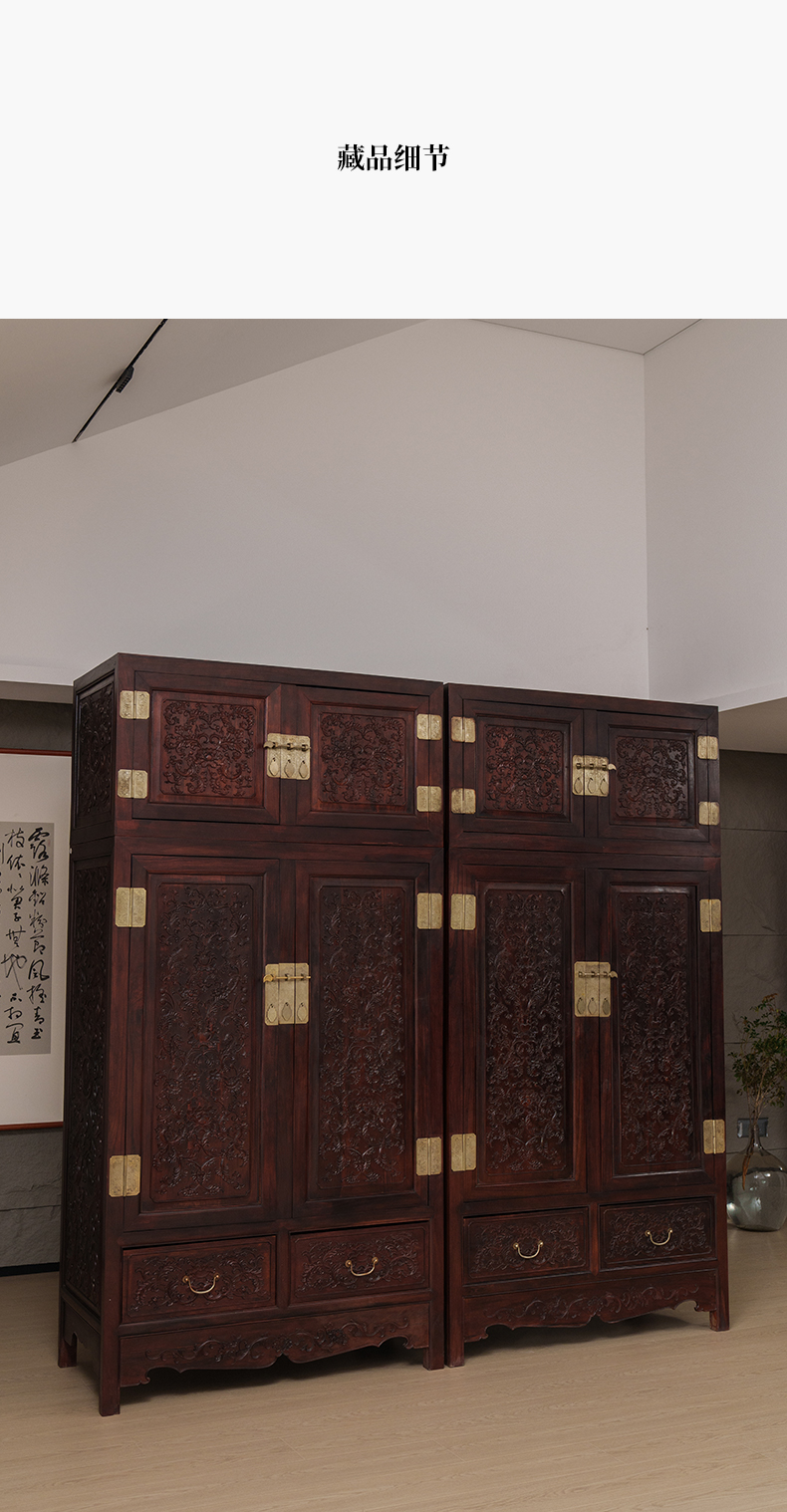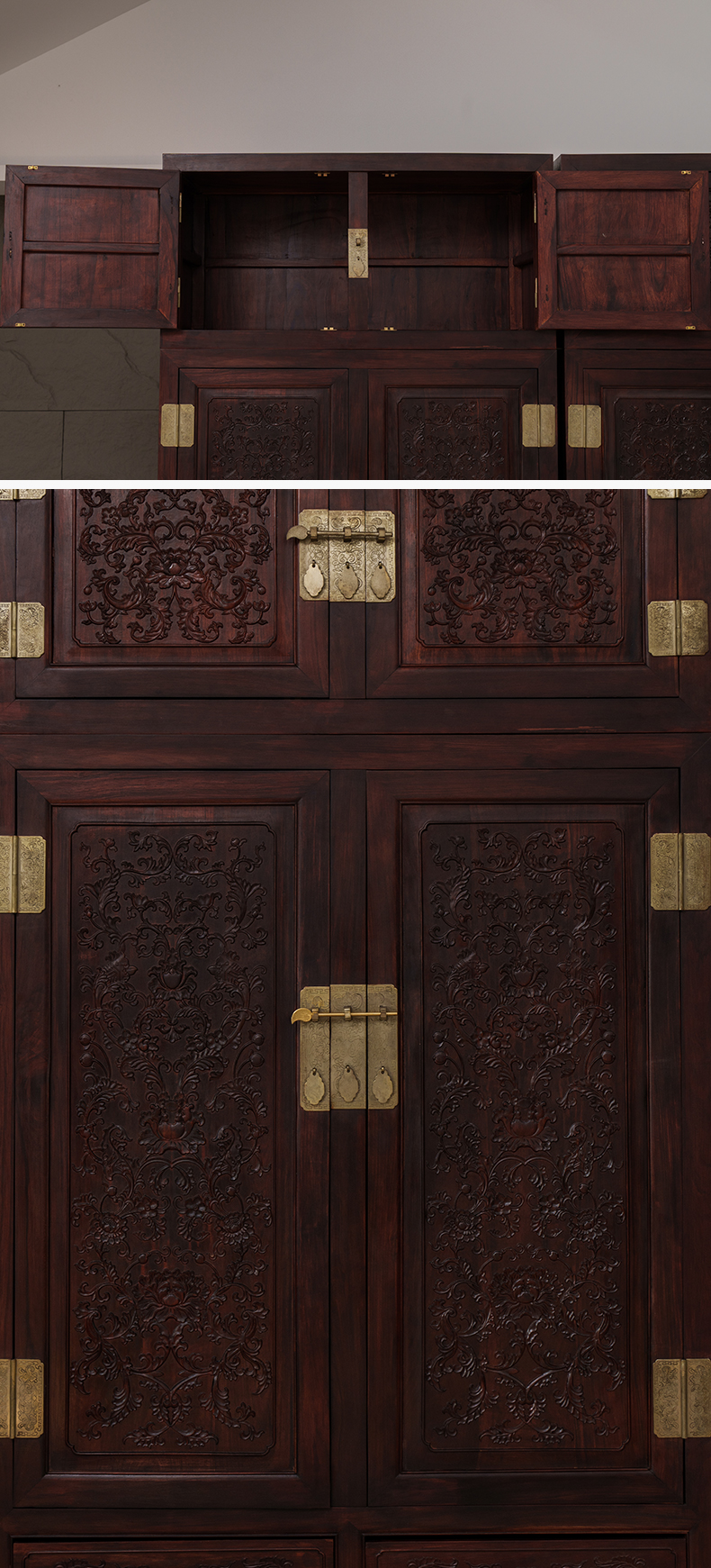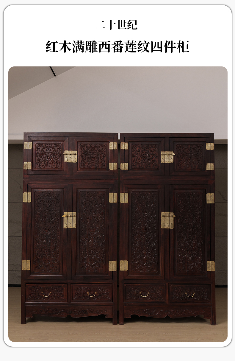 二十世纪 红木螭龙纹带围栏三层架格(一对)