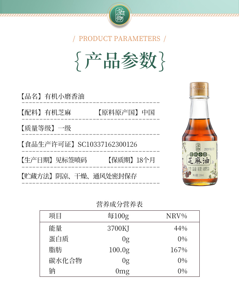 有机小磨芝麻油 | 150ml*2瓶 凉拌菜拌面调味 香油 应物