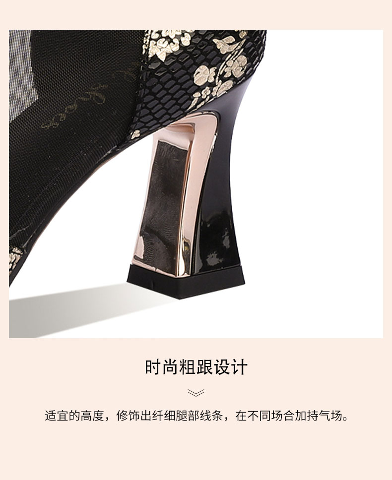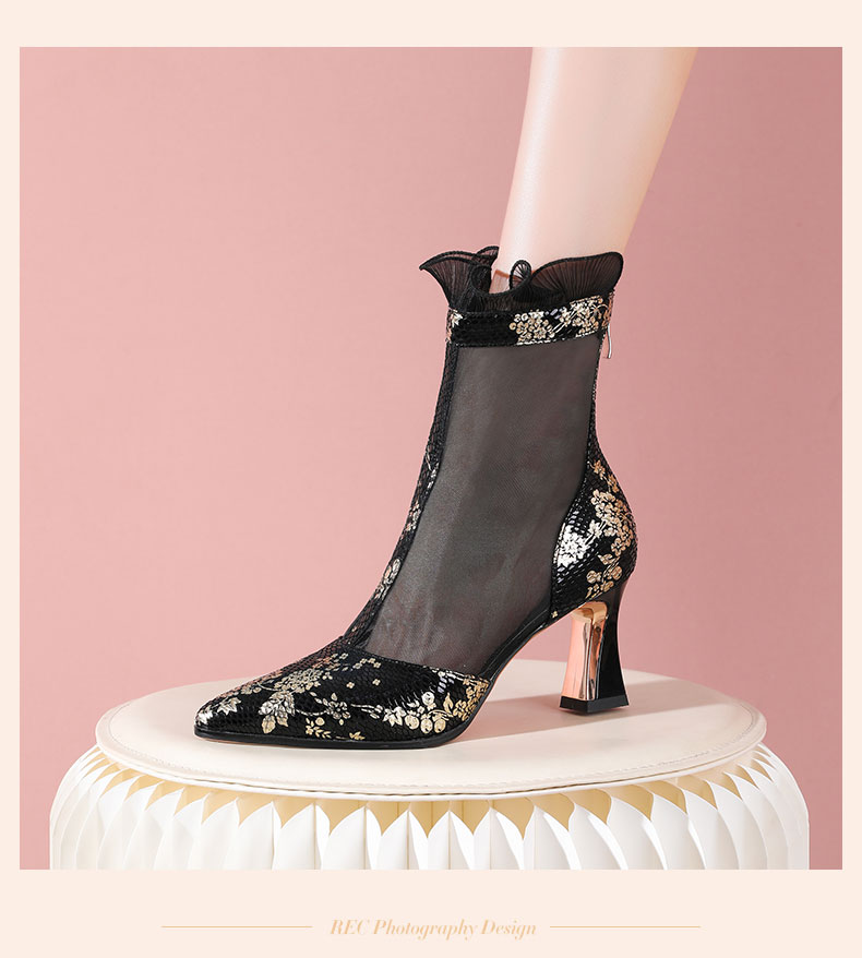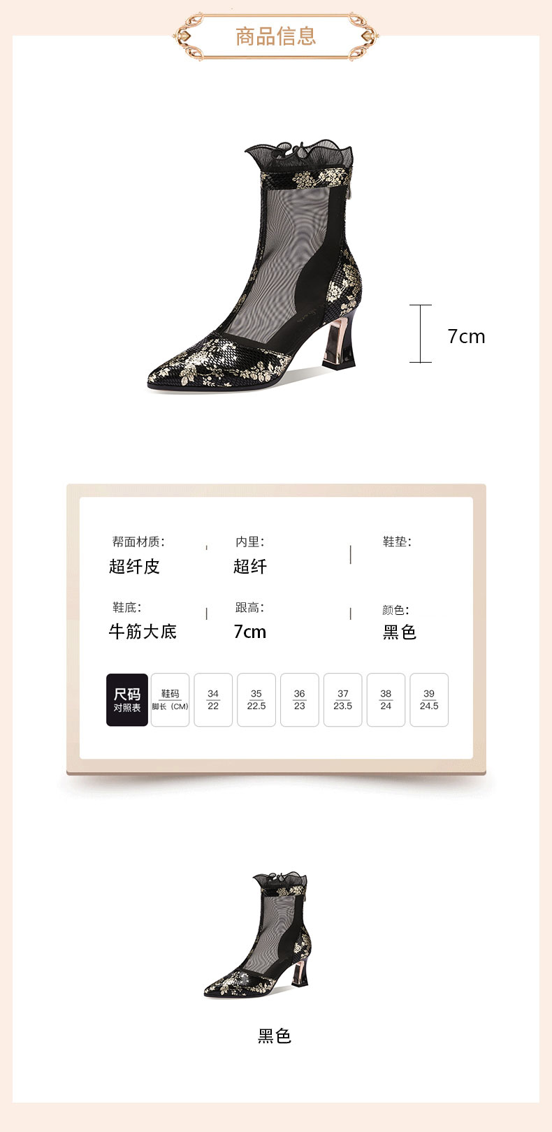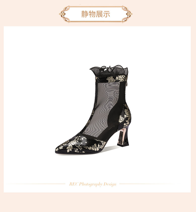 春夏新款,羊京绒拼接网纱尖头高跟花边短靴YSML-D787-197