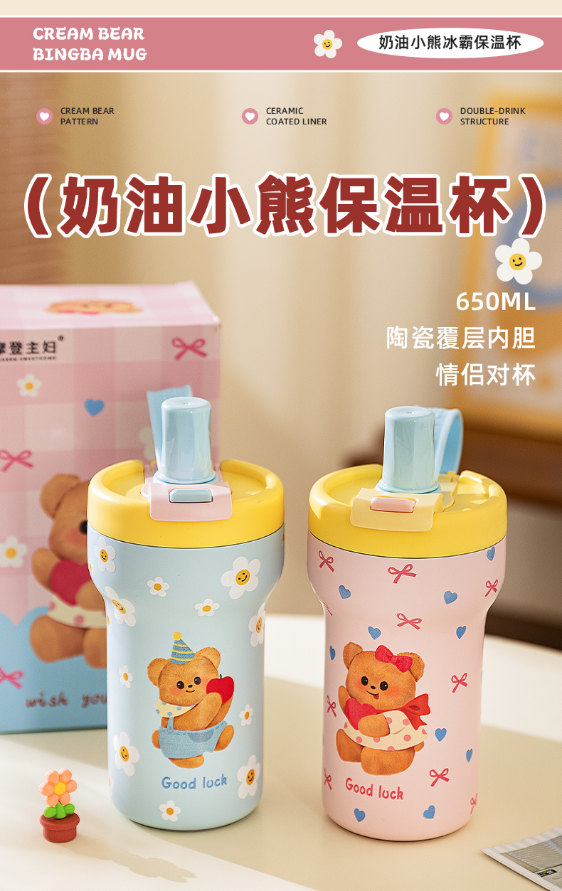 摩登主妇吸管保温杯2025新款大容量陶瓷内胆高颜值水杯女冰霸杯子