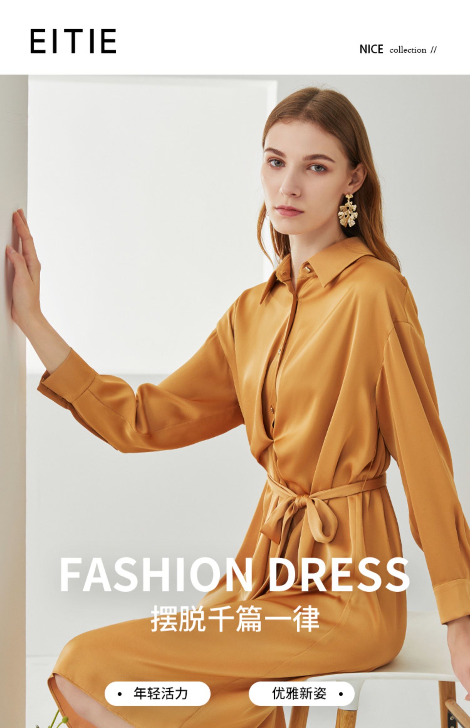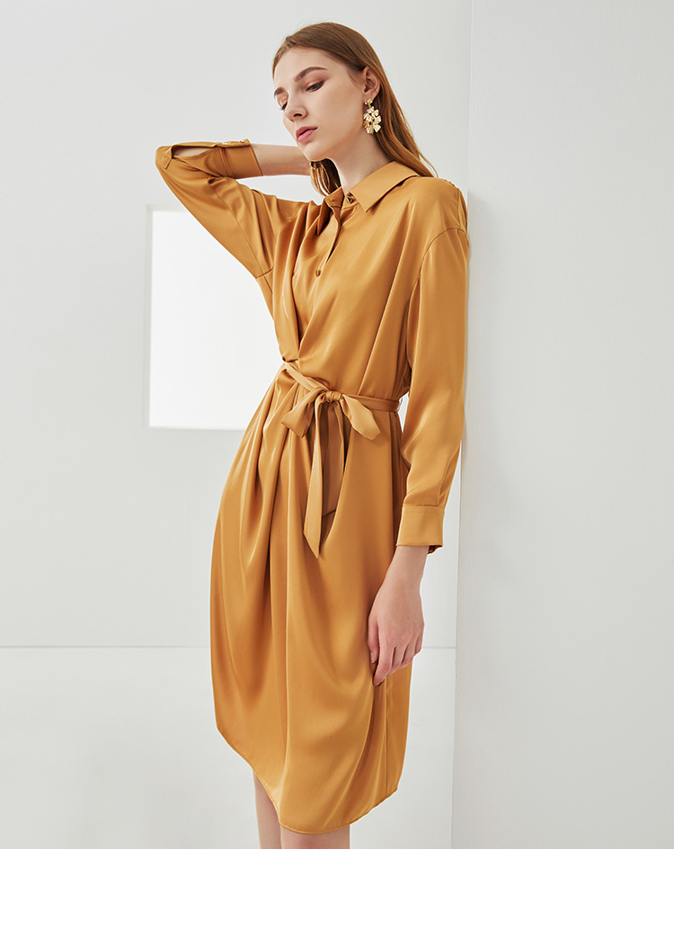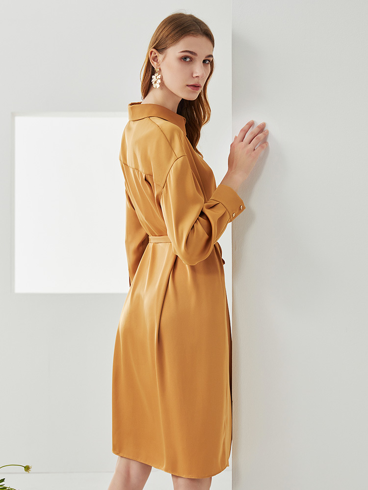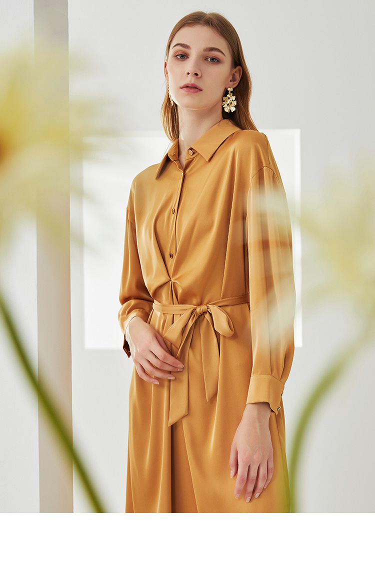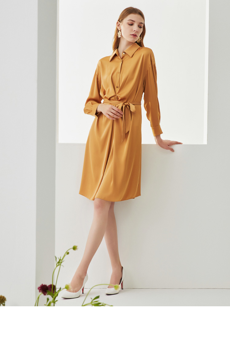 EITIE爱特爱新款时尚气质宽松收腰显瘦垂坠舒适衬衫连衣裙C2107810