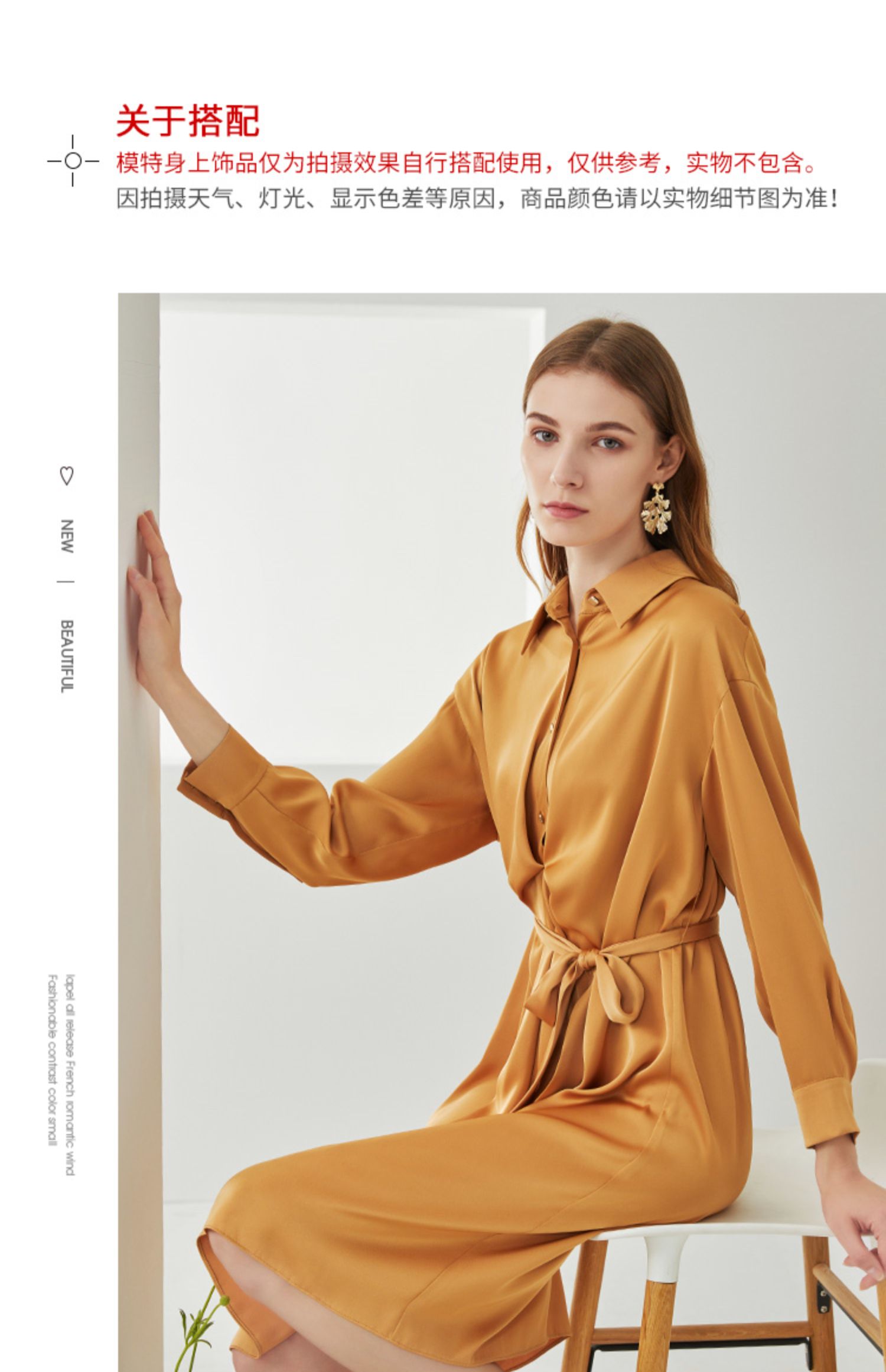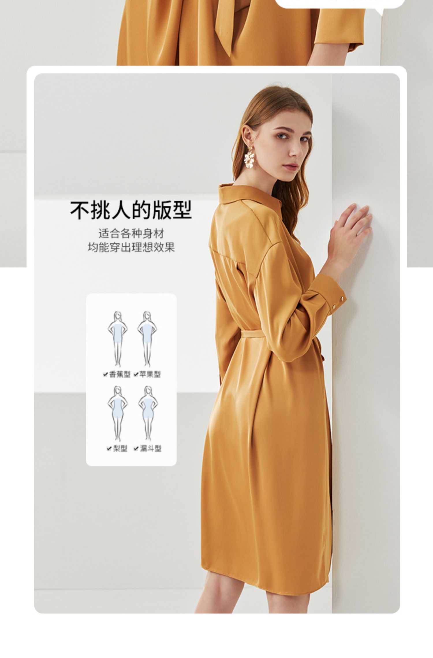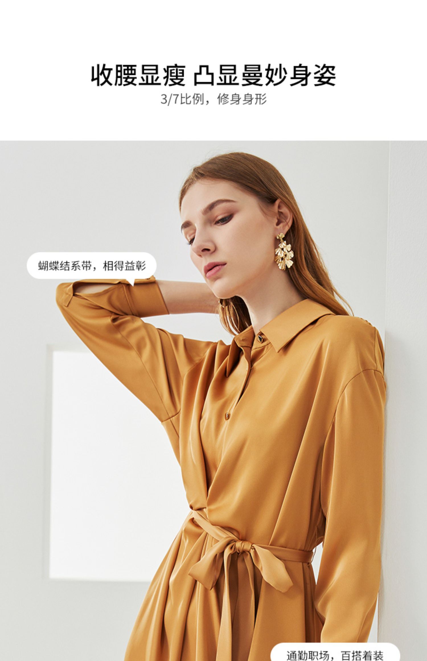 EITIE爱特爱新款时尚气质宽松收腰显瘦垂坠舒适衬衫连衣裙C2107810