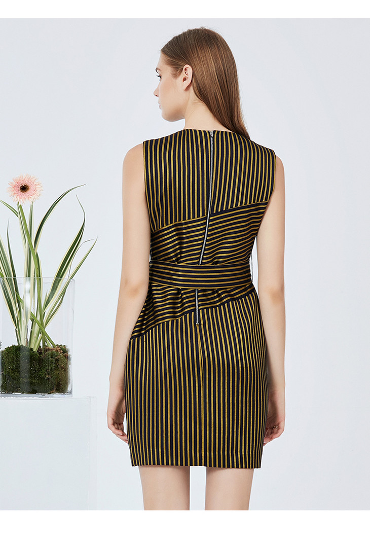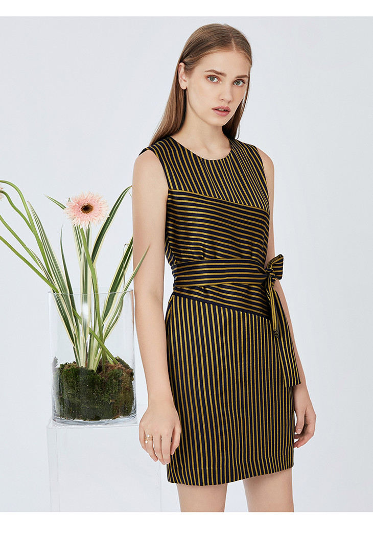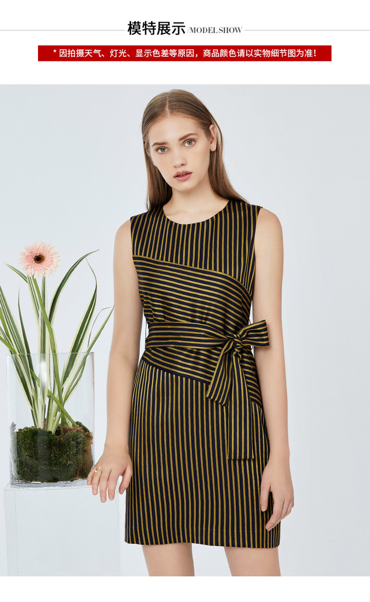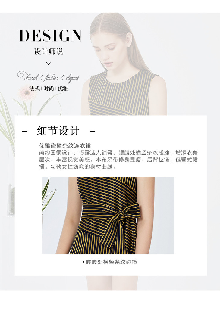 EITIE爱特爱春季系带束腰无袖优雅条纹显瘦连衣裙B20074124