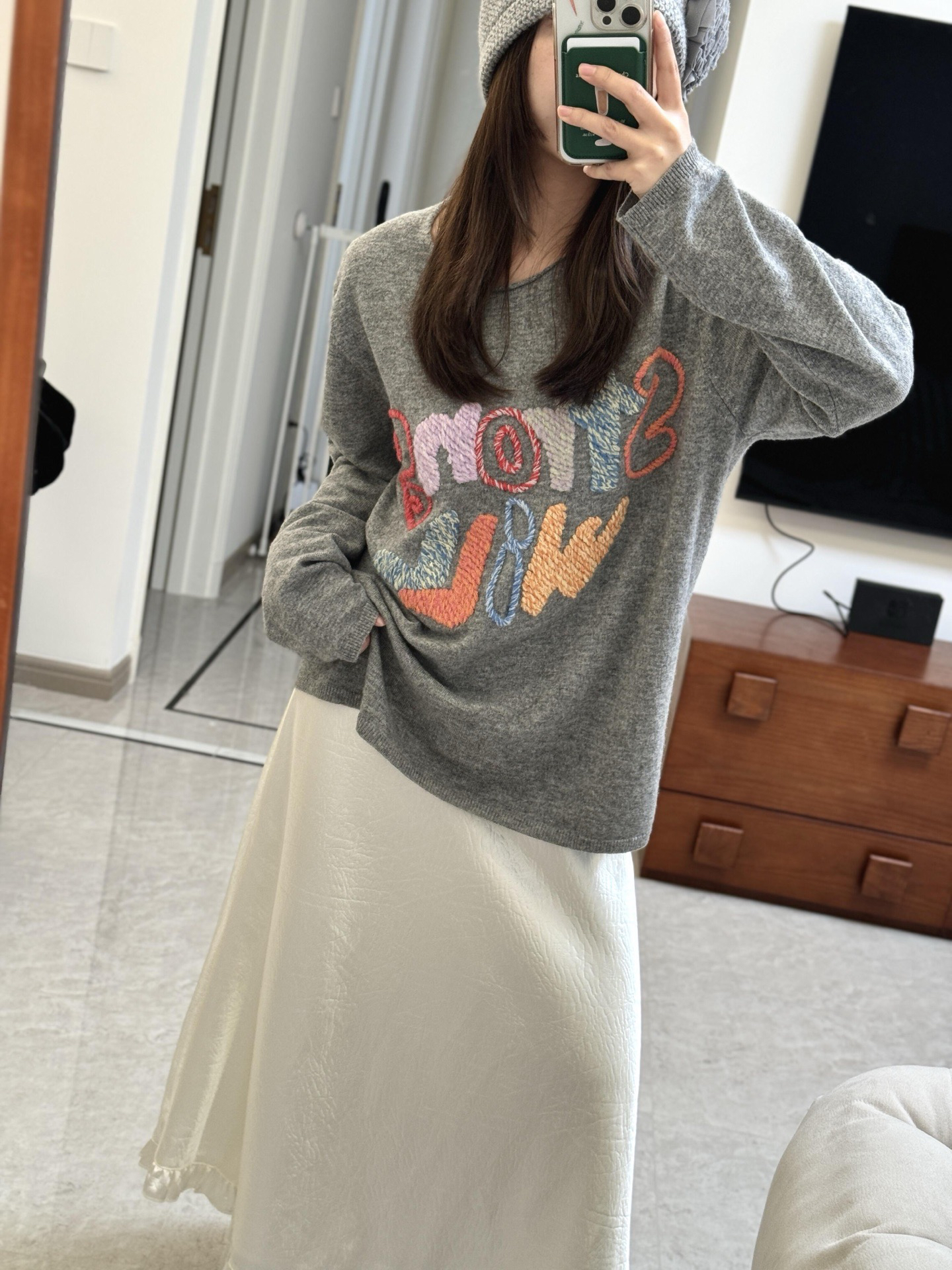 🔺很有艺术氛围感的手绣字母羊毛衫