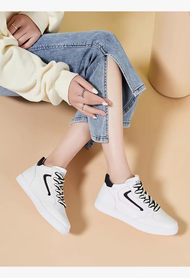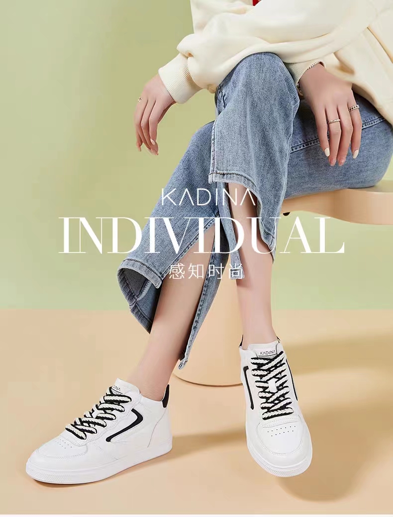 卡迪娜23年春季新款交叉绑带女休闲鞋轻便平跟深口小白鞋KC232402