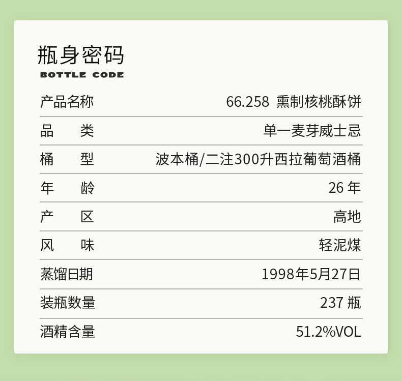 SMWS 苏格兰麦芽威士忌协会 甄选黑标 66.258 熏制核桃酥饼