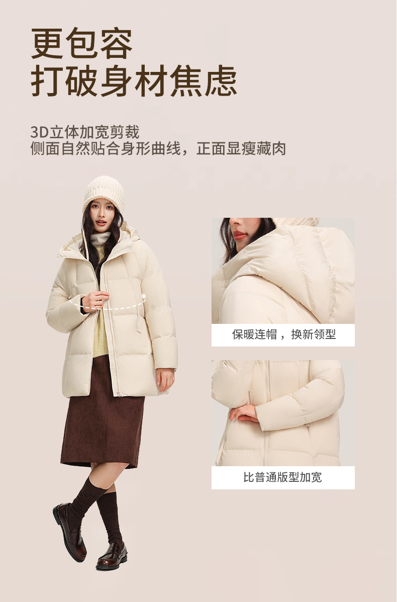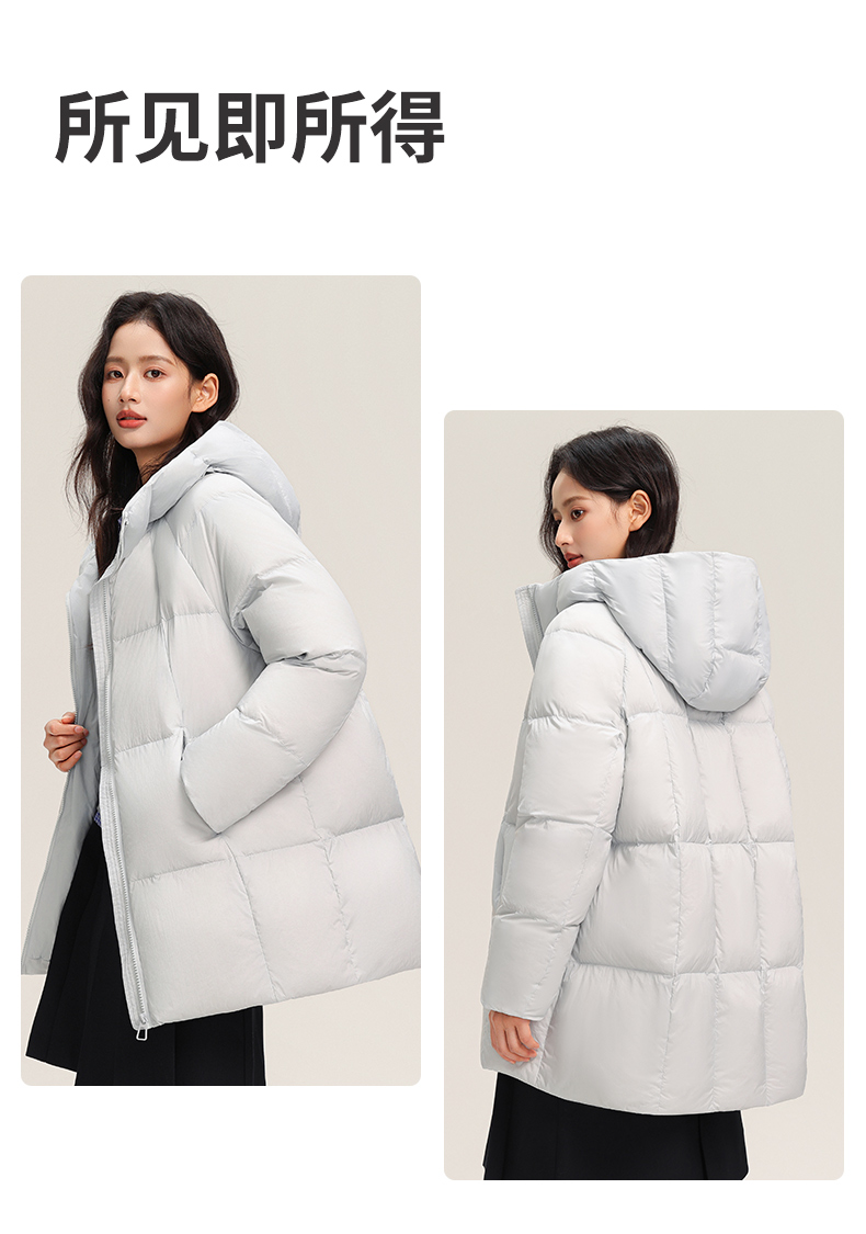 個调新款冬季小个子连帽高领保暖羽绒服女中长款泡芙外套显瘦1036 商品图3