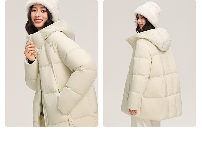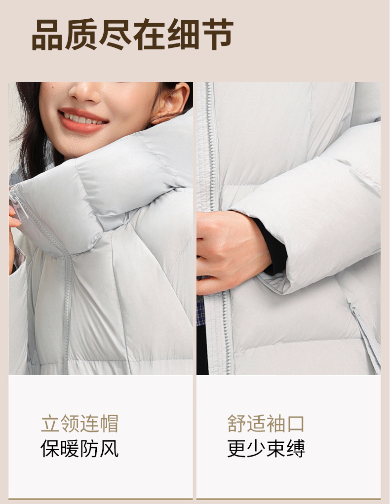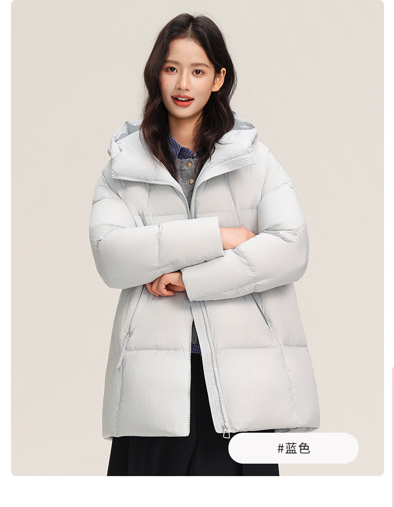 個调新款冬季小个子连帽高领保暖羽绒服女中长款泡芙外套显瘦1036 商品图4
