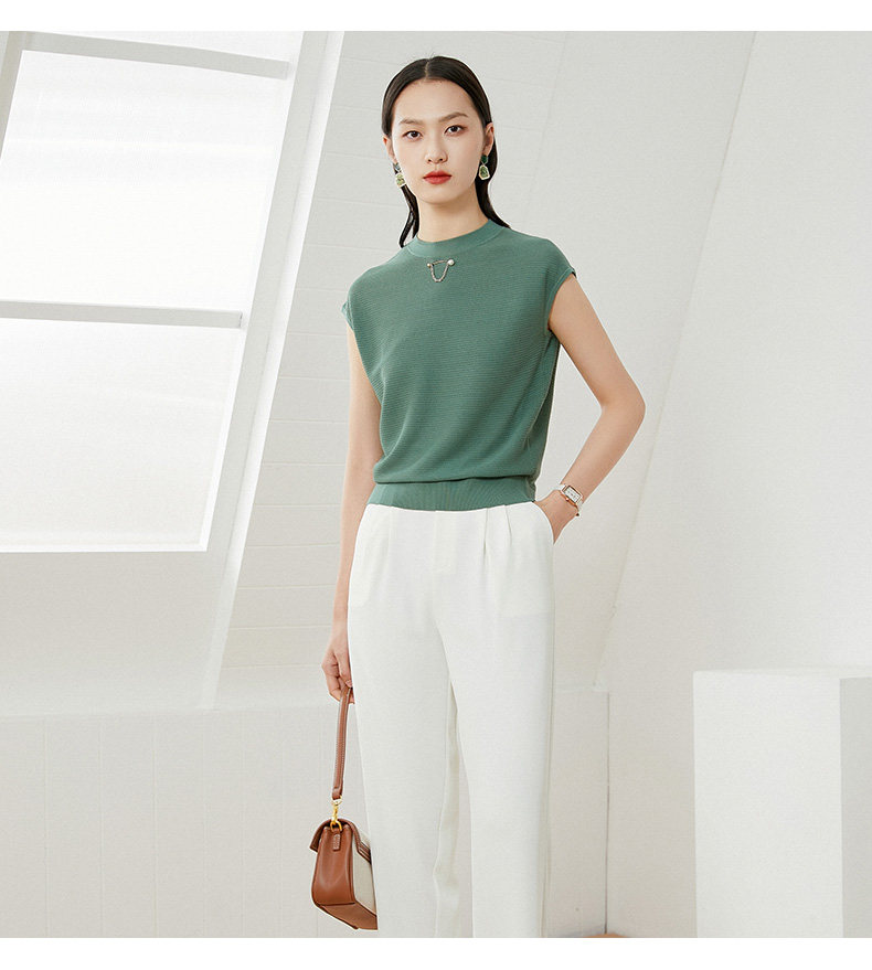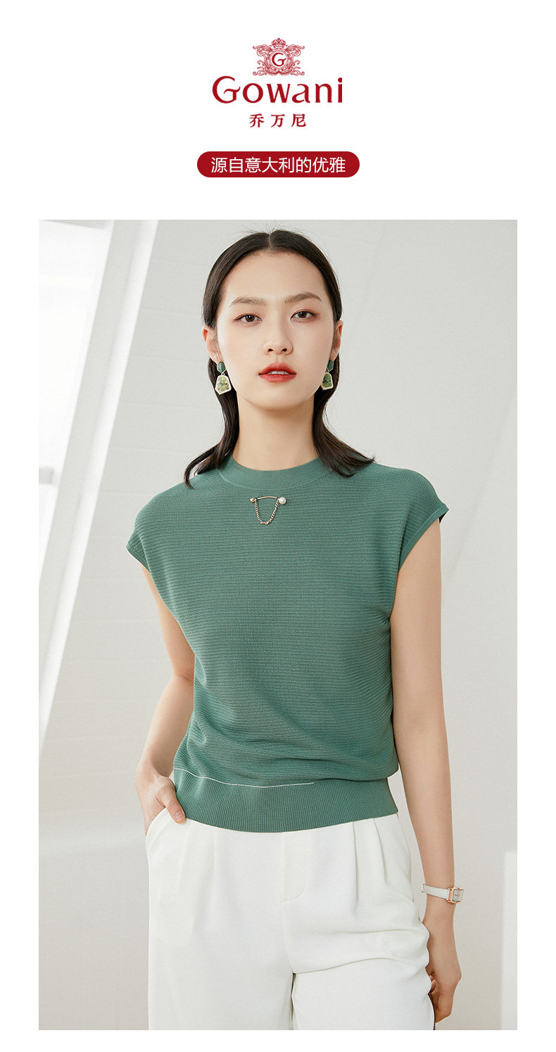 乔万尼早春针织衫薄款小香风设计感圆领宽松夏款短袖上衣EI2M817