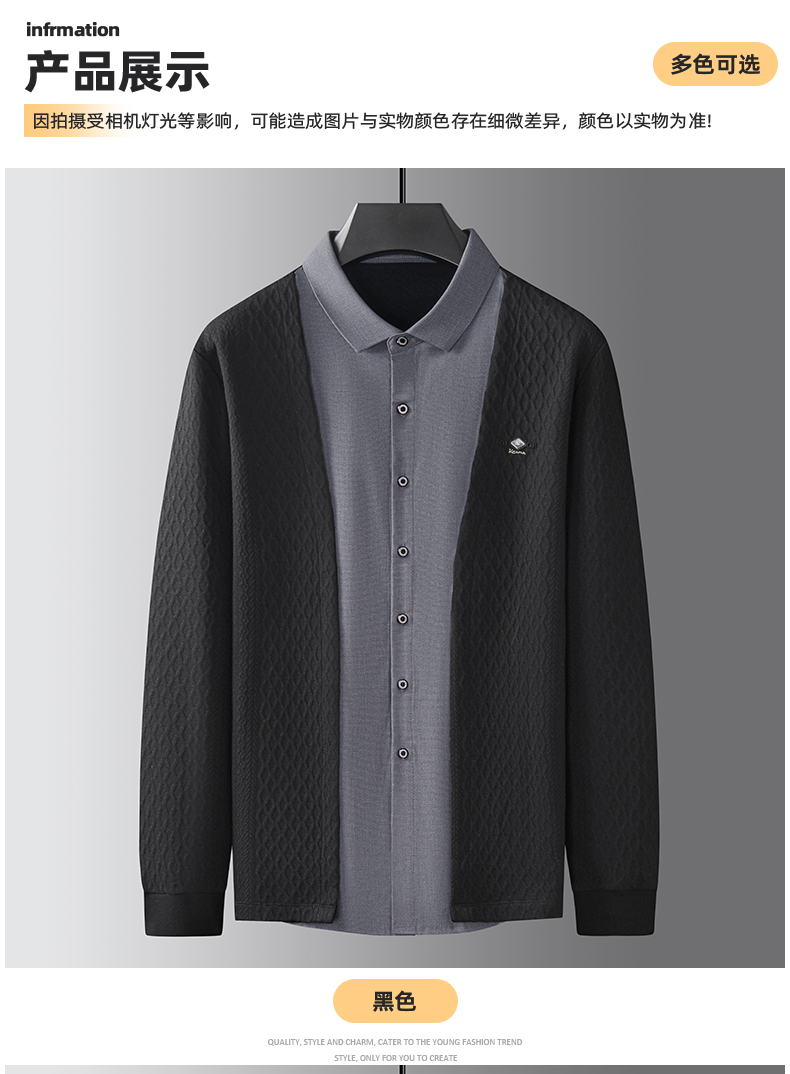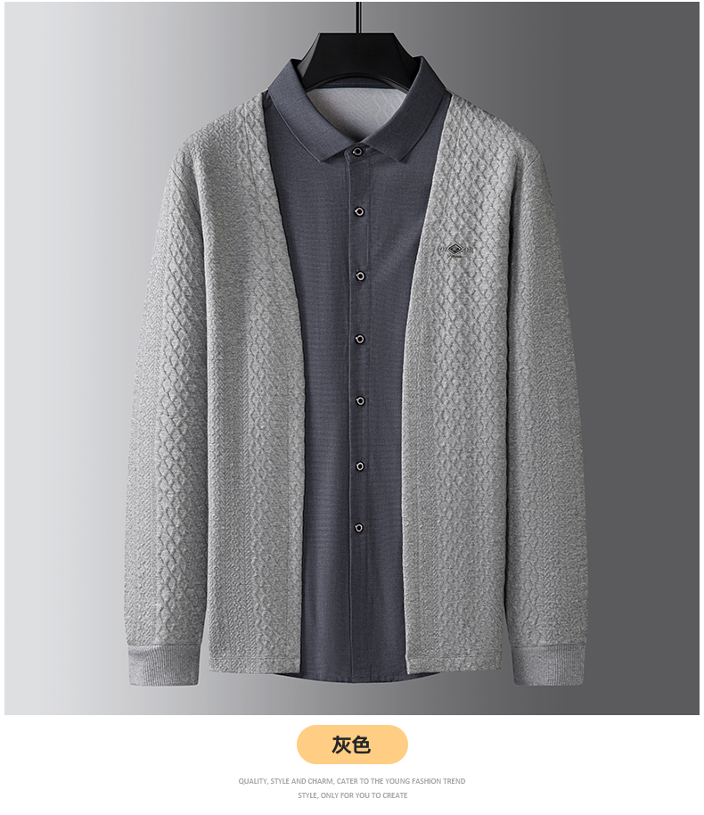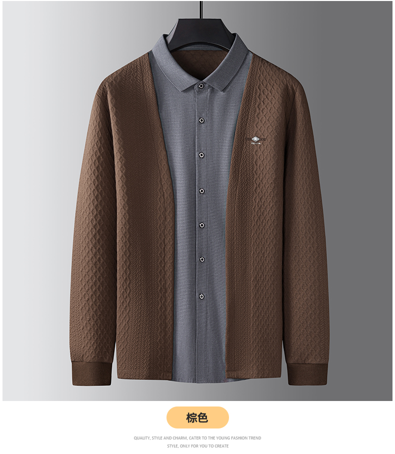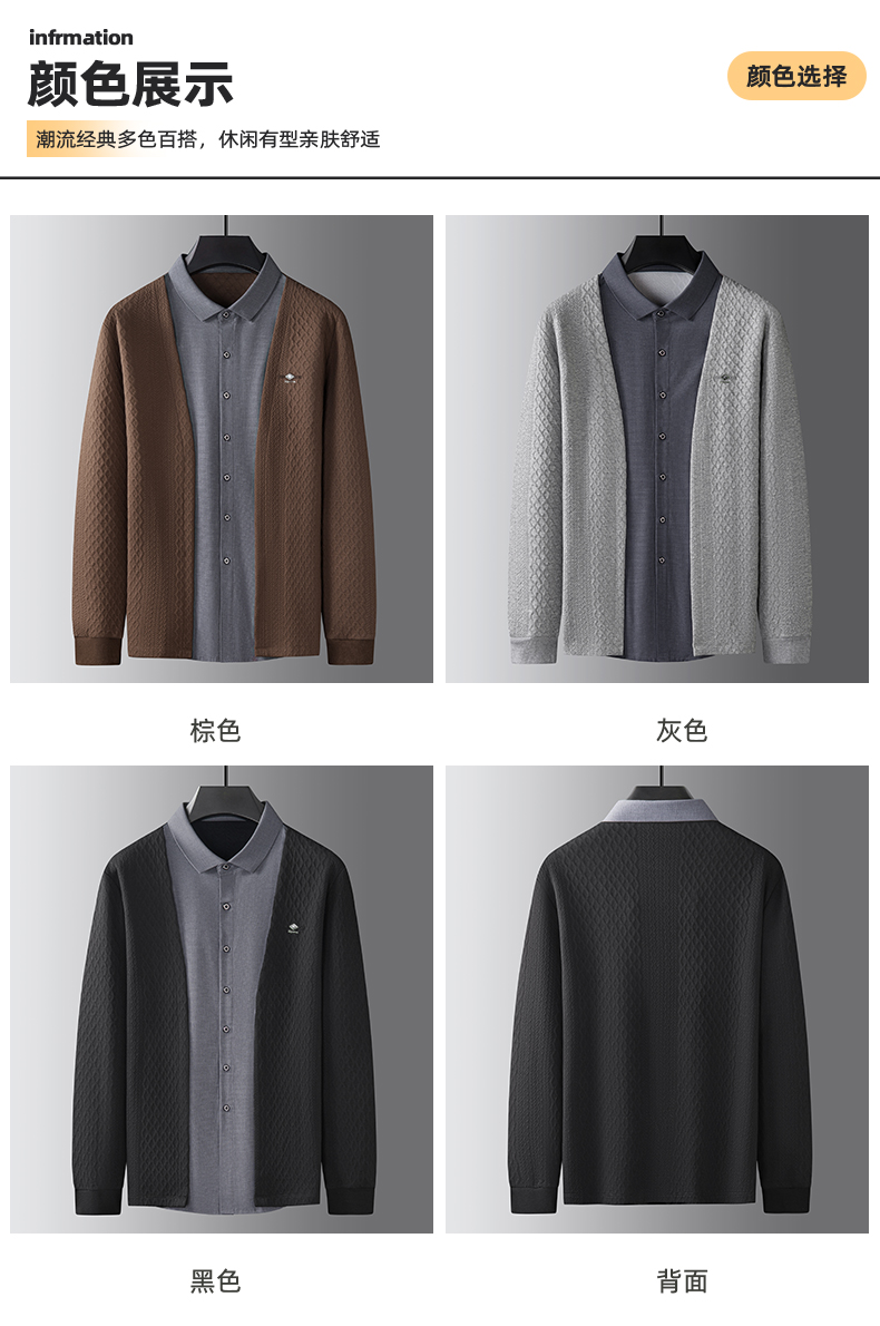 【假两件】【新款DK】大依优型大码男士假两件开衫长绒棉长袖T恤商务休闲上衣加肥加大胖子舒适