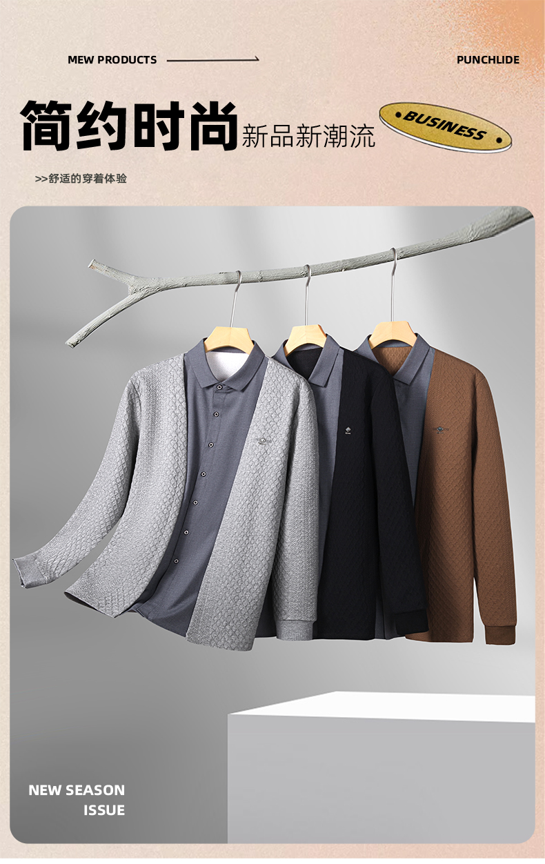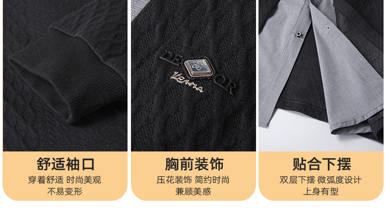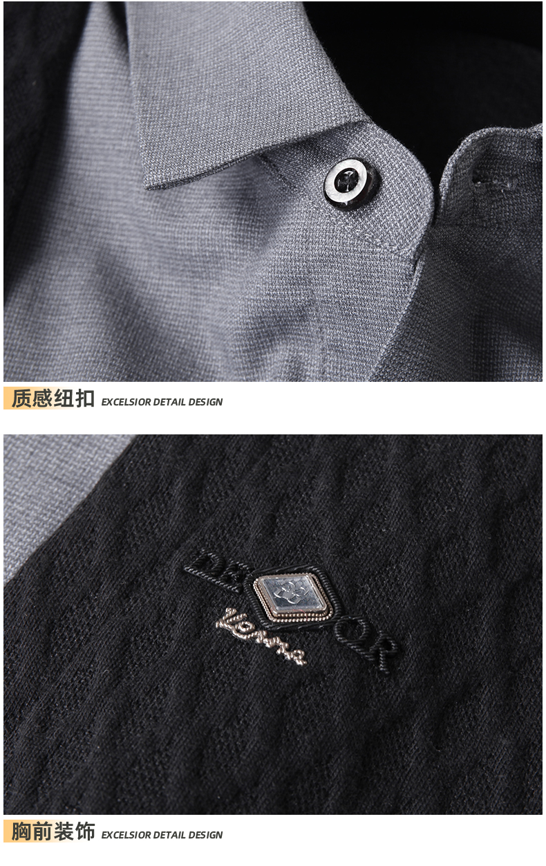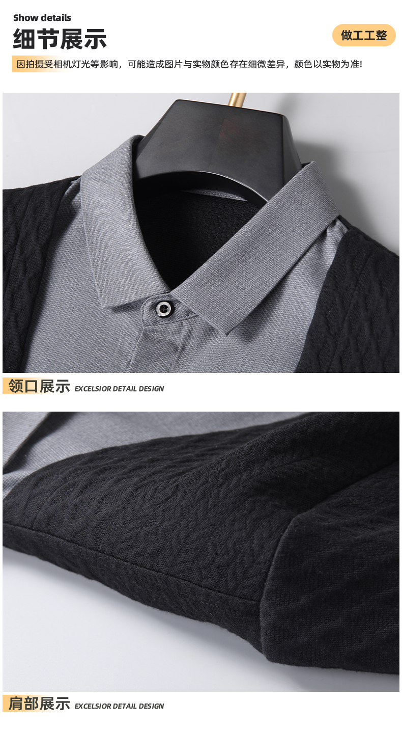 【假两件】【新款DK】大依优型大码男士假两件开衫长绒棉长袖T恤商务休闲上衣加肥加大胖子舒适