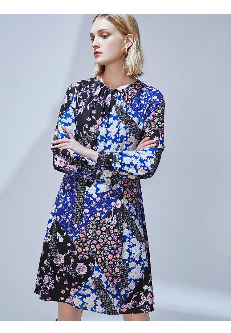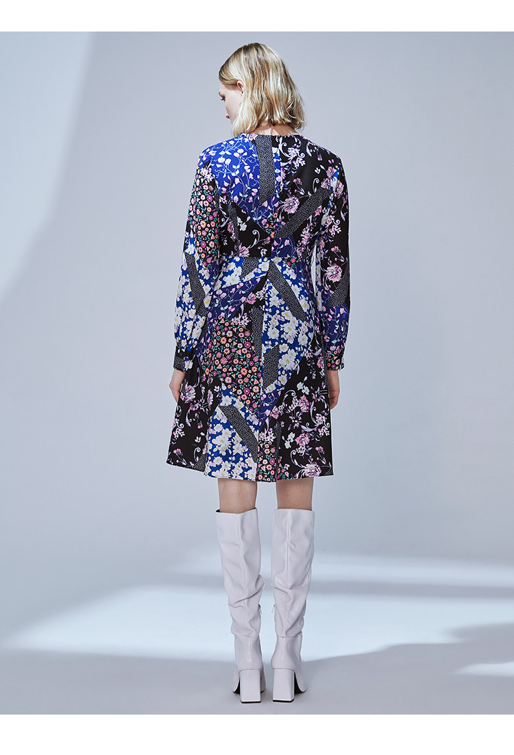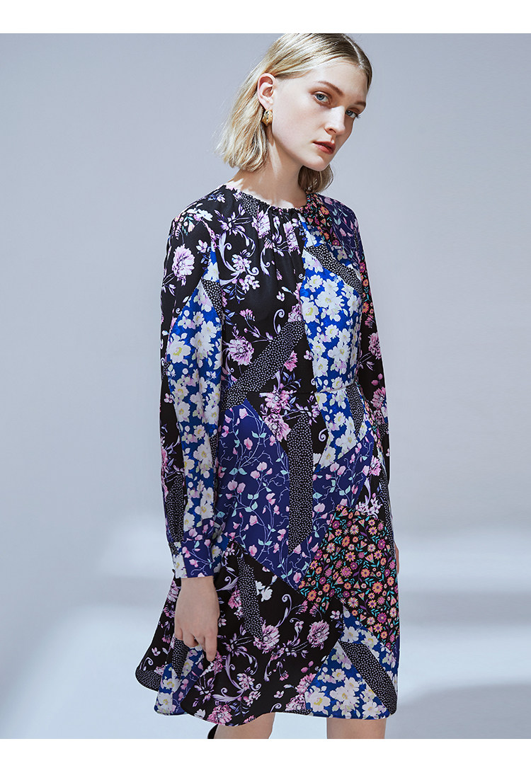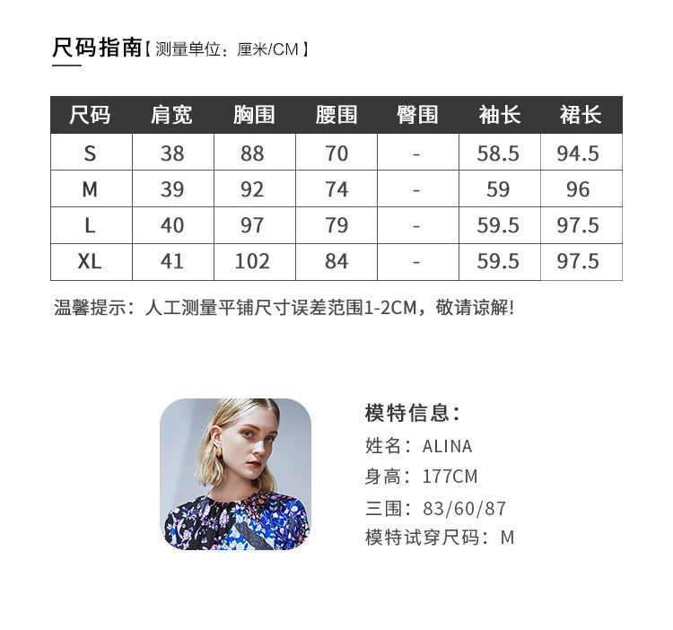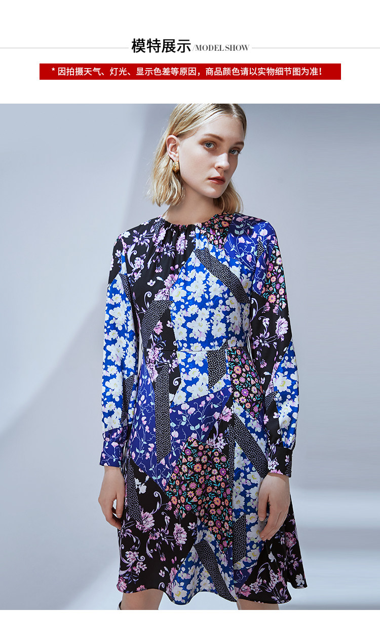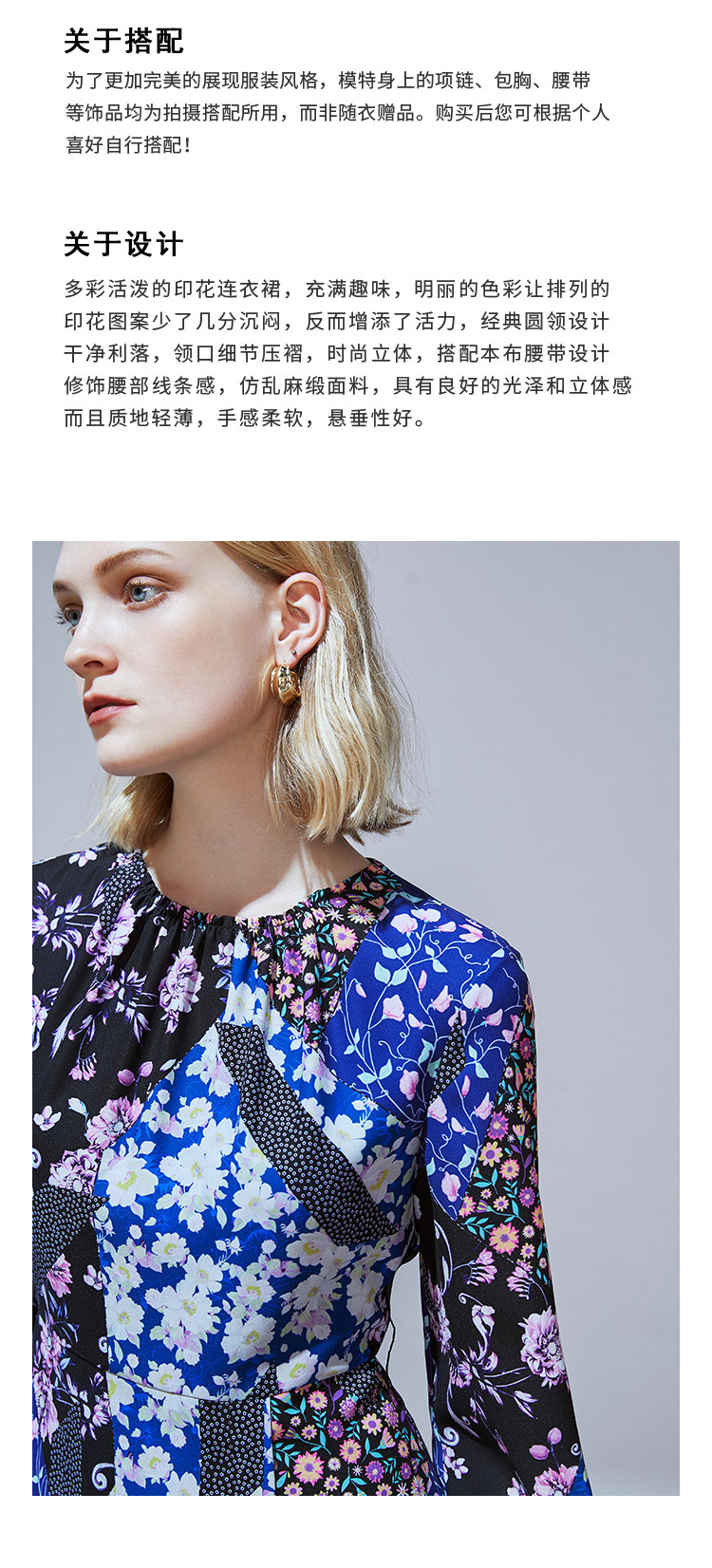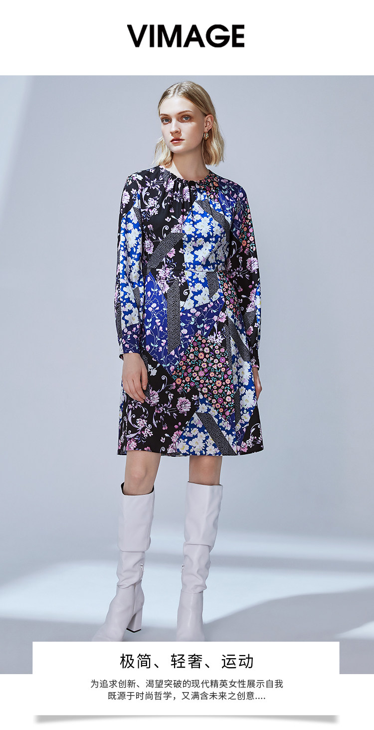 VIMAGE纬漫纪品牌女装春季新款个性印花时尚收腰A字连衣裙V1407004