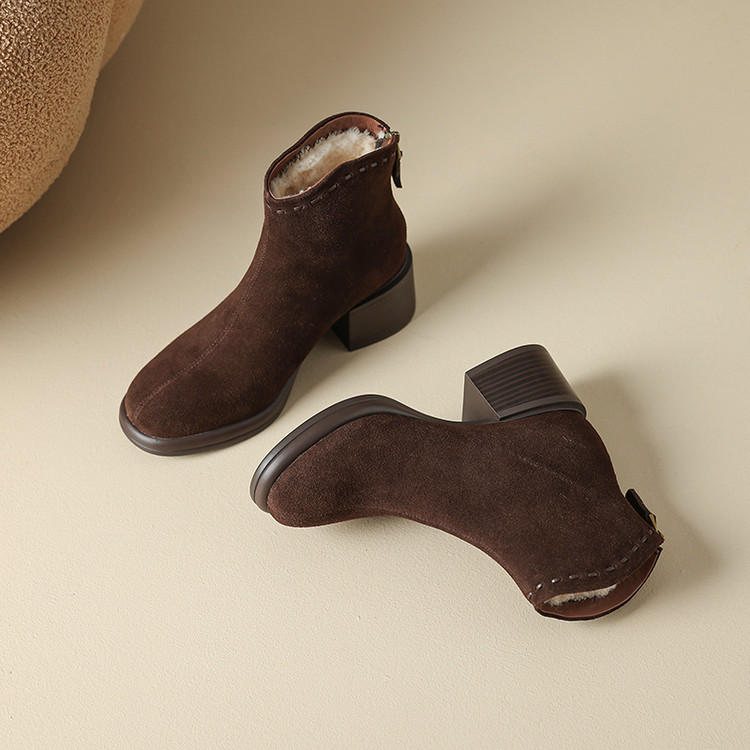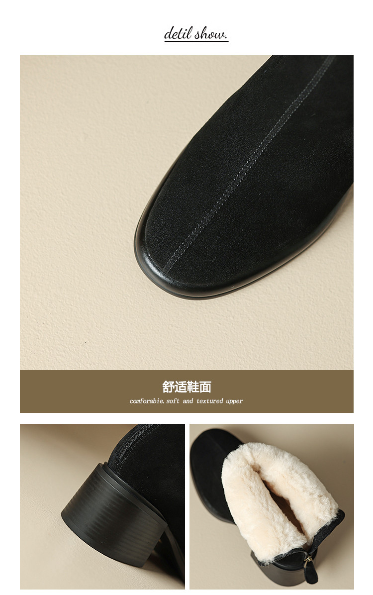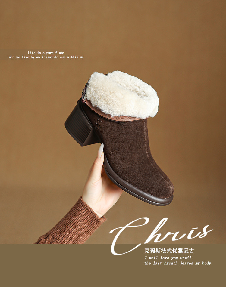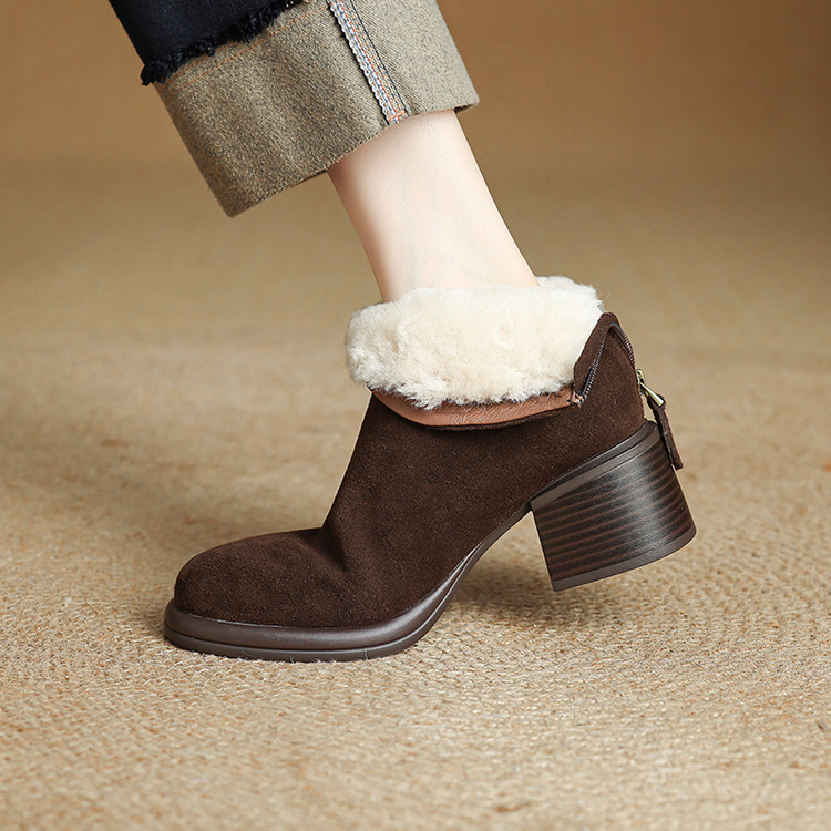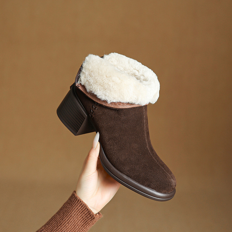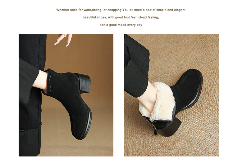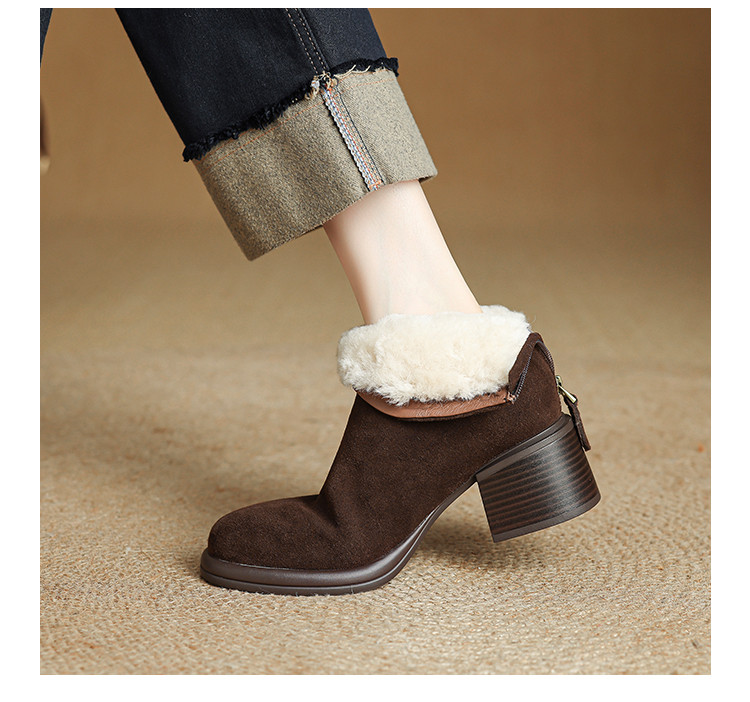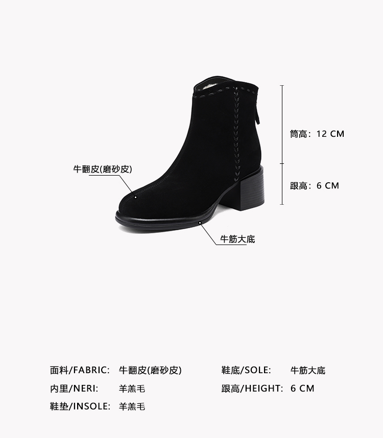 【货号】C208【鞋面材质】牛磨砂皮【垫脚】羊羔毛【内里】羊羔毛【鞋底材质】牛筋底【跟高】6CM【筒高】12CM【颜色】黑色 棕色【尺码】34-39