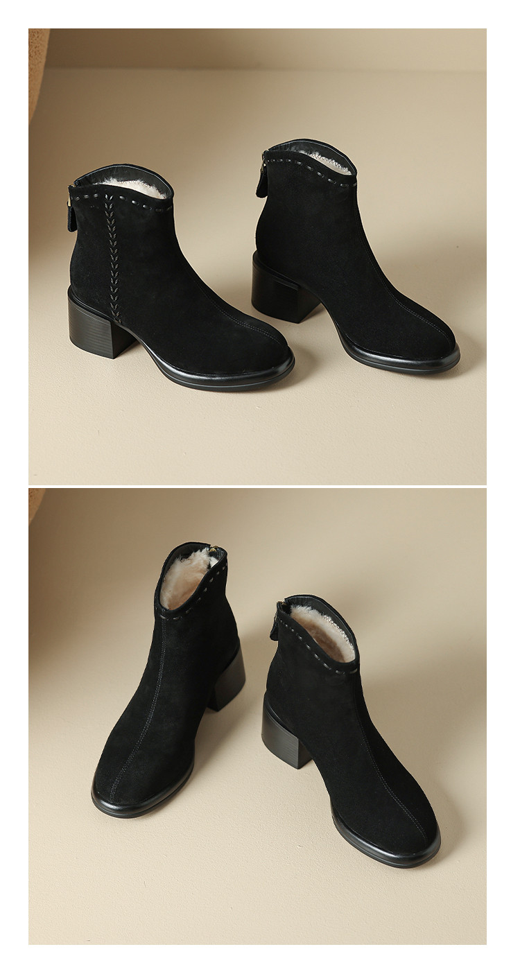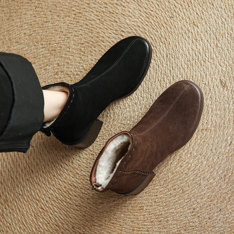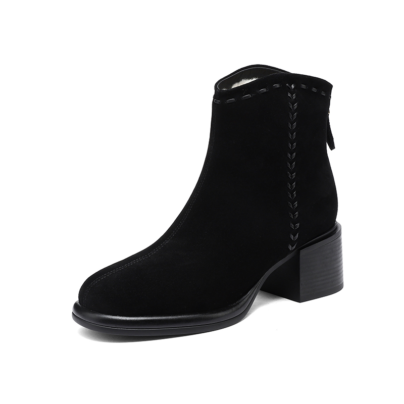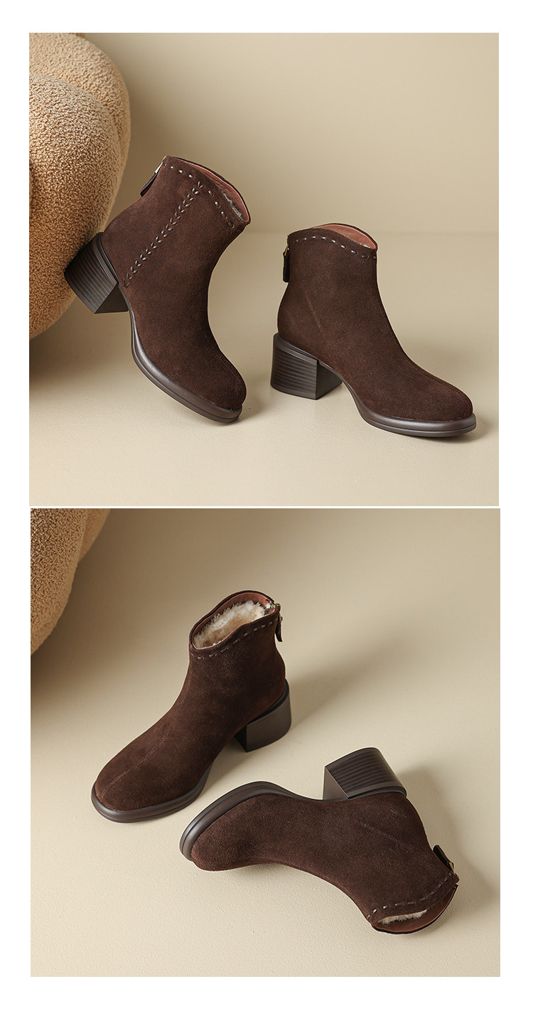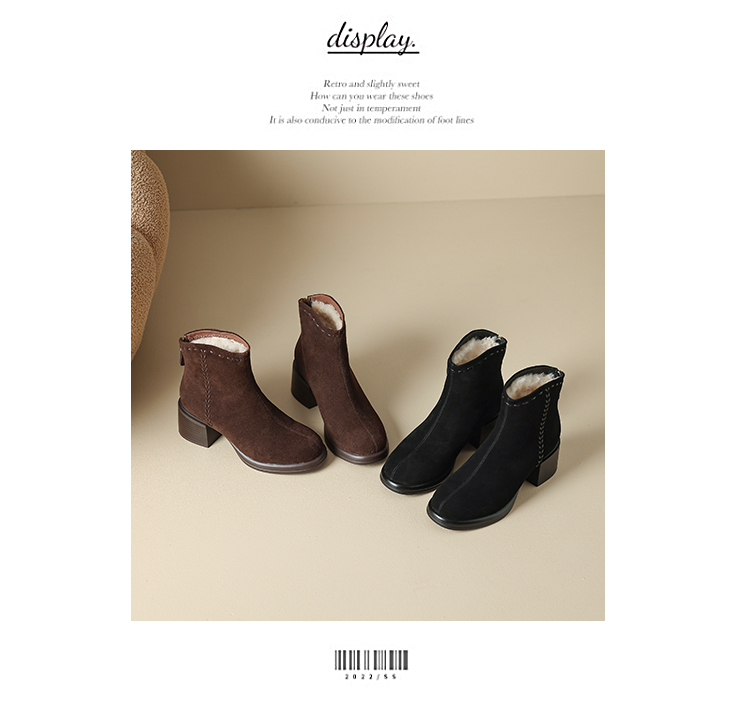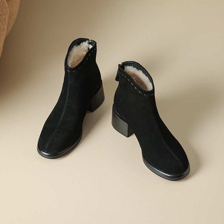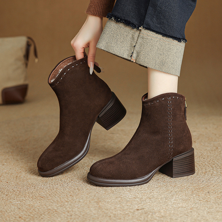 【货号】C208【鞋面材质】牛磨砂皮【垫脚】羊羔毛【内里】羊羔毛【鞋底材质】牛筋底【跟高】6CM【筒高】12CM【颜色】黑色 棕色【尺码】34-39
