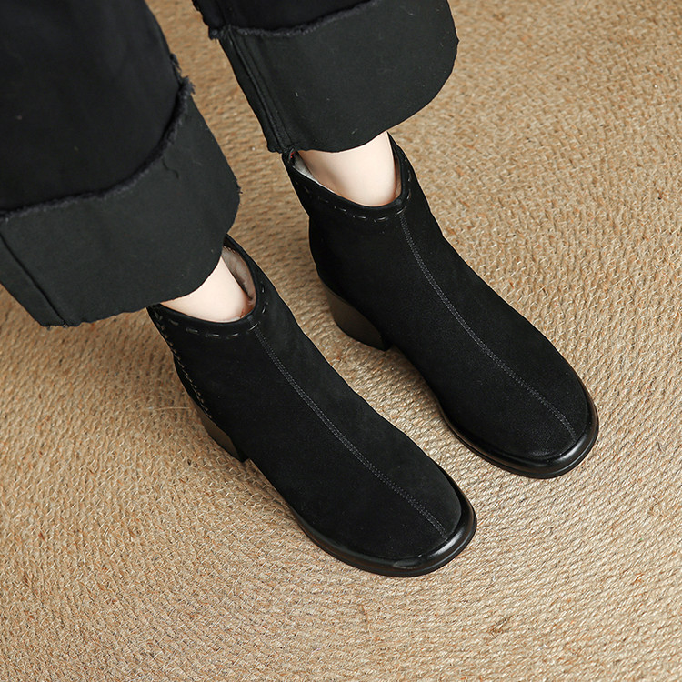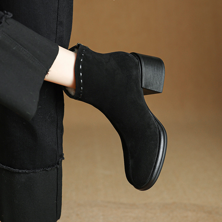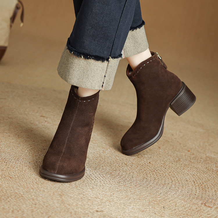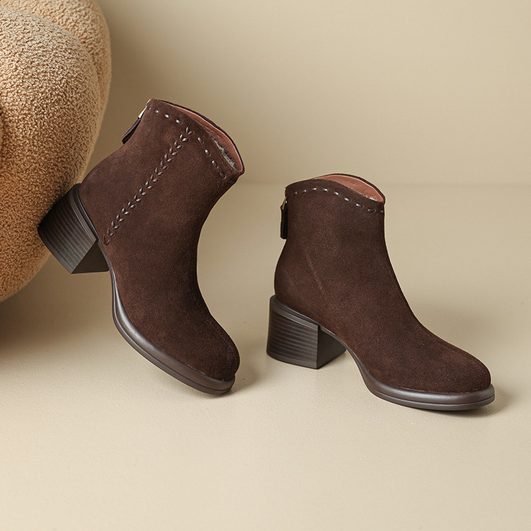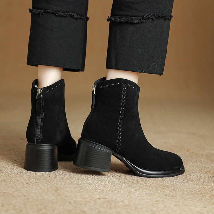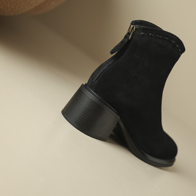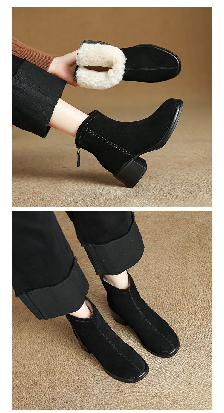【货号】C208【鞋面材质】牛磨砂皮【垫脚】羊羔毛【内里】羊羔毛【鞋底材质】牛筋底【跟高】6CM【筒高】12CM【颜色】黑色 棕色【尺码】34-39