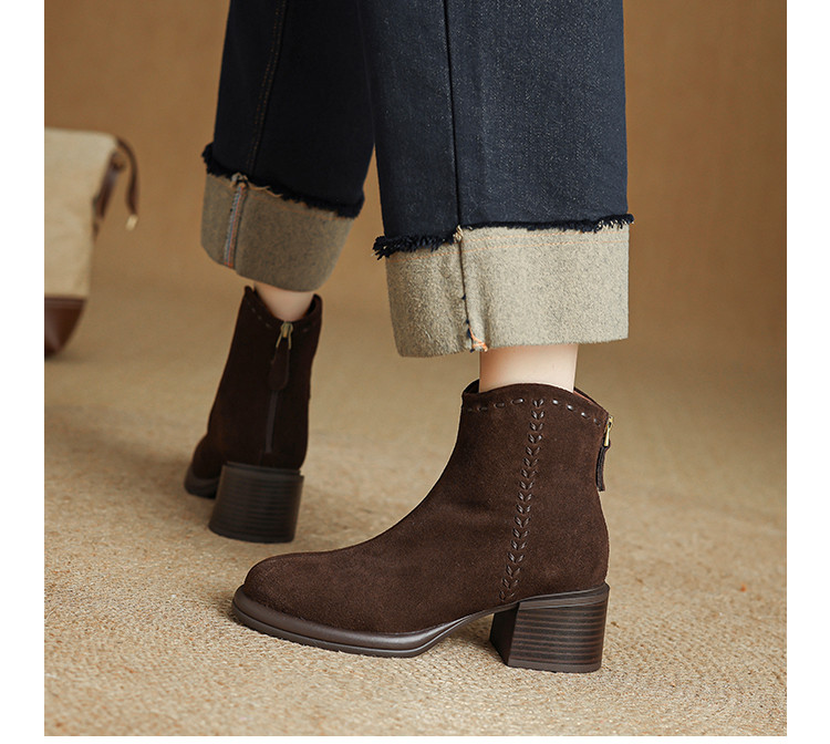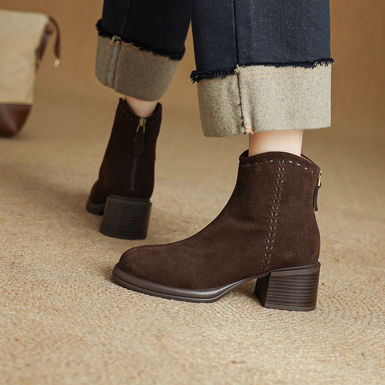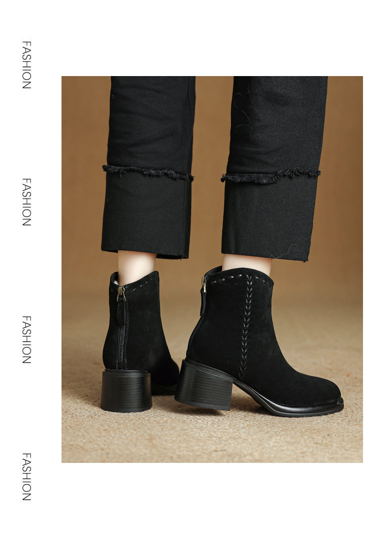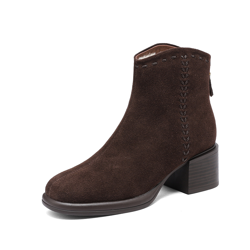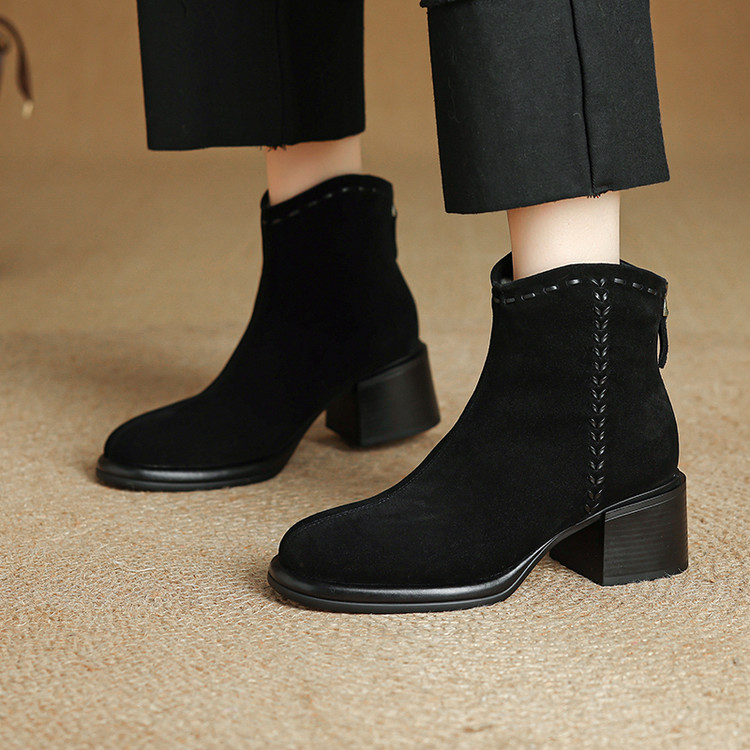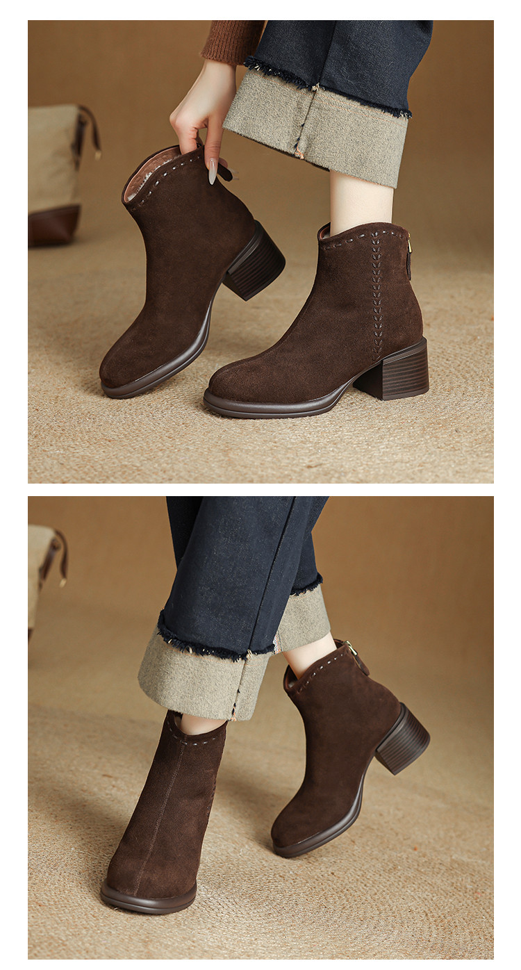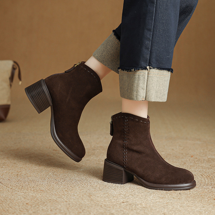 【货号】C208【鞋面材质】牛磨砂皮【垫脚】羊羔毛【内里】羊羔毛【鞋底材质】牛筋底【跟高】6CM【筒高】12CM【颜色】黑色 棕色【尺码】34-39