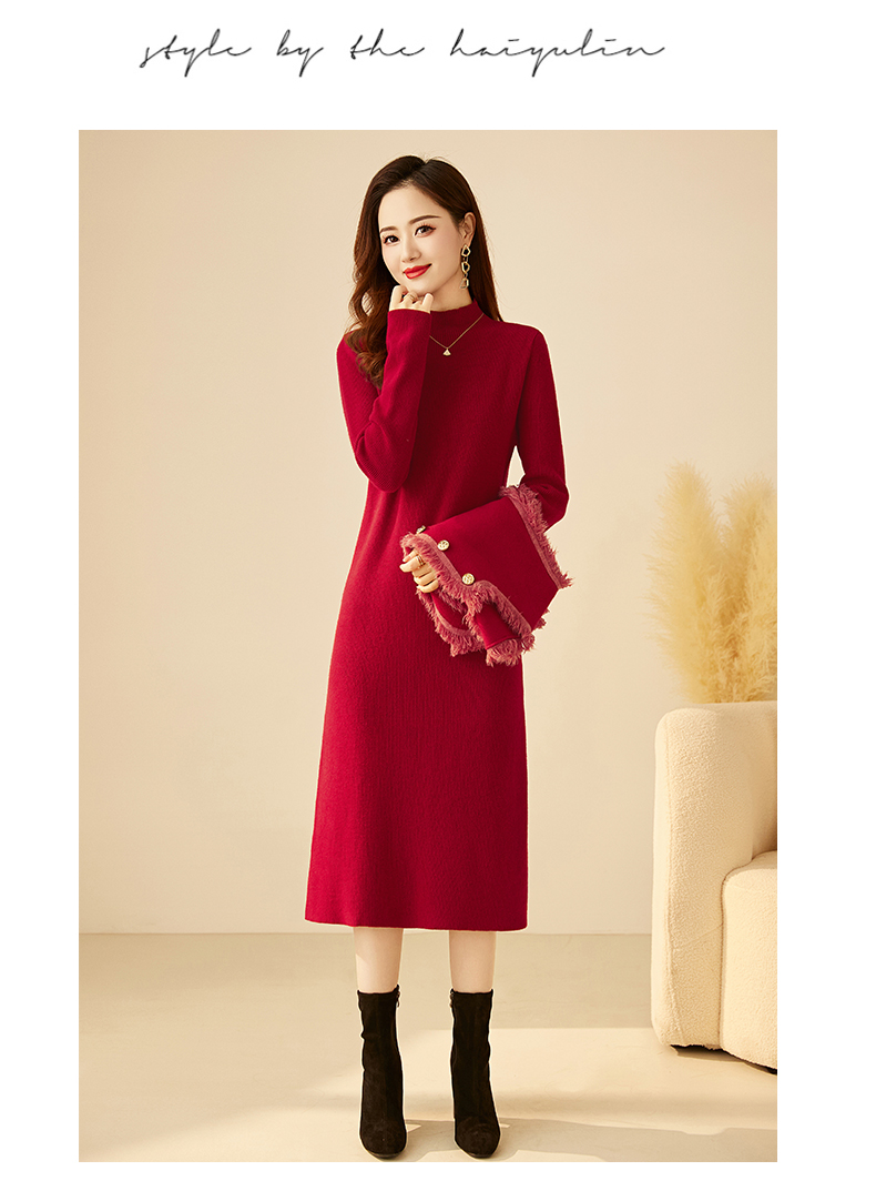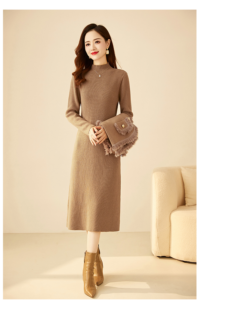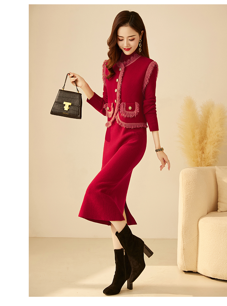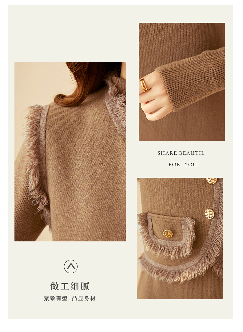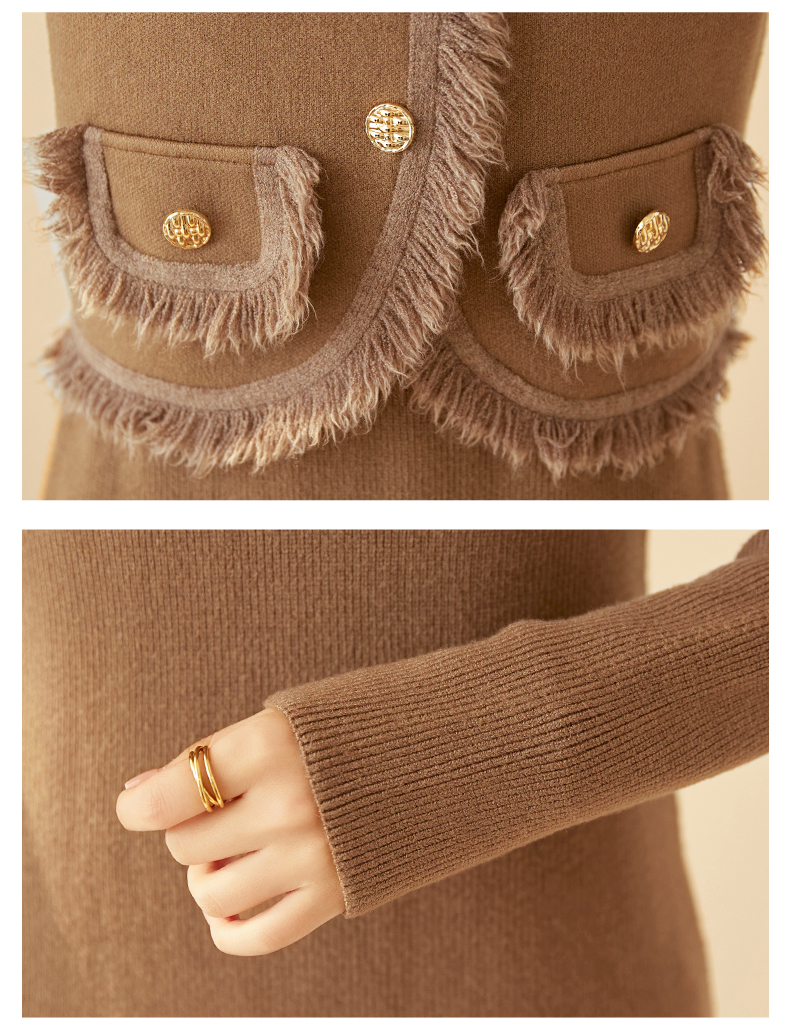 秋冬新款,时尚毛须洋气小香风双口袋马甲两件套连衣裙HR-YBER355